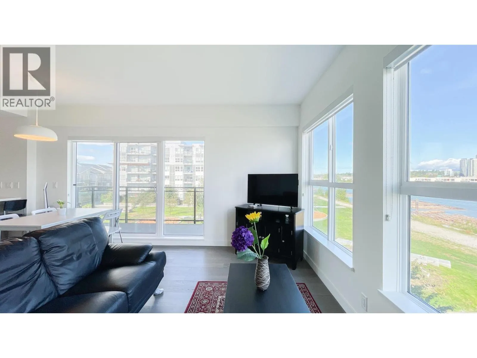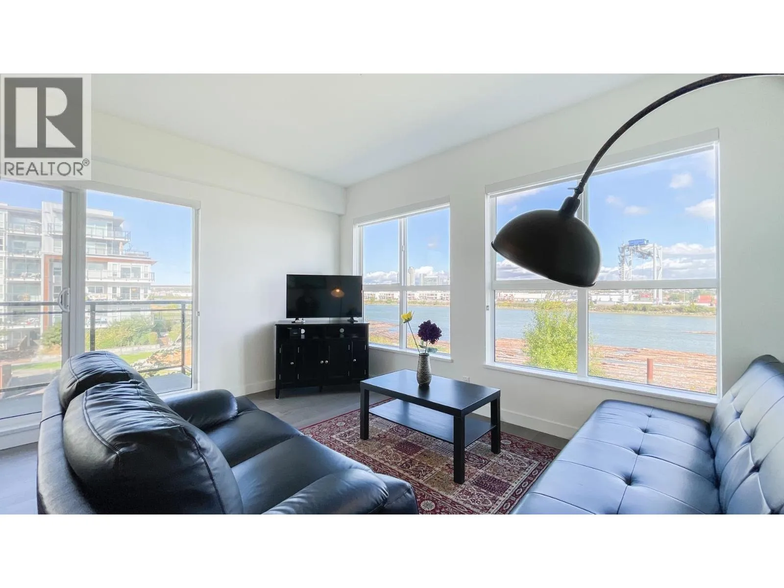Rarely available! Best CORNER UNIT with unobstructed River views from all the windows at the popular Parc Riviera Monaco. This fabulous home features over 480 sf of 3 patio space for your outdoor living enjoyment. Airy 9' ceilings, engineered hardwood flooring, geothermal heating & cooling (included in the Maintenance Fee), Open kitchen boasts premium Bosch & Fisher Paykel stainless appliances, quartz countertops, gas cooktop. Bonus: 2 car parking stalls. Amenities include an indoor pool, hot tub, fitness center, social party room. This master planned community has over 5 acres of parkland & dyke trails. Don't miss out!** Public Open House Nov 08 Sat 2-4 PM** (id:27476)