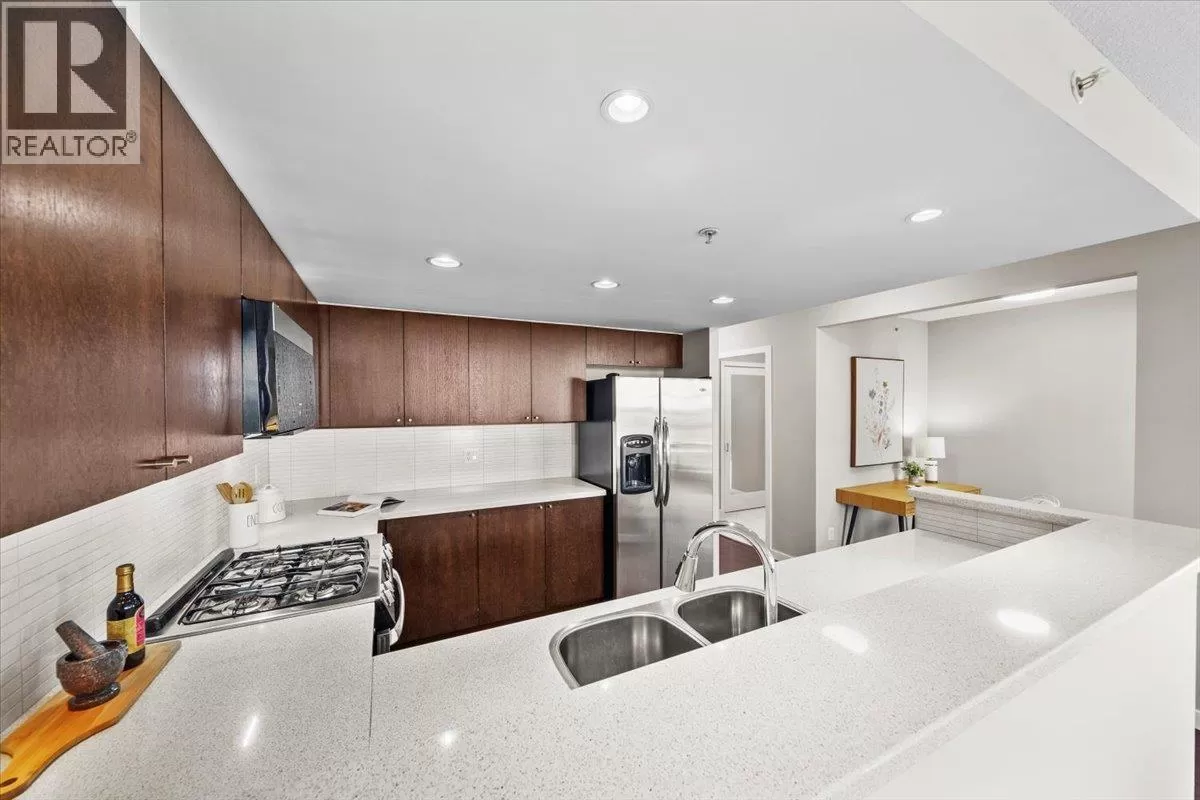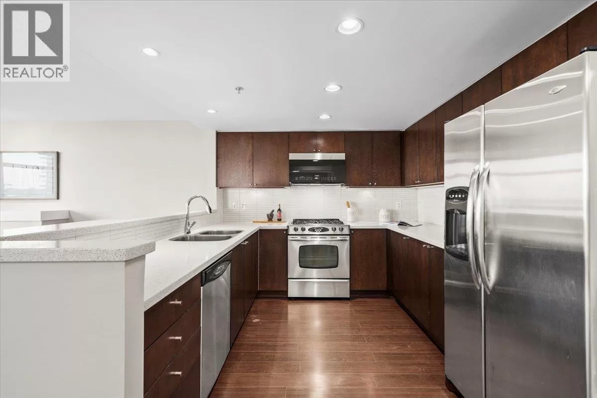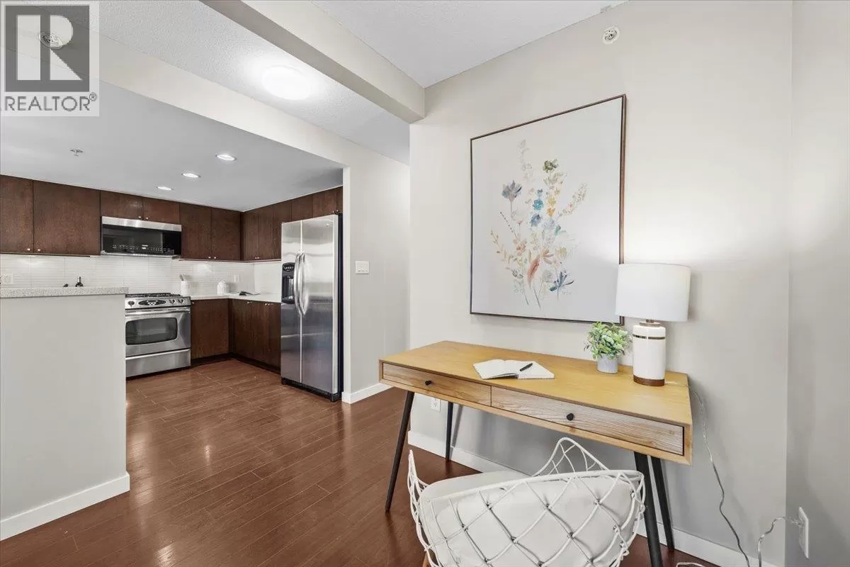 Welcome to Prado by Appia Developments. This bright corner unit offers unobstructed mountain views and highly functional layout. 2 bedrooms and open den, 2 bathrooms, and 2 parking (tandem) and storage locker. Freshly updated with new interior paint and new bedroom carpeting. The kitchen features Caesarstone countertops, stainless steel appliances, and laminate wood floors throughout the main living areas. Amenities include concierge, guest suites, access to Electric Vehicle charging stations exercise center, sauna, steam room, and party room. Unbeatable convenience - across from Lansdowne Center and steps to Canada Line (Lansdowne Station); groceries, restaurants, and recreation at your doorstep. Quality concrete high-rise in a super central location - move in ready and easy to show. (id:27476)