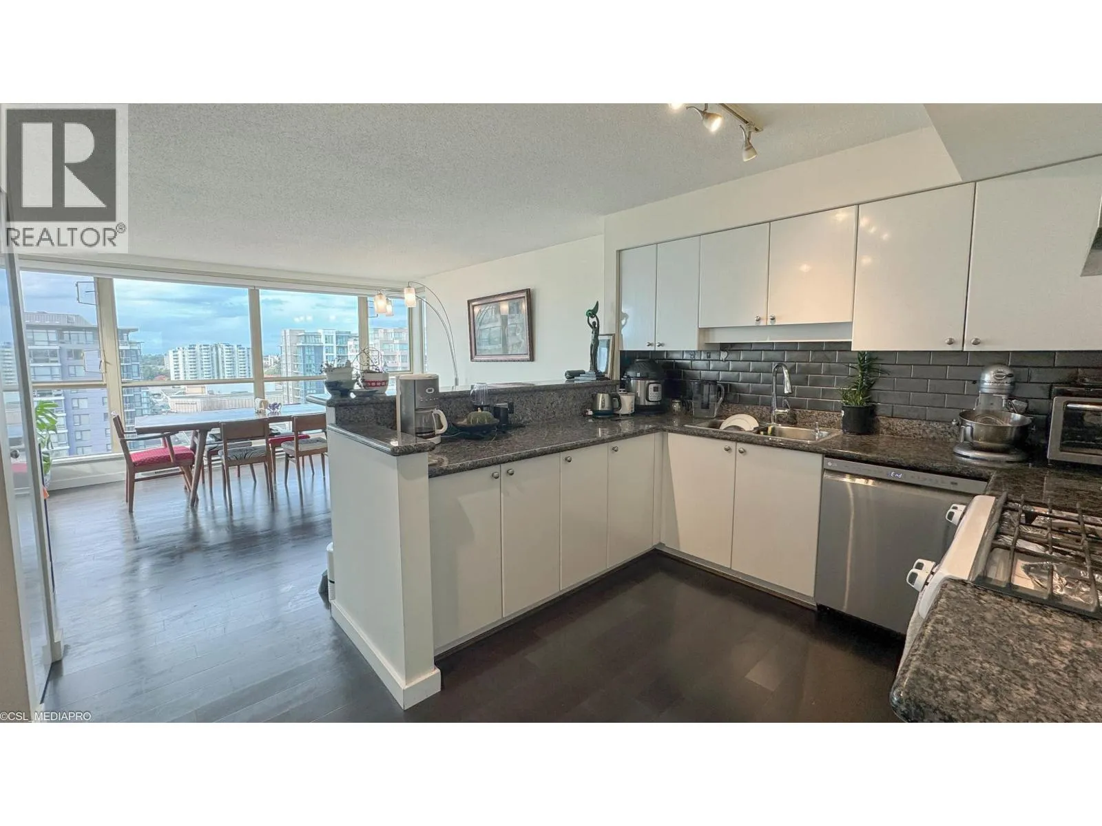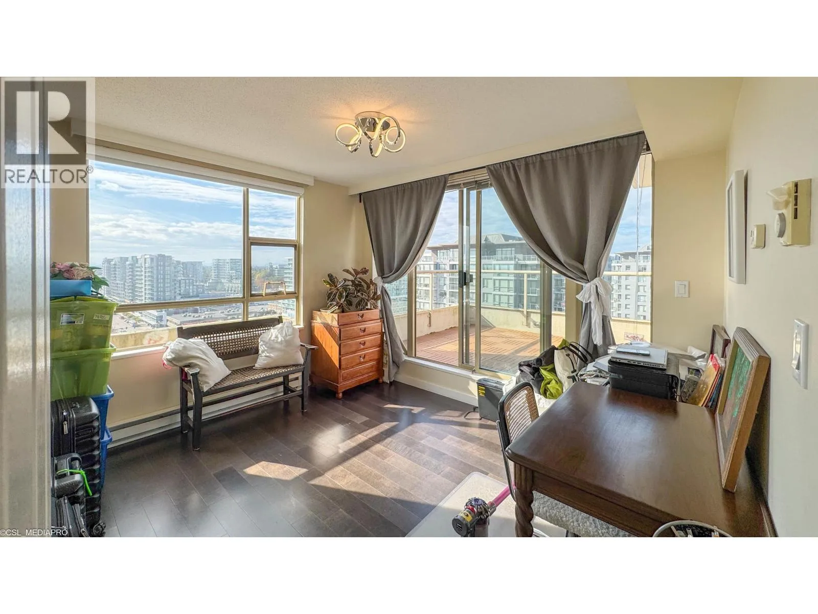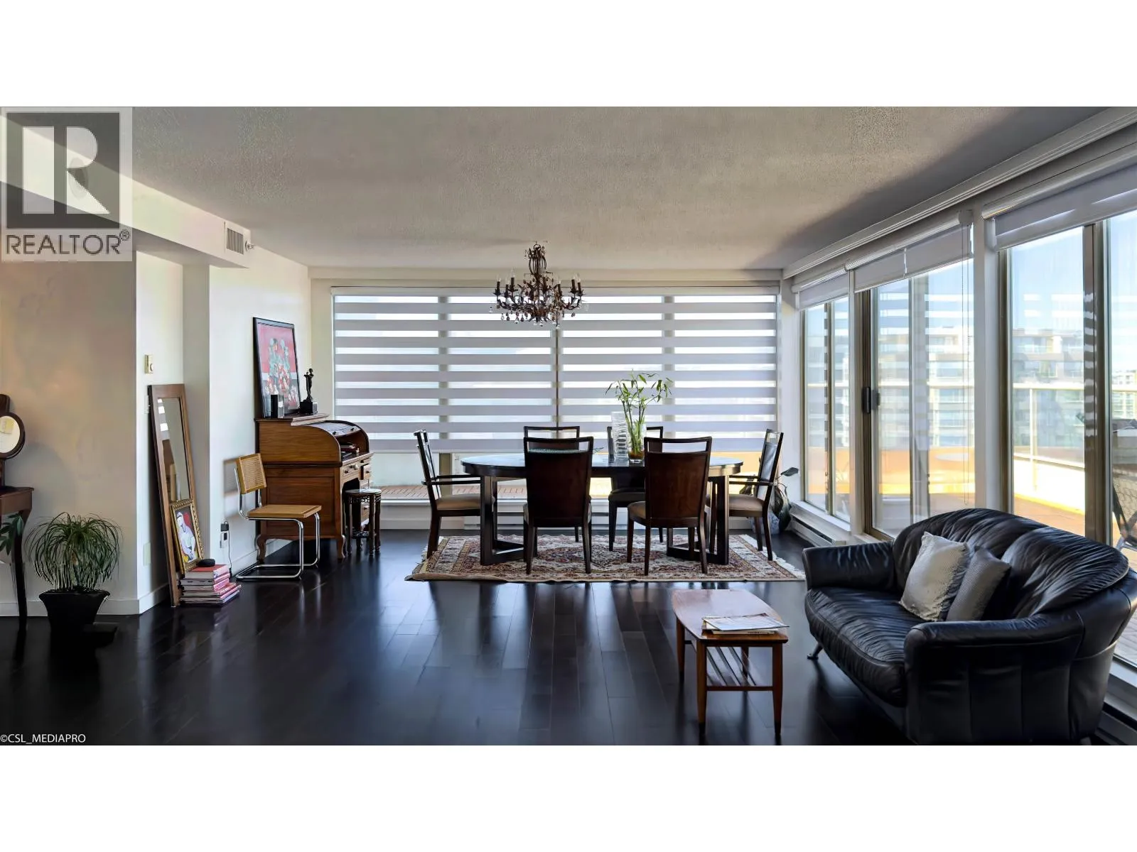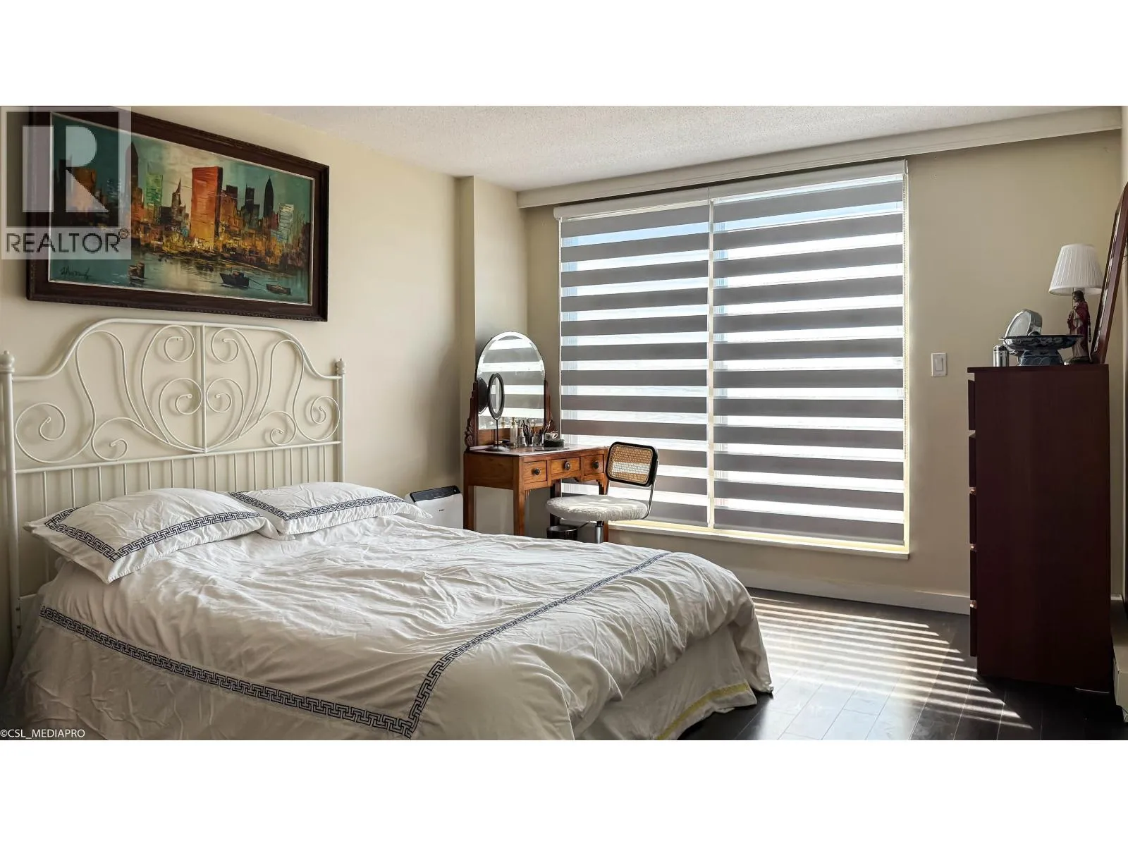 Penthouse at The Chancellor I by Amacon offers 2,200 sq.ft. of single-level luxury in downtown Richmond. This rare 4 bed, 3 bath half-floor home boasts 270° city, garden & mountain views with no stairs or carpet. Floor-to-ceiling windows flood the space with light, showcasing hardwood/marble floors, granite counters, Zebra blinds & A/C. Chef´s kitchen with gas stove & newer appliances connects to spacious living/dining. Primary suite has balcony & ensuite; a 2nd ensuite plus 2 bedrooms add flexibility. Includes in-suite laundry, 2 side-by-side parking & locker. Steps to Richmond Centre, SkyTrain, parks & dining. A unique blend of scale, comfort & location-book your showing today. Video: https://youtu.be/VhctFs14VME (id:27476)