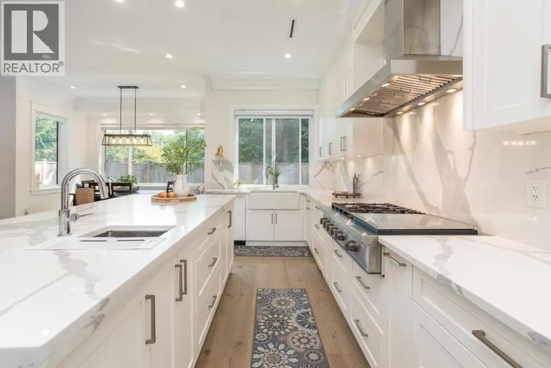 COASTAL CONTEMPORARY, custom-built 3 bdrm, 5 bath home featuring interlocking brick driveway, stone facade & horizontal shingle siding. Tucked onto a quiet cul-de-sac & backing onto the GREENSPACE in Steveston South, main floor features a welcoming foyer leading into the GREAT ROOM! Spacious family room w electric f/pl, dining area with built-in banquette and a fabulous kitchen with quartz counters, backsplash & HUGE ISLAND with 2nd sink, 5 burner stove & integrated high end appliances! Main floor office with ensuite & its own exterior entrance. Primary bdrm with huge walk in closet, 2 other big bdrms, both with ensuites. Private east backyard with built in bbq area, patio & grassy area. Double car garage, security system, 2-5-10 warranty. Walk to Homma (French), Westwind, McMath & Steveston Village. (id:27476)