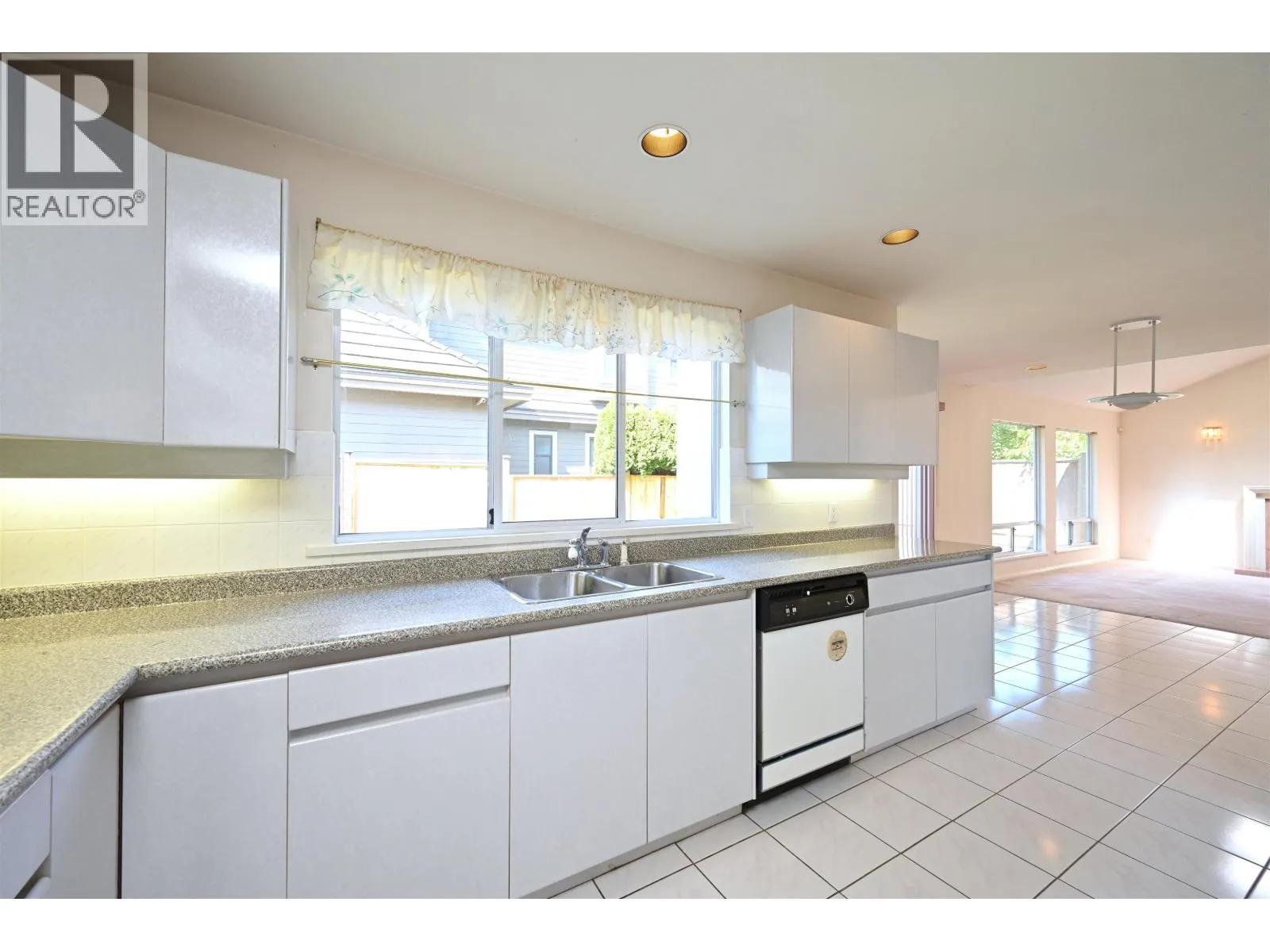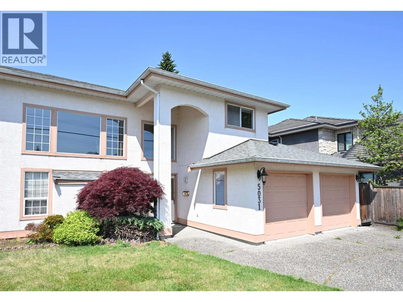 Rarely available 2,632 sq.ft. half duplex - as spacious as a detached home! Lot size 48'x100'. Original owner. Located on the quiet side of Blundell Road. Features 5 bedrooms and 3 full bathrooms, including a bedroom on main floor. Bright layout with high ceilings in the living, dining, and family rooms, a large gourmet kitchen, 2 gas fireplaces, and radiant heating on main. Double side-by-side garage. Some updates are needed, but opportunities like this are hard to find. School catchment: McKay Elementary and Burnett Secondary. French Immersion: Diefenbaker Elementary and McMath Secondary. (id:27476)
