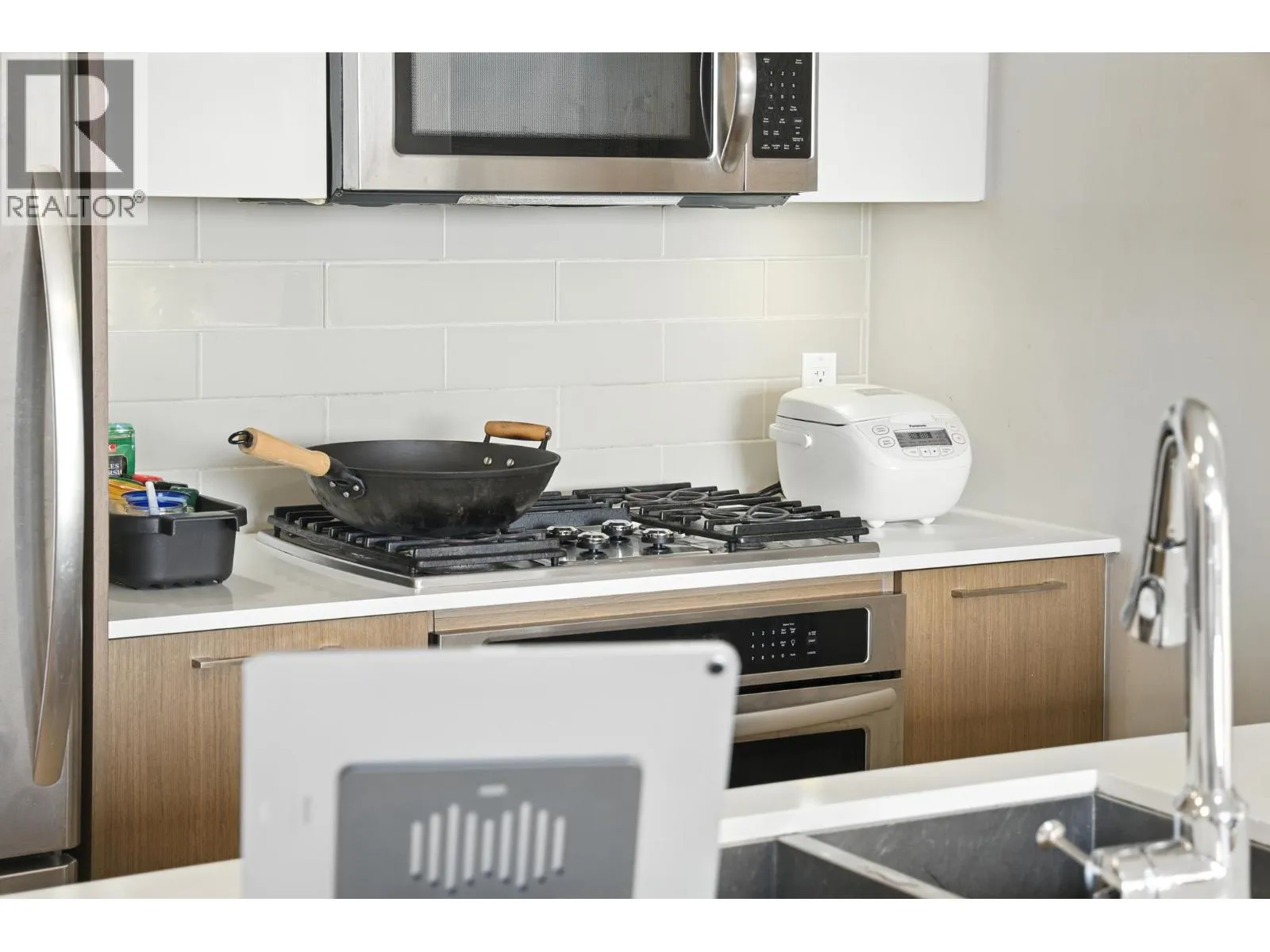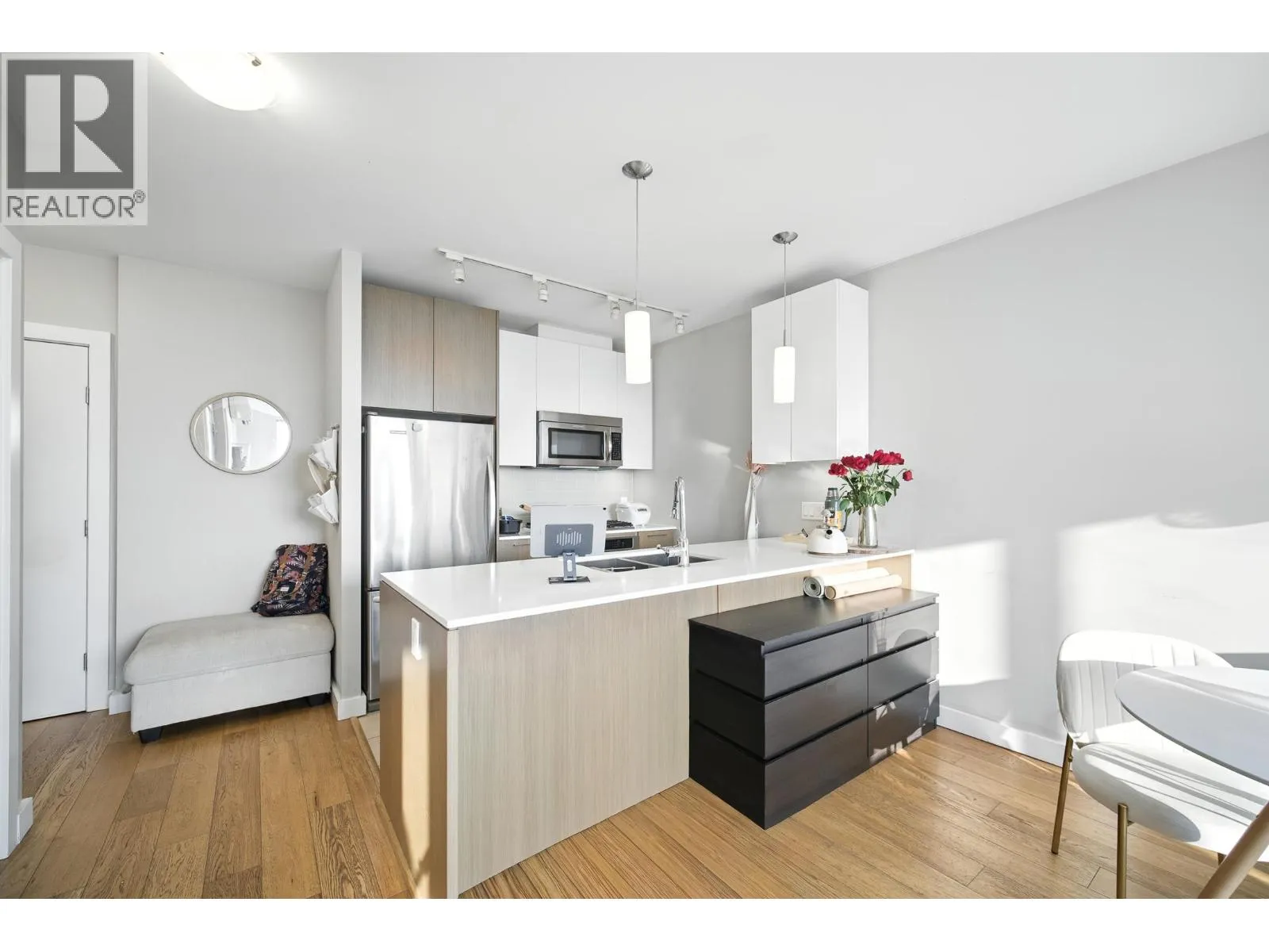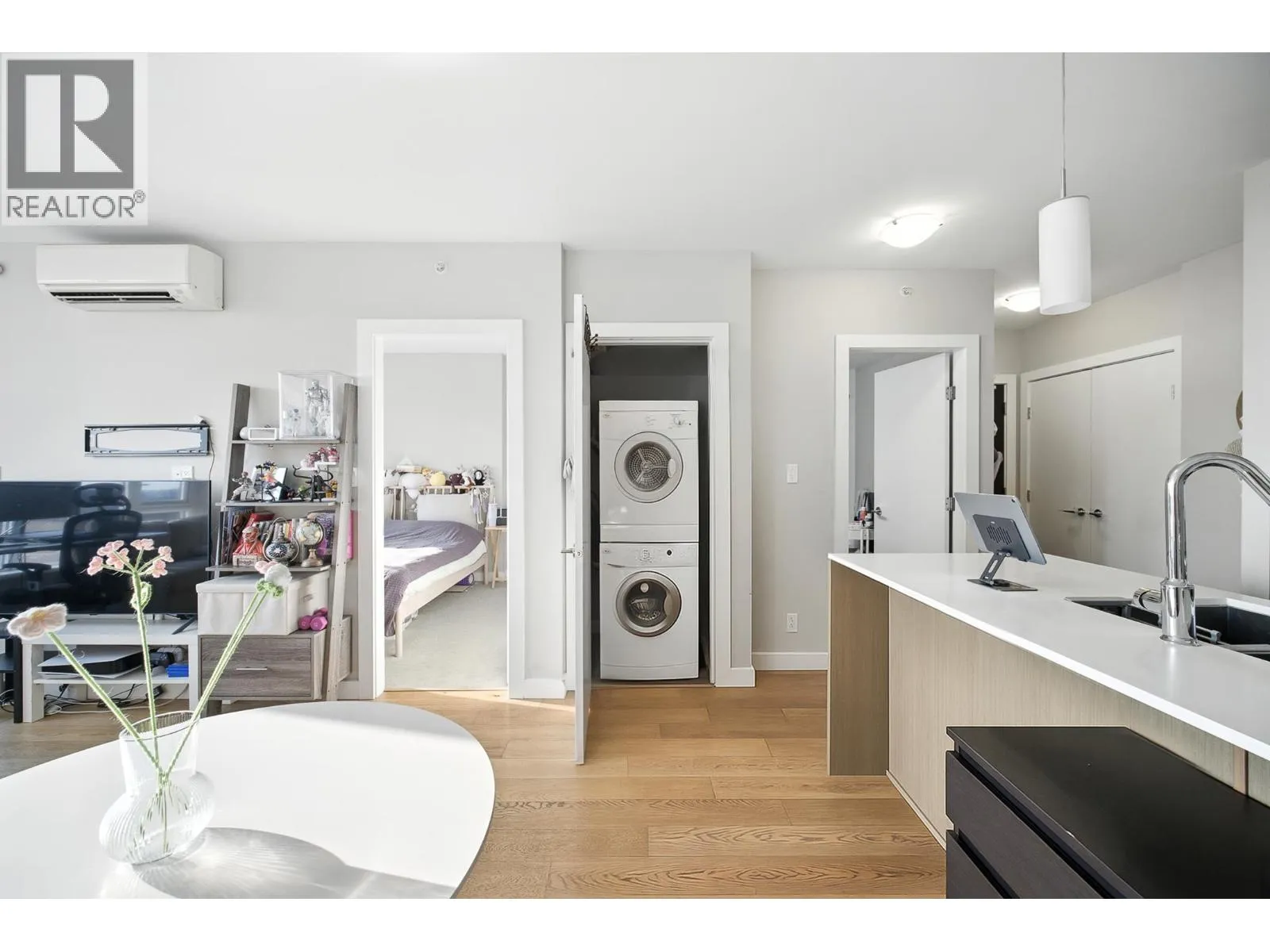 Bright and Nice 1 bedroom 559 sq CONCRETE condo in "The ORA" by Onni. Air conditioning ready! Stunning views of the Gulf Islands, the ocean, and the beautiful sunsets! Features oak hardwood floors, gourmet kitchen with flat panel cabinetry, KitchenAid stainless steel appliances, gas cooktop, in-suite laundry, and 1 secured parking spot. Fantastic amenities include indoor pool, hot tub, large exercise gym, steam & sauna rooms, squash court, business center, lounge, party room, and a relaxing central courtyard. Totally convenient just steps to T&T supermarket, banks, drugstore, restaurants, the Oval & the Dyke trails. Ready to move in or keep it as an investment. (id:27476)