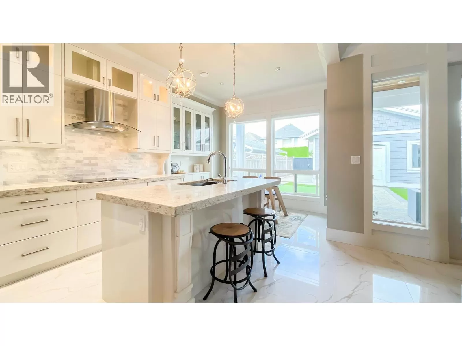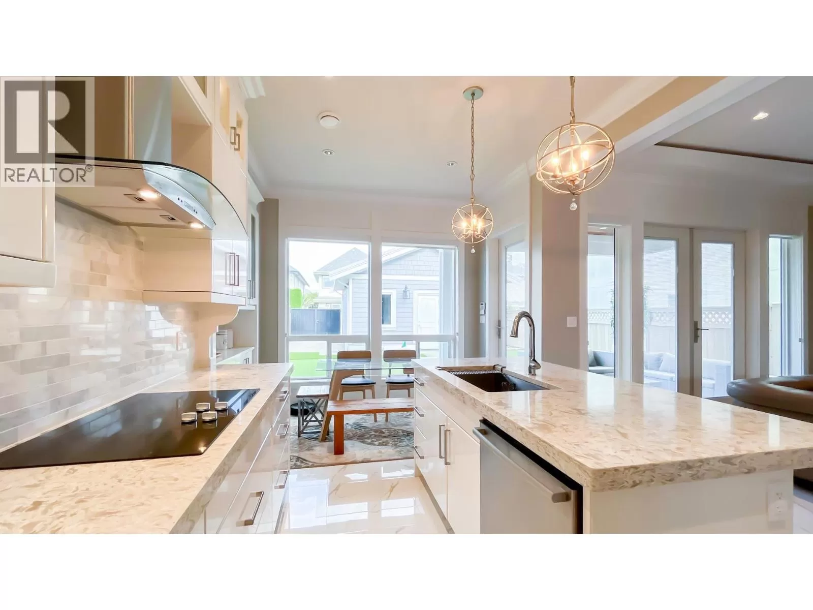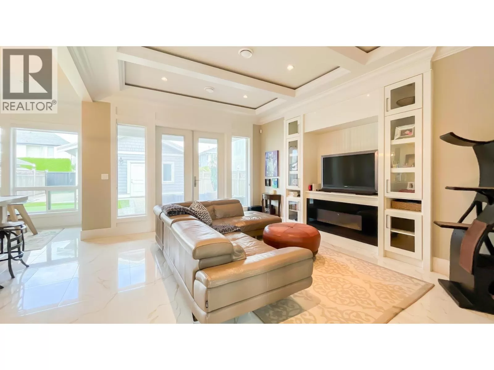 Luxury built home in Steveston Village. S facing bright living room with 16 ft high ceiling and abundant natural light. Open, spacious layout with details; waterfall stone pond, extensive molding throughout, custom built-in shelves/cabinets, beautiful quartz kitchen with large island for entertaining. Functional wok-kitchen for extra cooking/pantry. Spacious family room with french doors opens to covered patio that is ready for gas-hook BBQ all seasons. Golf putting areas. SPA inspired master bathroom. 10 ft ceiling and 9 ft doors, CCTV, HRV, A/C. Double Detached/Heated Garage with land access, additional parking space. 1 block/public transit, Lord Bing elementary and McMath High School, mins to water front/Steveston Village (id:27476)