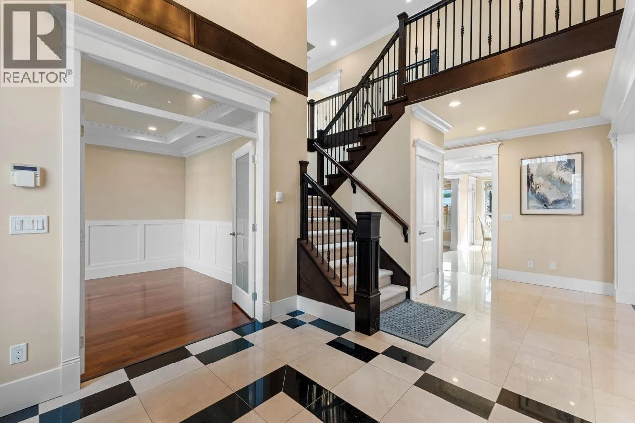 Nestled in the highly sought-after Broadmoor area, 7520 Reeder Road is an exquisite luxury home designed for those who appreciate space, elegance, and modern comforts. This stunning property boasts 5 bedrooms and 6 bathrooms across 3,514 square feet of living space, situated on a generous 7,549 square foot lot with serene views of Errington Park at the rear. This premium home was built to the highest standards an open concept main floor with high ceiling, huge crystal chandeliers, granite counters, hardwood floor, crown moulding, spaciours gourmet kitchen (and wok kitchen!) with high end cabinetry and S/S appliances, A/C & HRV, radiant heat, media room, triple garage. School catchments are Errington Elementary & Steveston-London Secondary. Close to community centre, shopping mall. (id:27476)