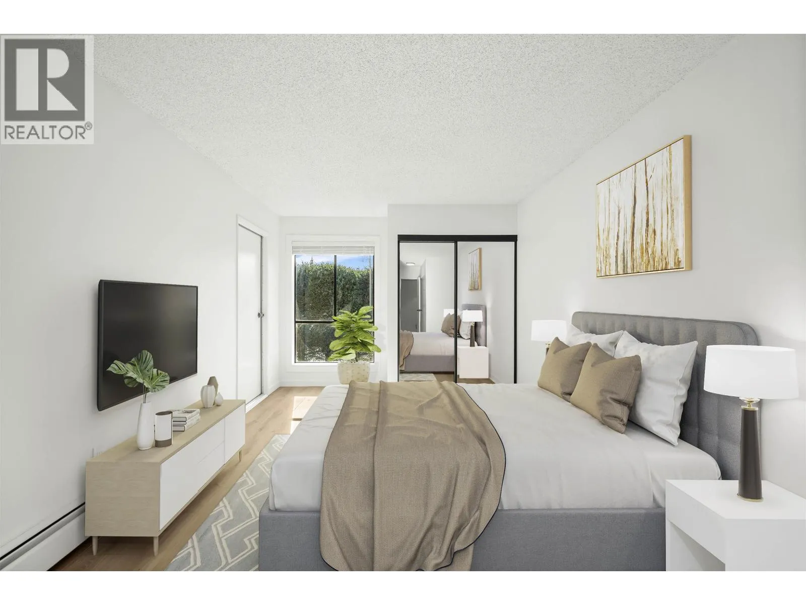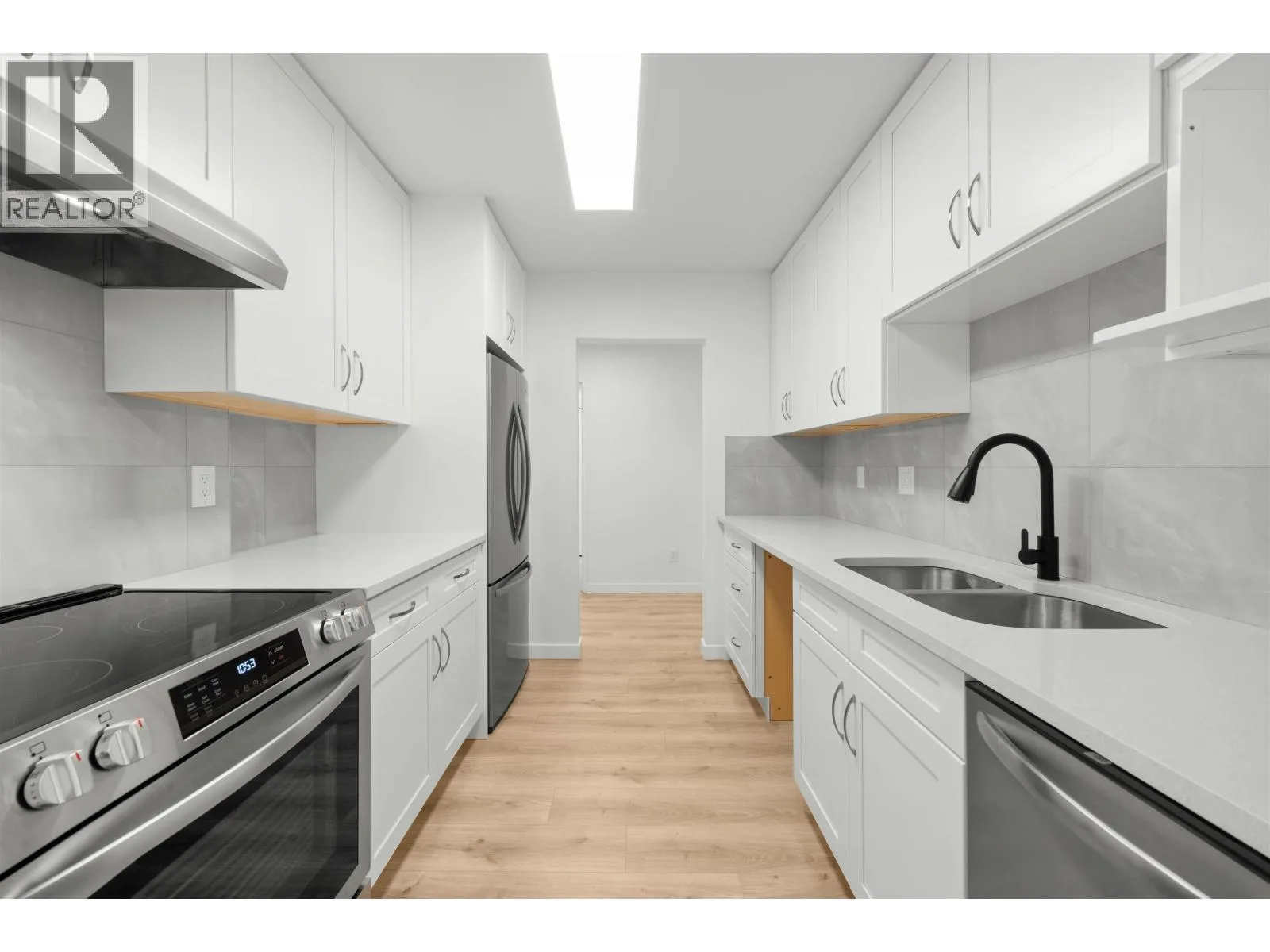 Fully renovated 2 bedroom 1.5 bathroom condo within walking distance to shopping and transit. Updates include: laminate flooring, shaker cabinetry, quartz countertops, stainless steel appliances including a french door fridge, feature wall in the living room and much more... Building is well maintained strata fee includes heat and hot water. Amenities include: storage, shared laundry, massive, quiet court-yard garden oasis with park-like lawns, outdoor pool with clubhouse. 1 parking & locker. Additional parking & RV spots available for rent. Elevator upgraded. Nothing to do but move in. Some photos virtually staged. (id:27476)