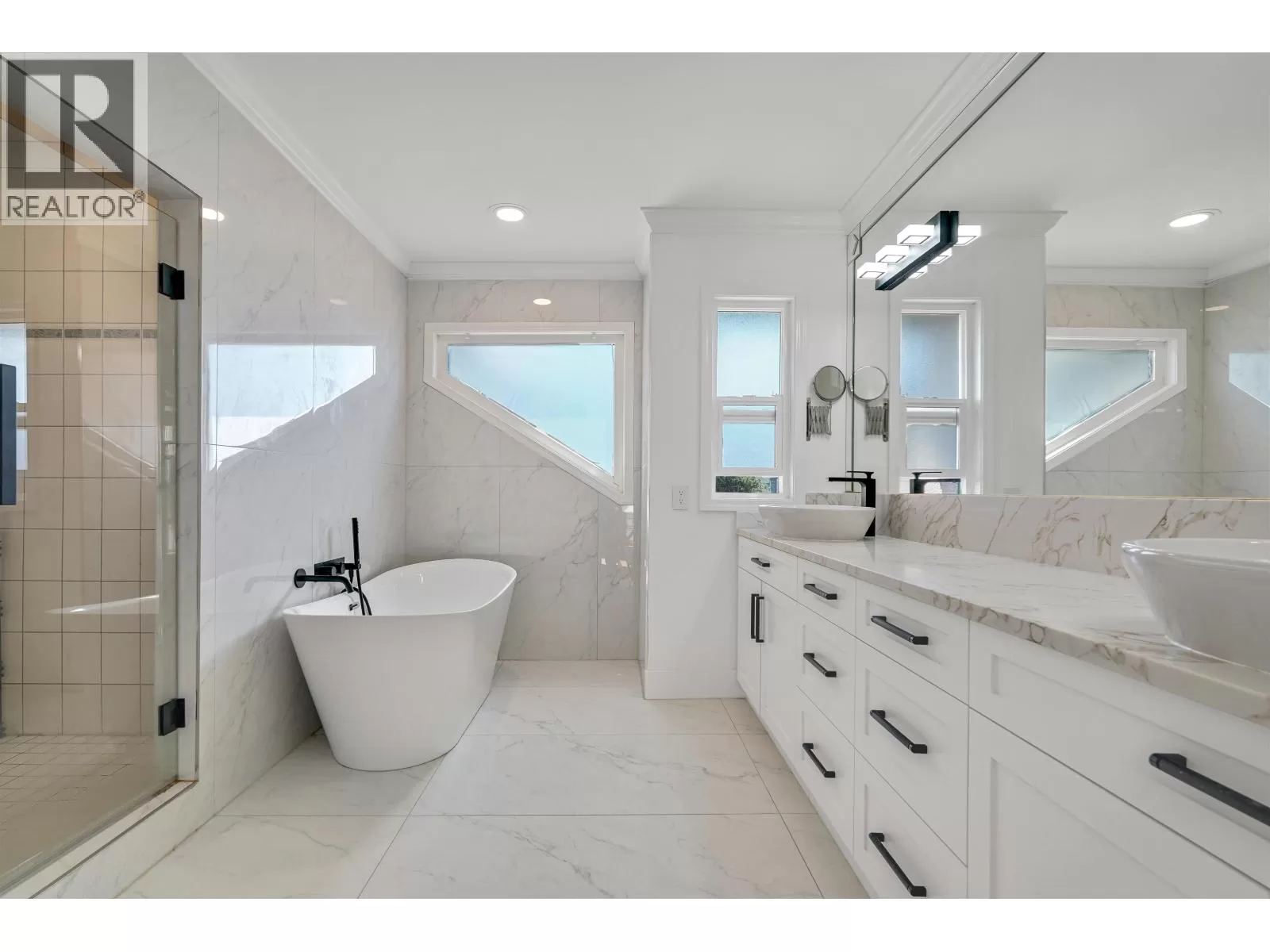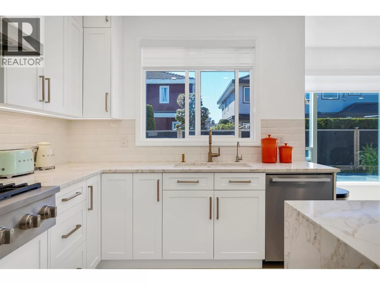 Welcome to this exquisitely renovated executive home in Richmond´s prestigious Terra Nova community, celebrated for its safety, top schools, and lifestyle amenities. South-north facing home with a sun-filled south backyard is rare in the neighborhood, featuring dual soaring ceilings in both living and dining rooms for unmatched elegance. It offers 2 new kitchens with custom cabinetry, Blanco sinks, and premium finishes; the main kitchen includes Miele appliances and a 3-door fridge, bathrooms feature Duravit sinks and Kohler/Delta fixtures. Designer touches include engineered hardwood with LED step lighting, Halo lighting, and a statement chandelier. Smart features-Nest, Hikvision security, Viessmann boiler, Tesla charger, and Apple Home locks-add comfort and convenience. (id:27476)