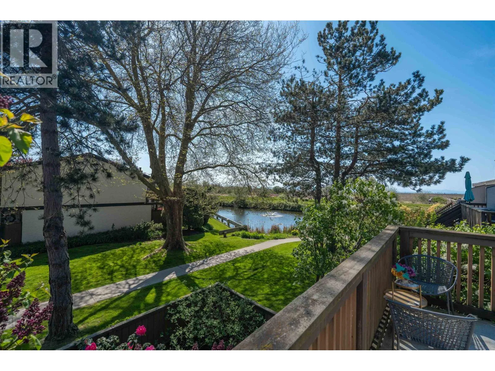 Nicely 2 bed & den townhome with a park like setting. The main living is above with a spacious kitchen, eating area and a south facing living room with a cozy wood burning fireplace (Virtually staged design ideas) spacious patio off living room allows you to enjoy the views of the lagoon, dyke and sunsets. Downstairs has a master bedroom with den along with another bedroom and a four-piece bathroom. It has a fully fenced yard and in suite storage. Complex boasts amenities including Indoor Pool, Hot tub, Club House and a large park! Lord Byng Elementary and McMath Secondary within walking distance. Transit just outside complex. Just a short walk to the Village & Garry Point and the new SaveOnFoods (id:27476)
