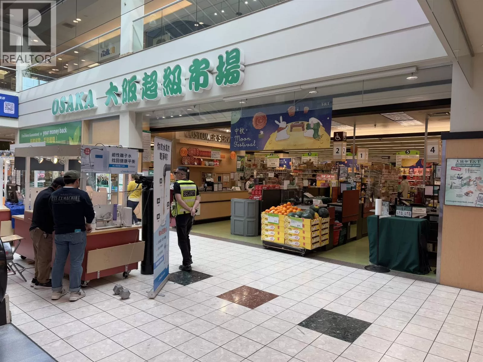 Retail space at Yaohan Centre! Rarely available 602 Sq.Ft on upper floor second unit from centre court. Many of traffic from Osaka Supermarket & one of the busiest food courts in Richmond. Lots of parking and easy access to all transits and just steps away from Aberdeen Skytrain station. Good for most retail business. Don't miss this opportunity to start up a new retail location in this popular Shopping Mall. (id:27476)