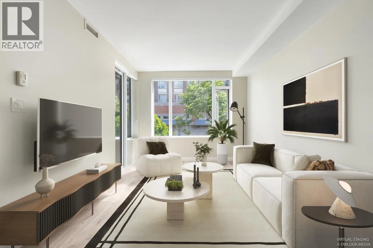 CONCRETE + AIR-CON + INNER STREET WITH NO NOISE! Welcome to Dahlia - a rare low-rise concrete building situated in a park-like setting and just right across from Ironwood Plaza with grocery, restaurants and more! Easy access to Highway 99 and bus stop is just outside the building. This lovely unit offers a functional layout with spacious rooms for storage. Facing quiet south exposure, you get to relax with plenty of natural sunlight! The property features A/C, NuHeat floor heating in the bathroom, designer colour schemes and stainless steel kitchen package. Pet & rental friendly building. Own it today! (Some photos are virtually staged and for reference only.) (id:27476)