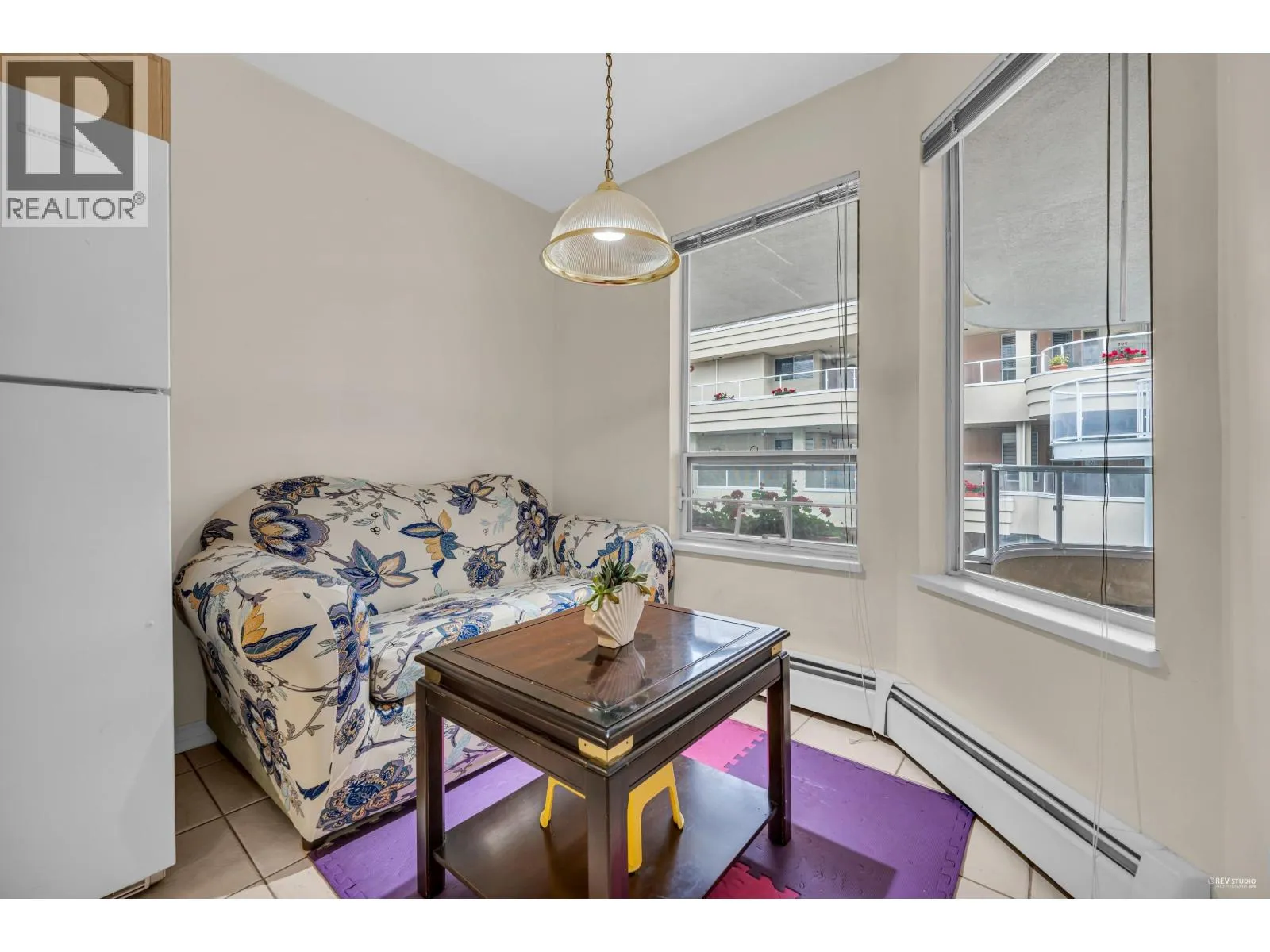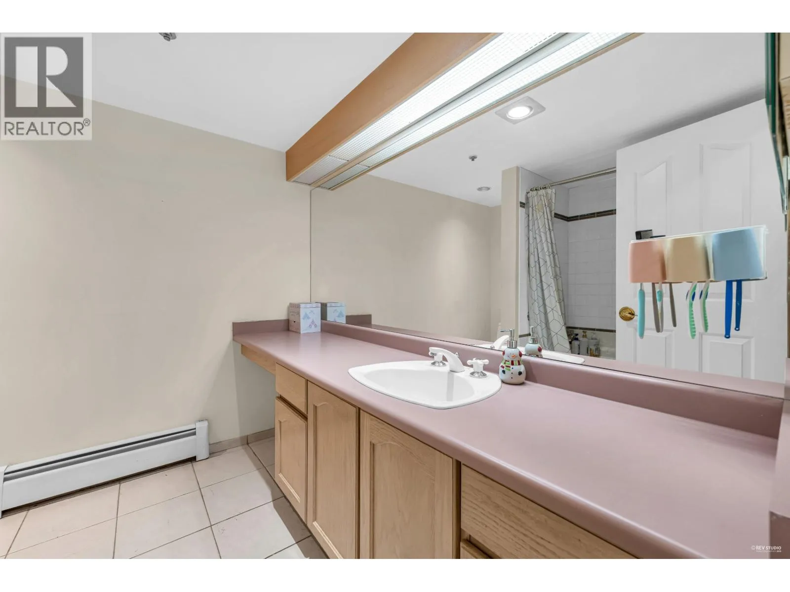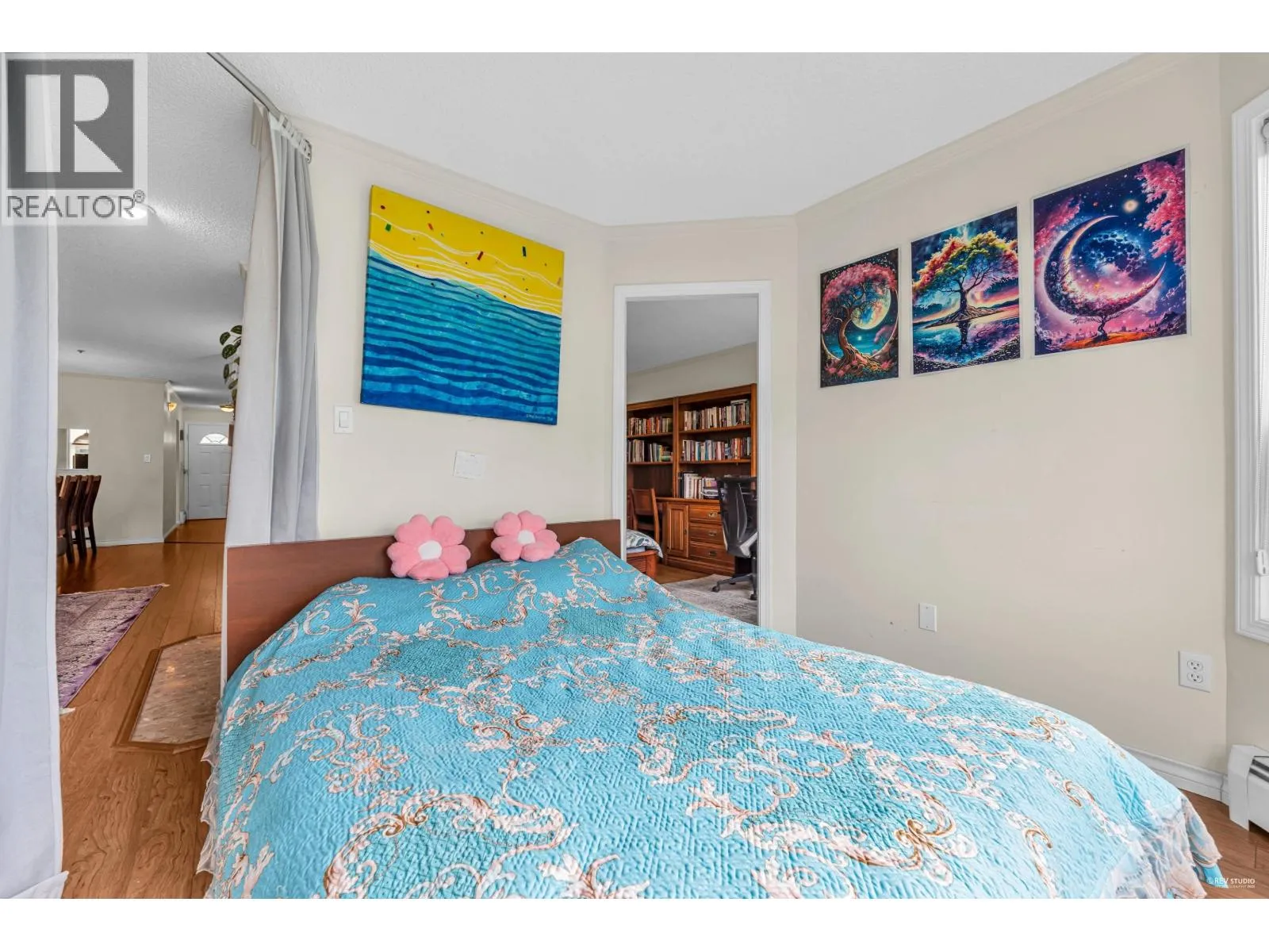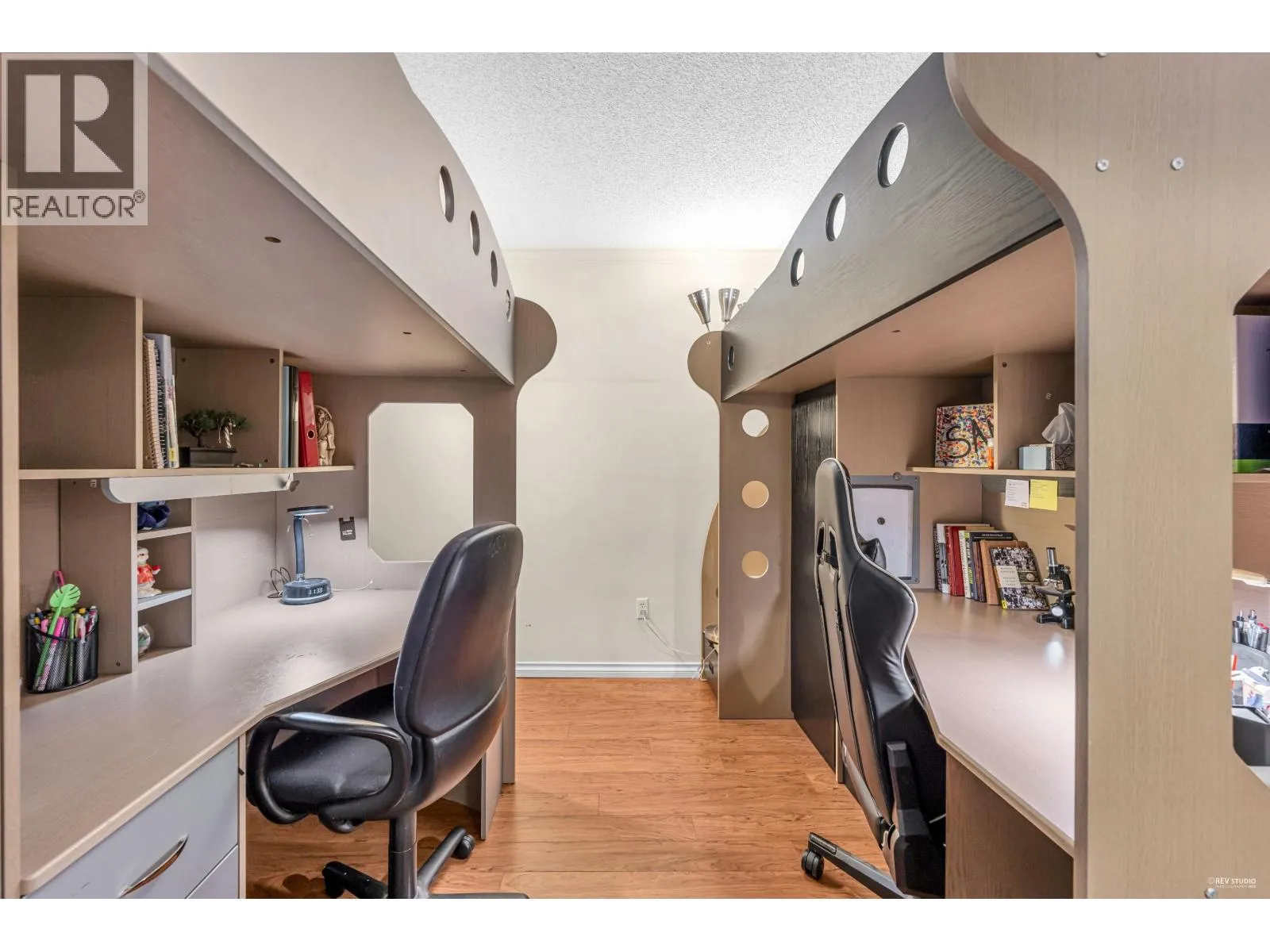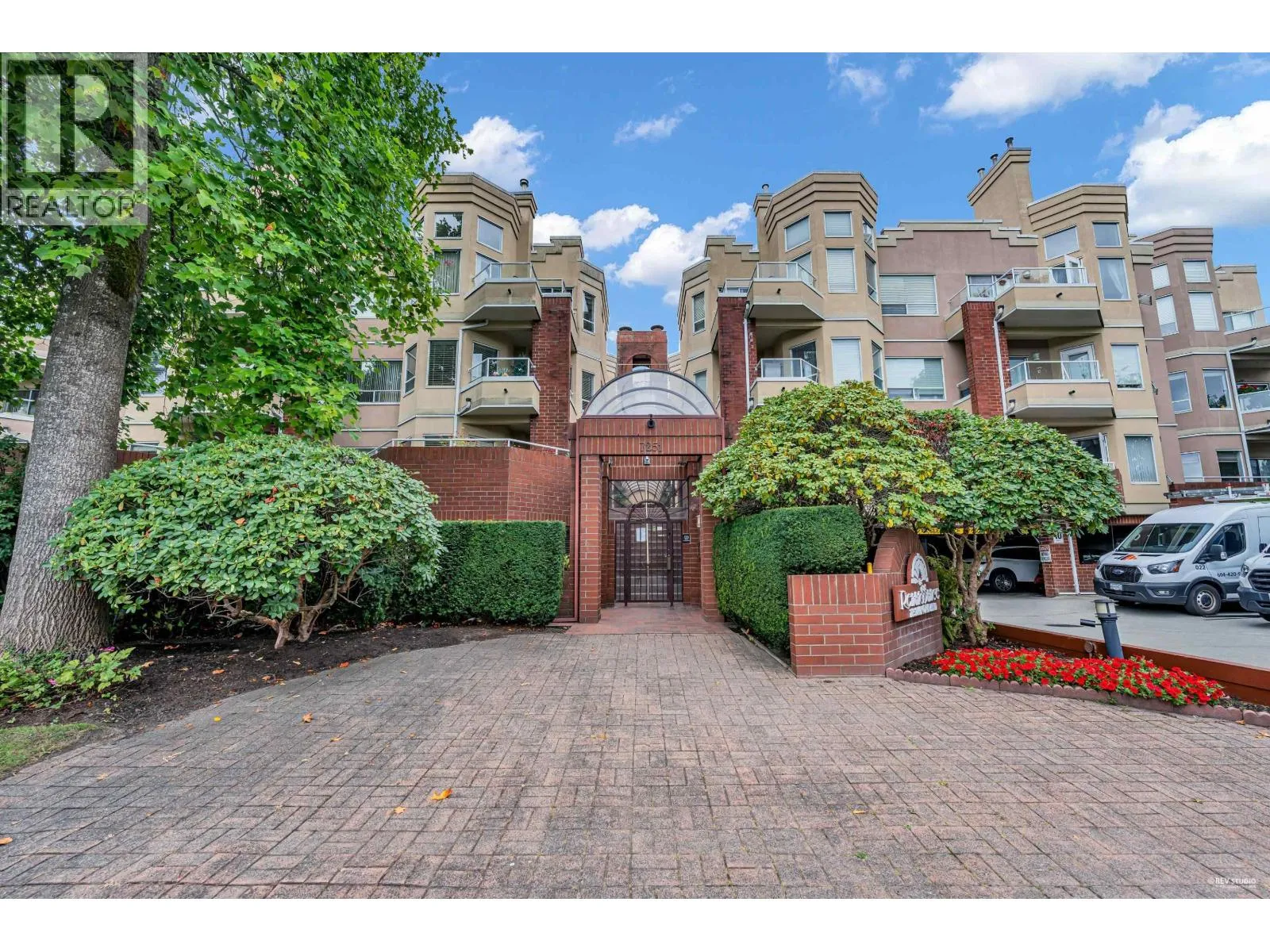 Prestigious "Renaissance" in the heart of Richmond, next to Richmond High (has IB program). Walk to Minoru Park & Pool, Richmond Centre Mall, City´s Centre for Active Living, Library, Senior Centre, Canada Line, etc. Quiet inside south facing 2-bdrm + den 1,285 sf spacious & bright unit. 80sf covered balcony looking onto greenbelt. Den is big enough to be the 3rd bedroom. Kitchen has eating area, entertainment sized living & dining area. Gas F/P. Wood flooring except tiled kitchen & bath. Efficient hot water heating. Unit has been lovingly cared for & shows very well. Complex has beautiful water fountain feature, exercise pool/hot tub, sauna & party/meeting room. One secured parking. In-suite laundry & storage. (id:27476)