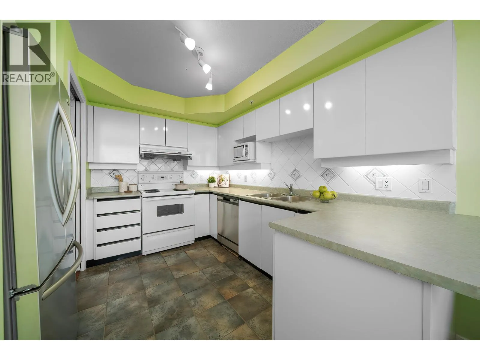 Rarely available 3-bedroom penthouse with 2 large parkings at Rosario Garden. This spacious two-level home offers unmatched 180-degree panoramic views of the North Shore mountains and surrounding gardens. The upper level features two bedrooms and 2 baths while the main level includes a third bedroom, giving the home a detached-house feel.The kitchen and family room boast thoughtful details, including a sliding door between the kitchen and dining room, and an expanded space for the fridge. Generous outdoor areas off the bedrooms and living room provide perfect spots for relaxation.Centrally located, Richmond Centre, public market, and much more everything you need is just a short walk away, making this home a perfect blend of luxury and convenience. (id:27476)