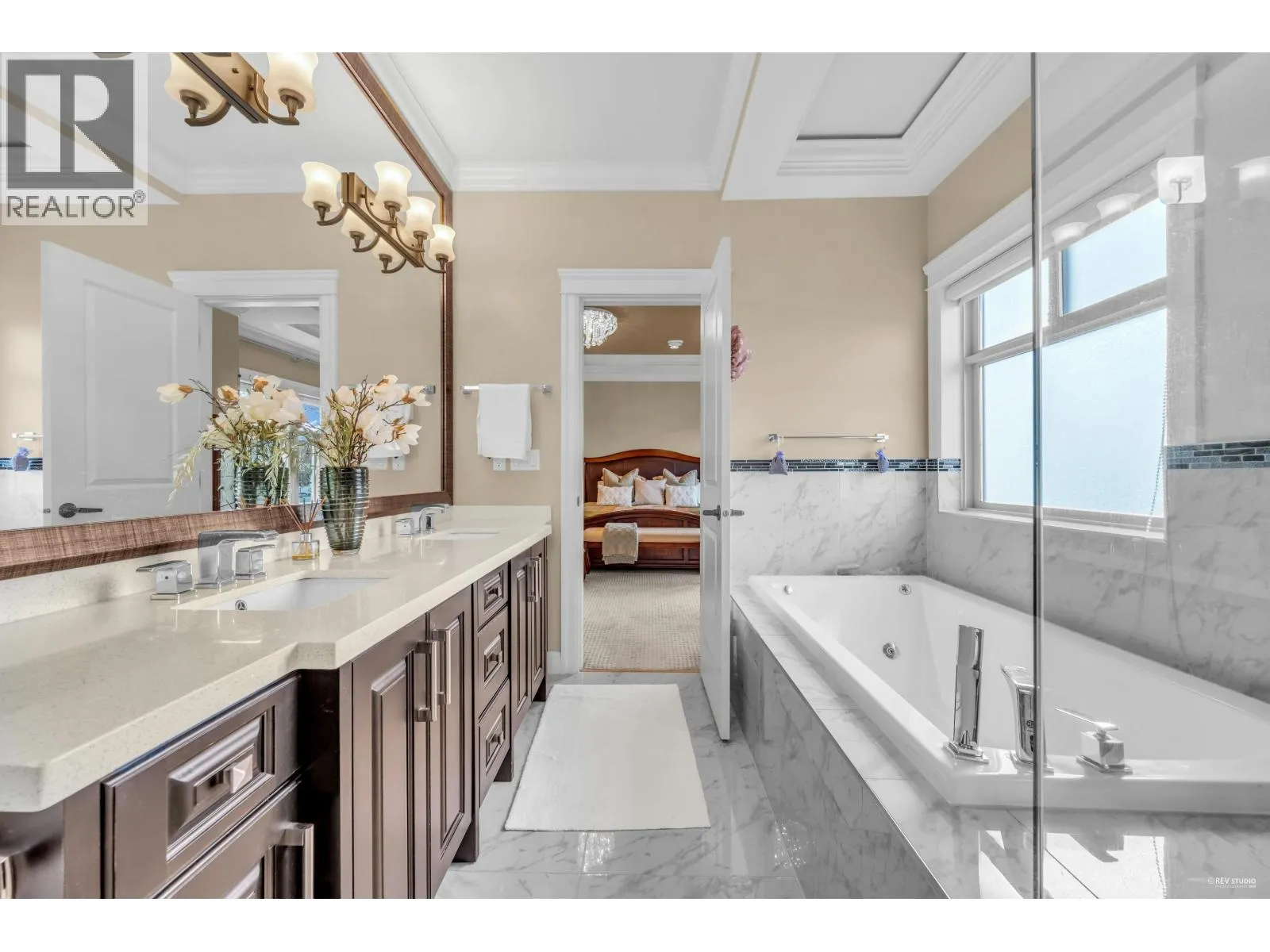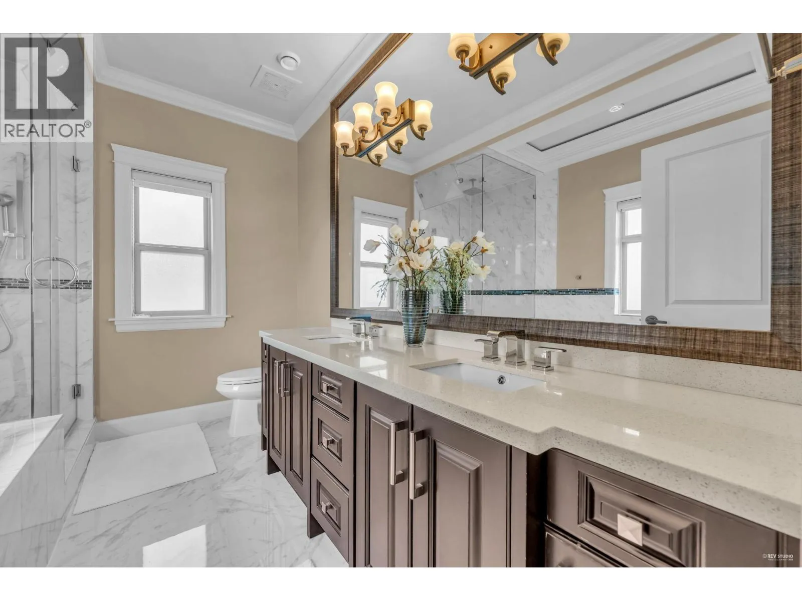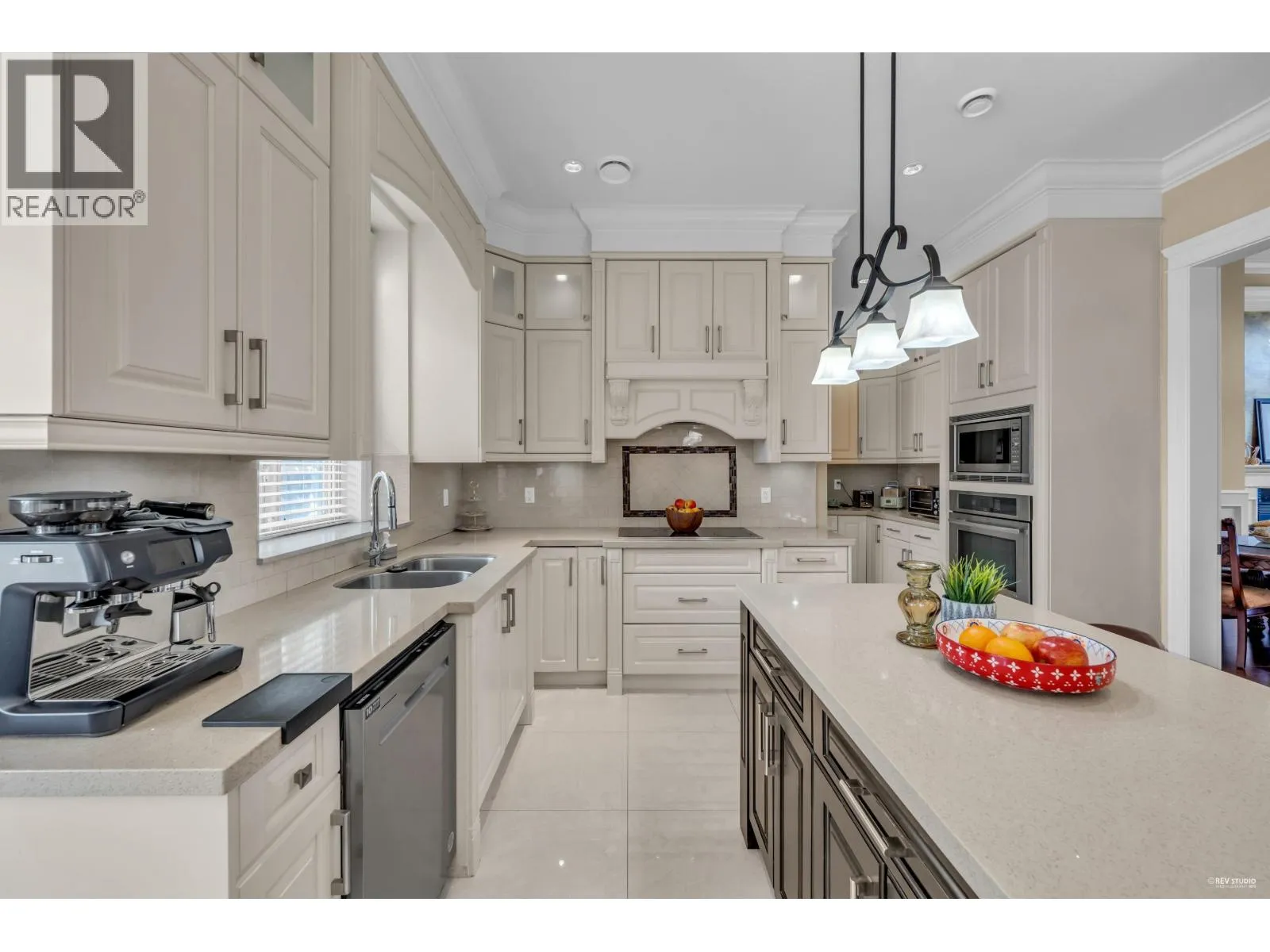 Exquisite luxury residence in Richmond´s prestigious Seafair neighborhood! This 3,570 sqft home sits on a beautifully landscaped 7,000 sqft lot in a quiet, safe community. Features include a stately linear façade, lush front/back gardens, and outstanding curb appeal. Inside boasts high-end s/s appliances, antique maple kitchen, quartz counters, engineered hardwood floors, intricate moldings & soaring ceilings in living, family & dining rooms. A/C, HRV, and abundant natural light add modern comfort. Main floor includes 1-bed suite with separate entry-ideal for rental or guests. Upstairs offers 3 ensuites + spacious master. Located on a well-maintained street with sidewalks, curbs & no overhead wires. A must-see! (id:27476)