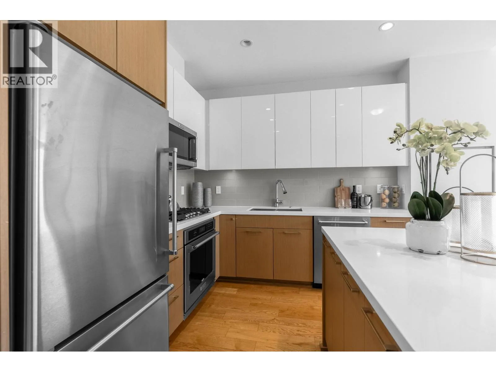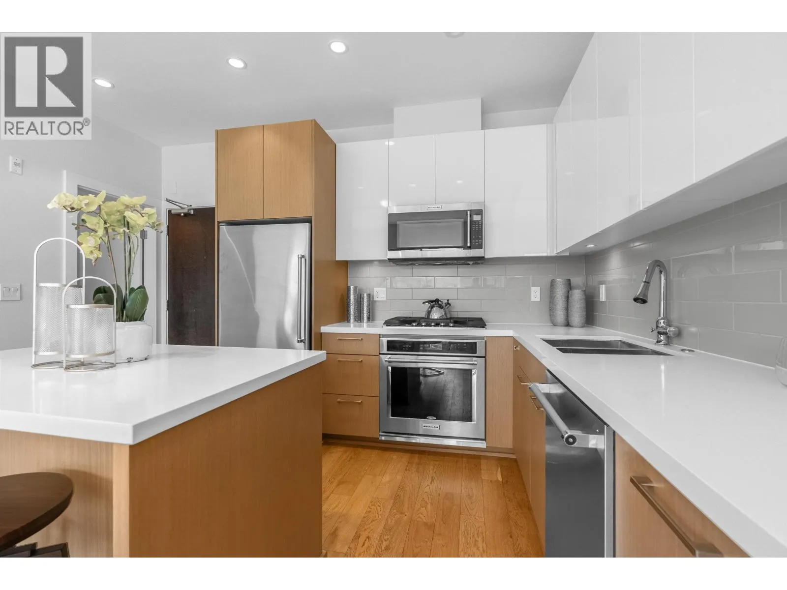 Penthouse living at its best! This top floor 2 bedroom+ 2 full bathrooms plus large den built by award-winning Onni Group. Offers 10' ceilings in the living area allowing for more natural light , open kitchen with KitchenAid stainless steel appliances, gas cooktop, hardwood floors, flat panel wood cabinetry with soft-closing hardware, quartz countertops, dual air cooling / heating system. Over 200 square feet deck, perfect for hosting parties, barbeques or lounging around. Excellent recreation facilities include an indoor pool, fitness centre, theatre room, study room & concierge services. All this in a fantastic central location close to Lansdowne Mall, Canada Line, T&T Supermarket, the Olympic Oval & the Dyke trails. Open house: Oct 12 Sun 2:00-4:00 (id:27476)