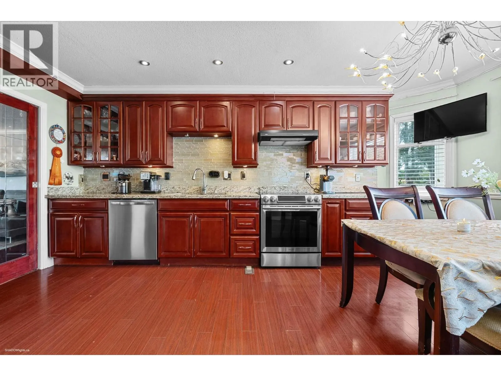 Welcome to Edenbridge - a sought-after, family-friendly community in Richmond´s prestigious Riverdale neighbourhood. This bright and spacious corner townhouse offers 1,708 sf across three levels, featuring 3 bedrooms, 2.5 baths, a huge flex room (perfect as a 4th bedroom, gym, office, or guest suite), and a rare double side-by-side garage. The heart of the home is the updated kitchen with granite countertops, cherrywood cabinets, and glass tile backsplash, flowing to an inviting dining area with balcony for summer BBQs. Upstairs, retreat to generous bedrooms, including a serene primary suite with updated ensuite. Thoughtful updates include laminate flooring, crown moulding, newer appliances, and 2022 hot water tank - all adding to peace of mind. Steps to Blair Elementary, Burnett Secondary, Thompson Community Centre, parks, and transit. Private and fully hedged despite backing onto No. 2 Road - a perfect blend of comfort and convenience. O/H Sunday Nov 9th 1:30pm-3pm (id:27476)