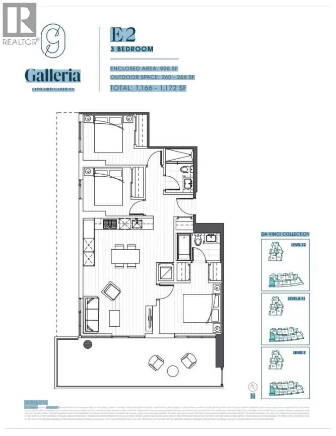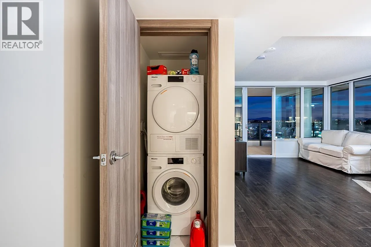 Welcome to this exceptional 3-bedroom, 2-bathroom corner unit at Concord Galleria Da Vinci by Concord Pacific. Spanning 906 SF with an expansive 290 SF balcony, this southwest-facing residence features stunning city and water views, filled with natural light. The spacious balcony is perfect for entertaining family and friends. Enjoy top-of-the-line Miele appliances and a thoughtfully designed kitchen with ample storage. Comfort is enhanced by the central air conditioning and heating system with a smart thermostat. The master bedroom boasts a smart KOHLER toilet and an auto-light closet. Amenities include a study room, Mahjong room, lounge, hot tub, concierge, and playground. Located in the heart of the city, it's just minutes from the skytrain station and diverse dining options. Centrally positioned near Union Square, Yohan, and Aberdeen Centre, and only a short walk to the new Capstan Skytrain Station. This unit includes 1 EV parking space and 1 bike locker. Enjoy a vibrant lifestyle! (id:27476)