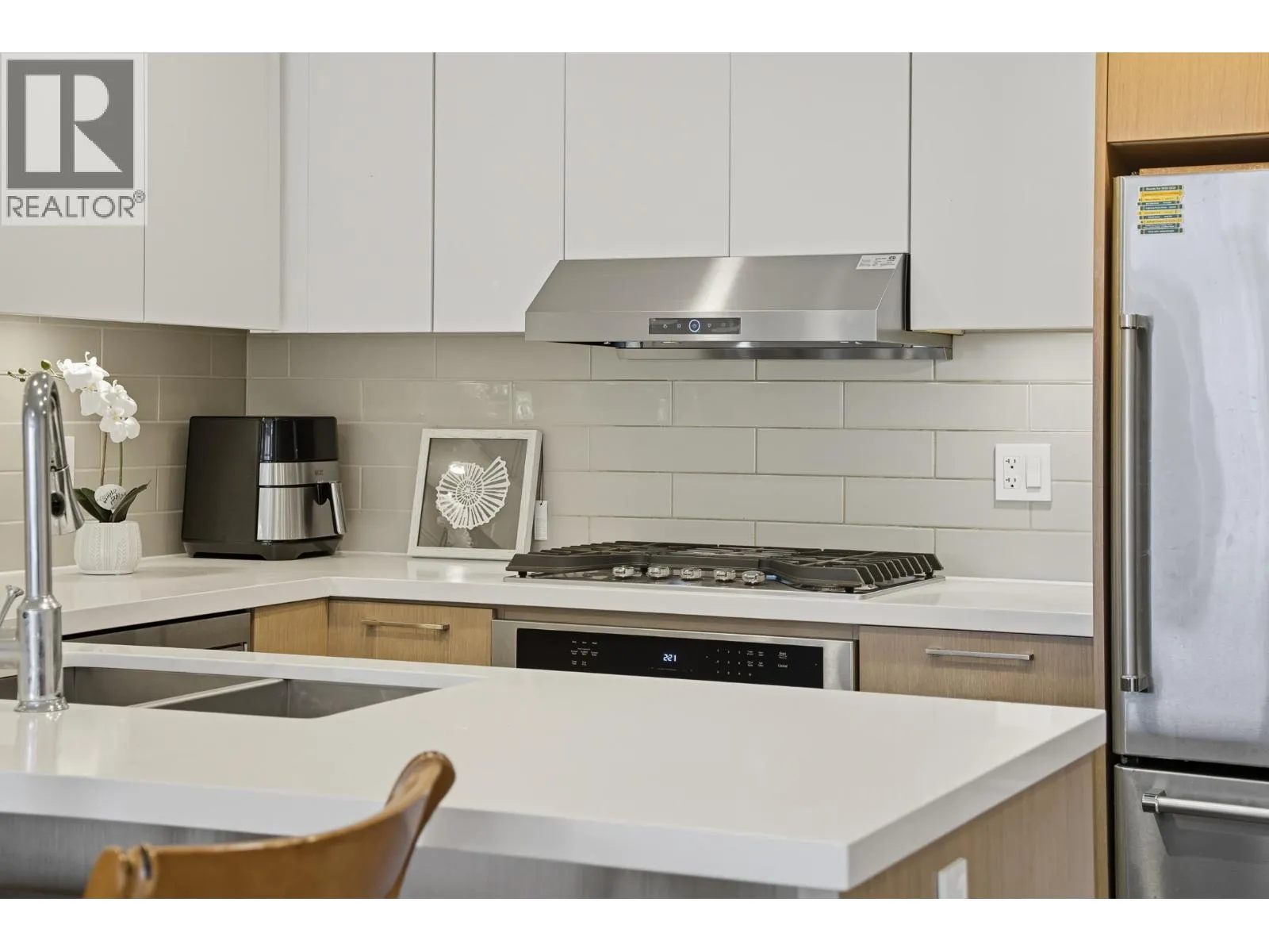 This Stunning 2 Bedroom + Huge Den which is being used as the 3rd bedroom! This Well maintained unit features an open living and dining areas are enhanced by elegant oak hardwood floors with Functional kitchen equipped with KitchenAid stainless steel appliances, a gas cooktop, double-nosed stone countertops, soft-close cabinetry, and a new strong range hood. The primary suite includes a walk-thru closet and en-suite bathroom. Premium amenities such as fully equipped fitness centre, indoor pool with hot tub and sauna, party room, and more. Ideally located within walking distance to Richmond Centre, the Oval, trails, T&T Supermarket, SkyTrain, and restaurants, very convenient. Open House: Sun, Nov 16, 2:30-4:30pm. (id:27476)