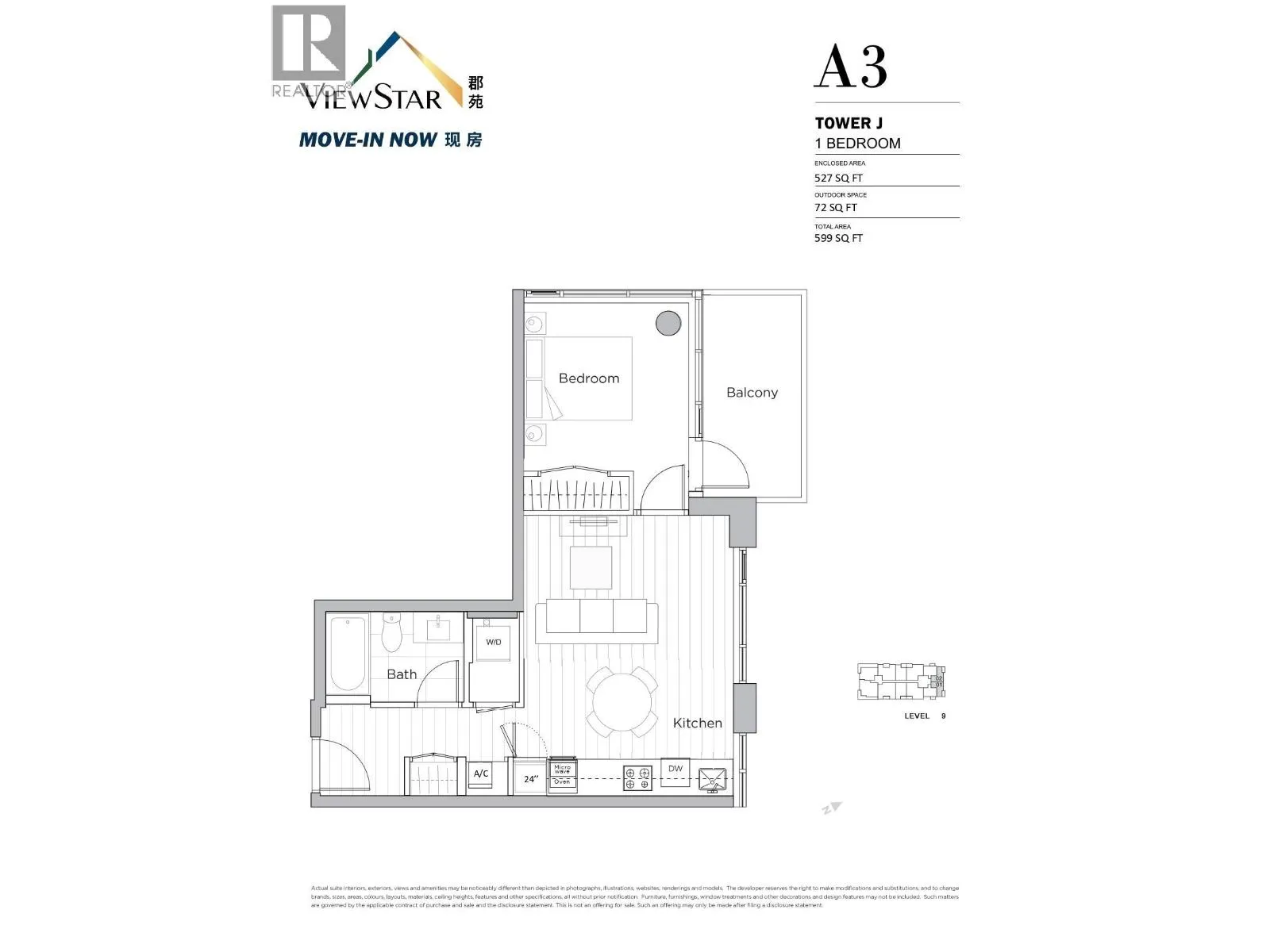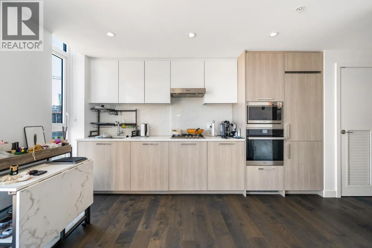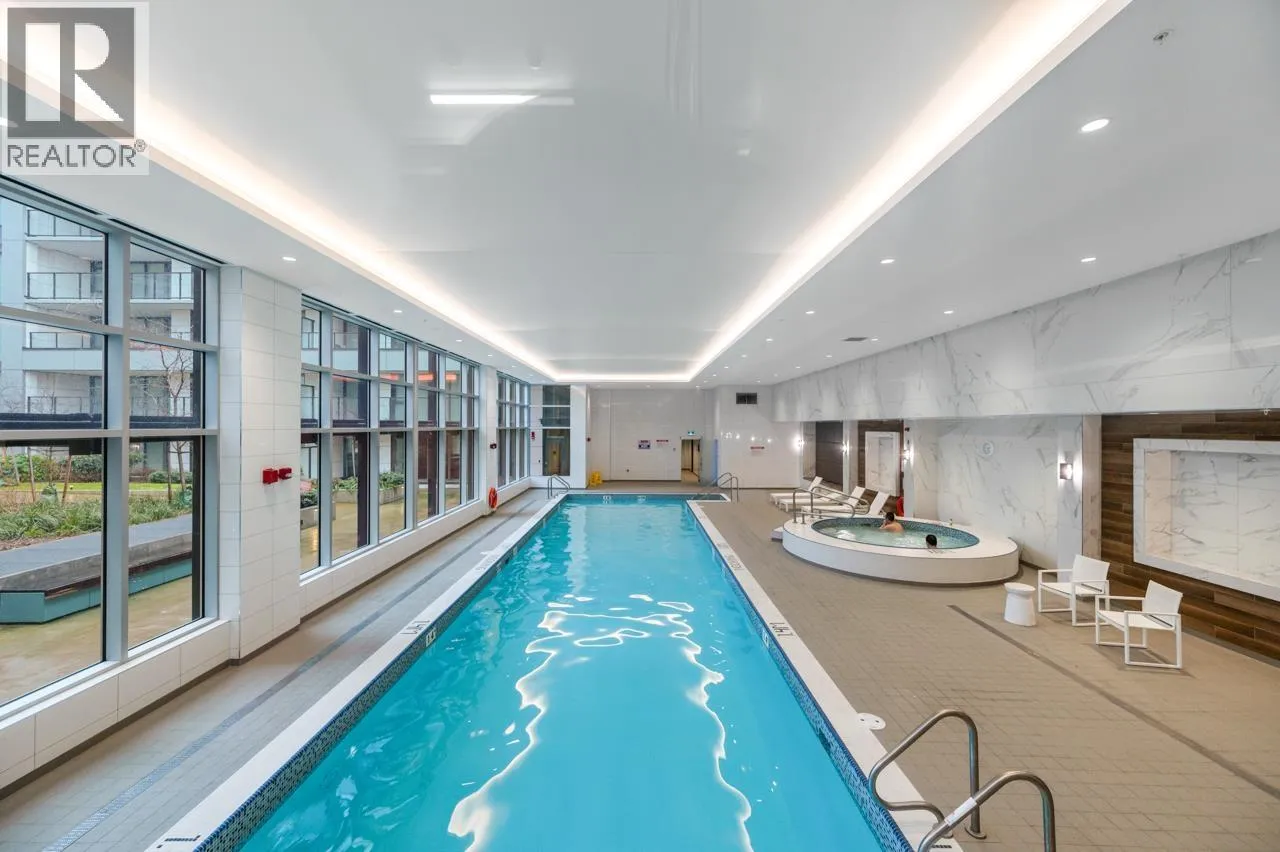 Location! Location! Location! A rare opportunity to own a 527 sq.ft. CORNER unit in Viewstar, Richmond´s premier waterfront community. This bright 1 bed + 1 bath home features high ceilings, A/C, engineered hardwood floors, and luxury Miele appliances with custom cabinetry. Includes 1 parking & 1 bike locker. Enjoy top-class amenities: fully equipped gym, indoor pool, entertainment lounge, and rooftop garden. Steps to SkyTrain, Yaohan Centre, Costco, and transit. Functional layout in excellent condition-ideal for living or investment. Don´t miss this prime waterfront home! (id:27476)