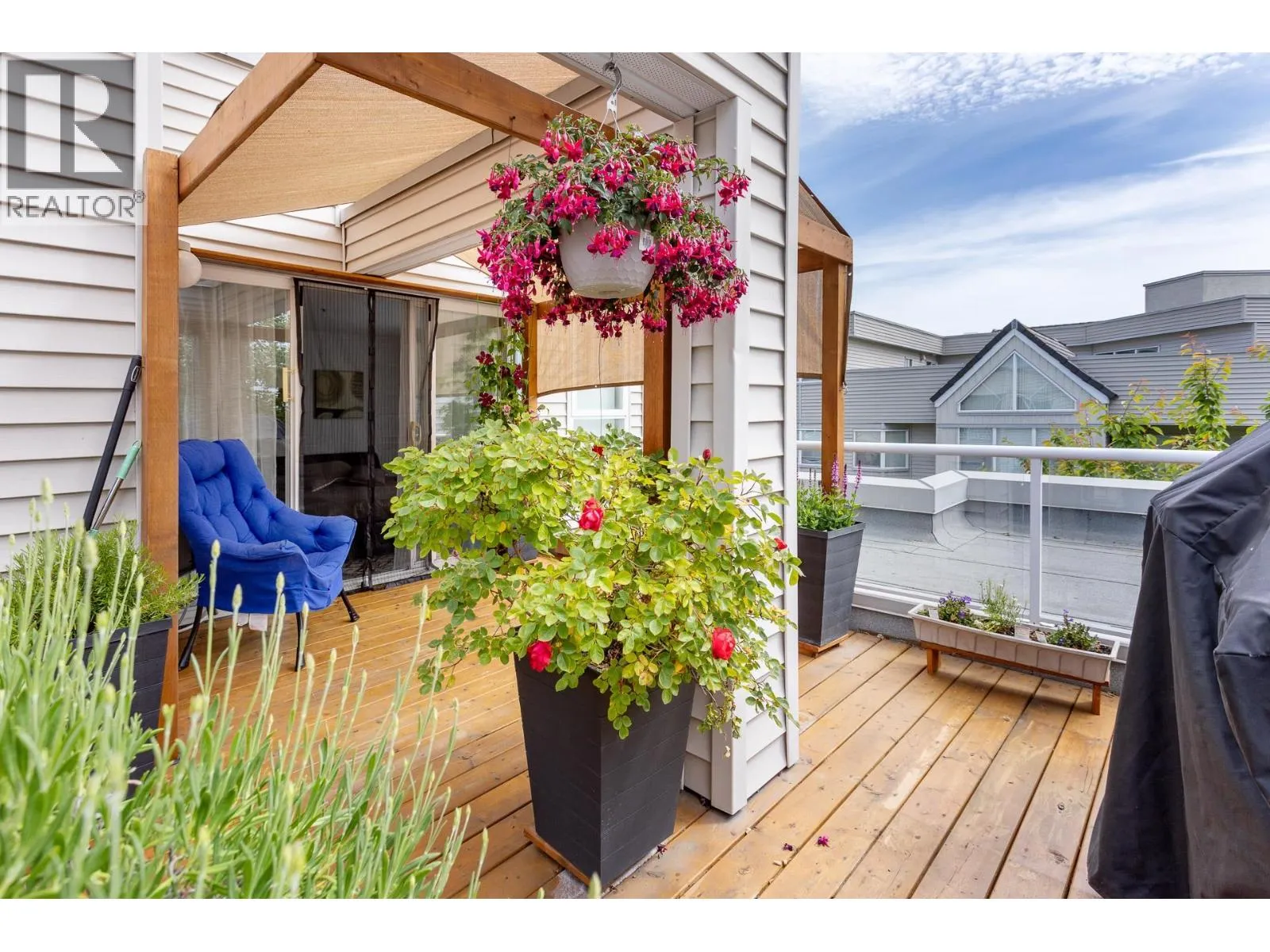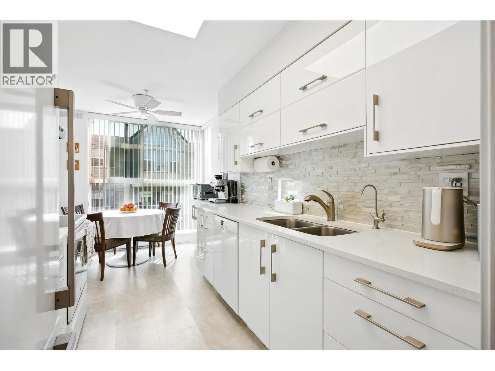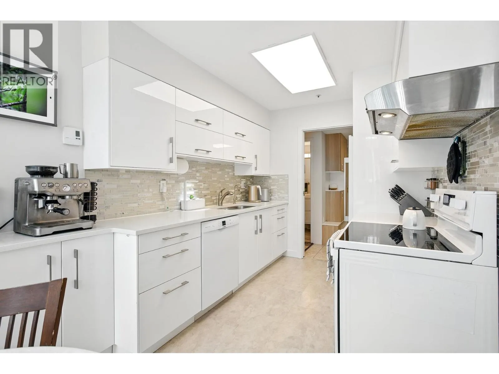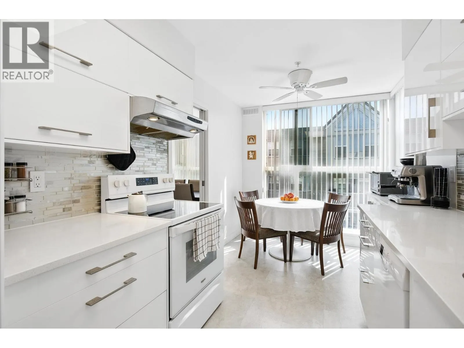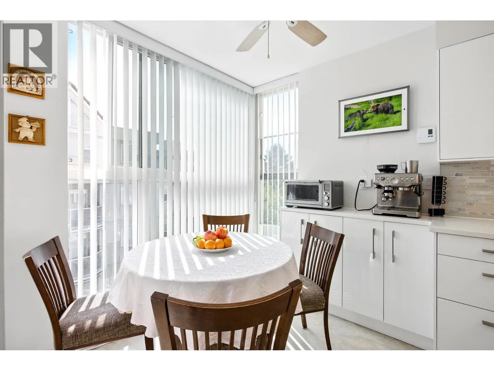 BEAUTIFULL PENTHOUSE on quiet side of building in desirable Brighouse South. Offering bright & spacious living, this 3-beds, 2-baths home features renovated timeless white kitchen w/quartz countertops, newer appls, & cozy dining area.The entire unit has been freshly painted & boasts updated baths & durable laminate flooring throughout. Generously sized living & dining rooms create welcoming space for relaxation & entertaining. Enjoy 2 balconies, including impressively large one perfect for hosting family gatherings /creating your own urban garden. 2 parking spots & storage locker. Building has been updated w/large windows, new hallway carpets, & fresh paint. Conveniently located with bus stop right at the front door this S/E facing unit centrally located. (id:27476)