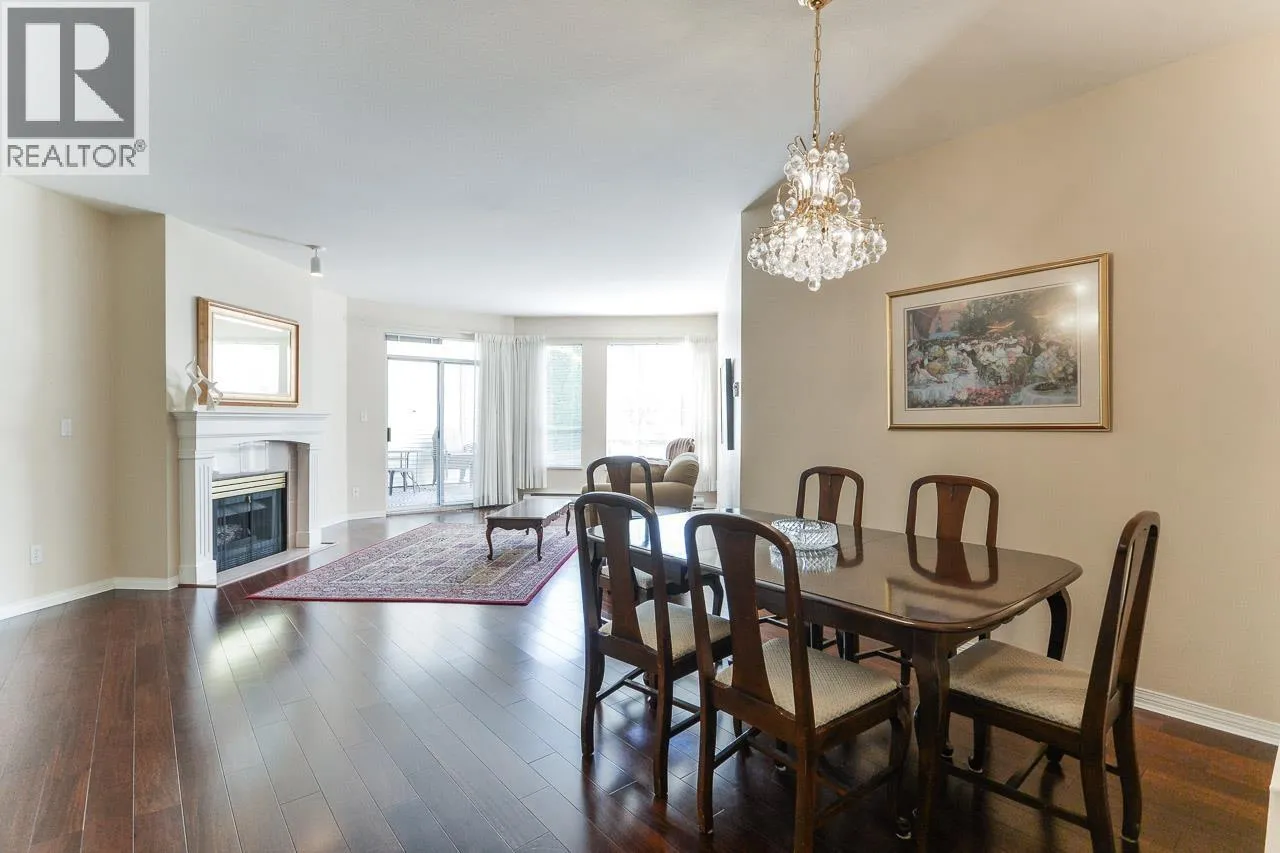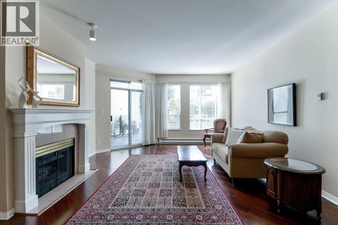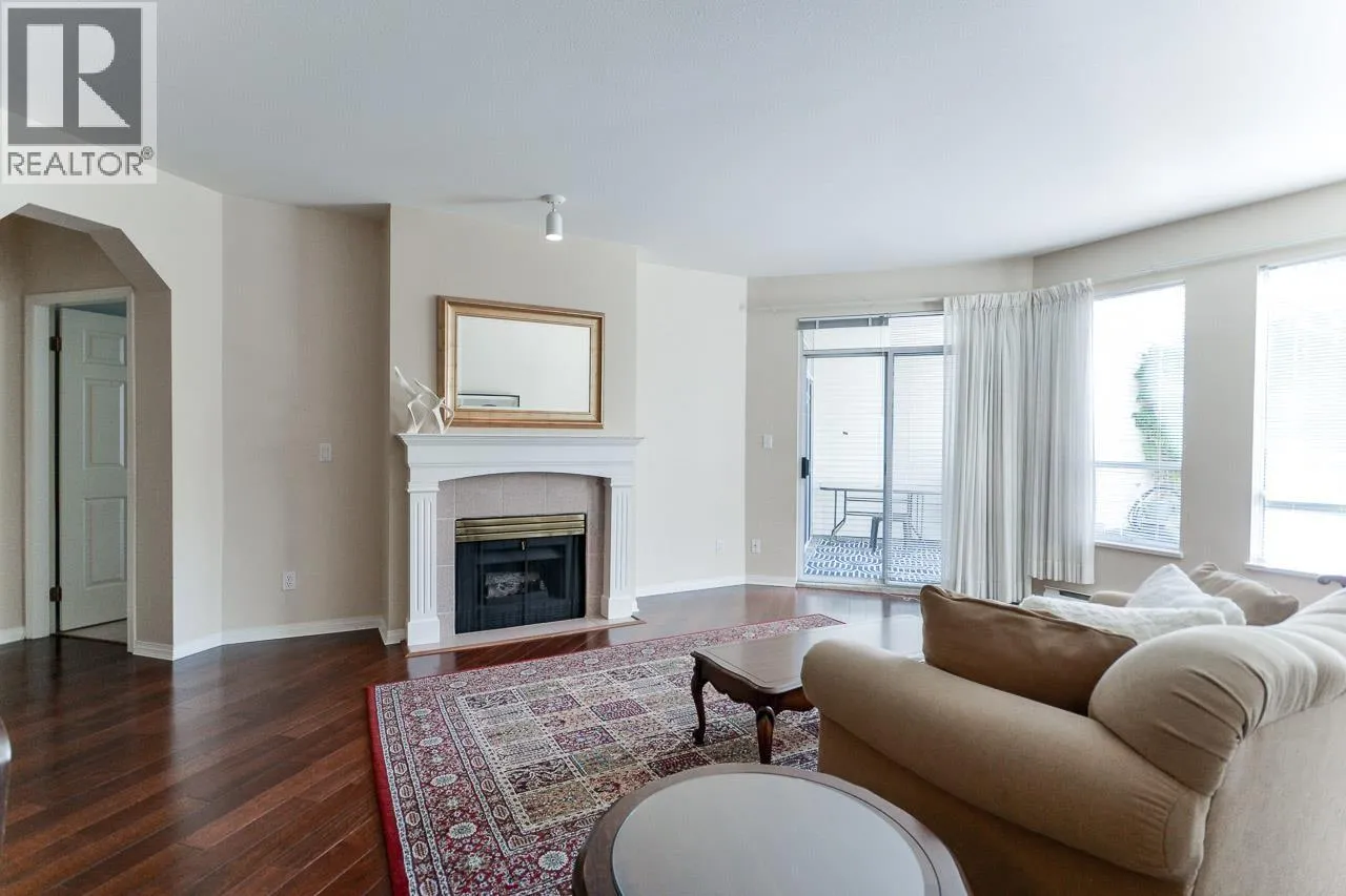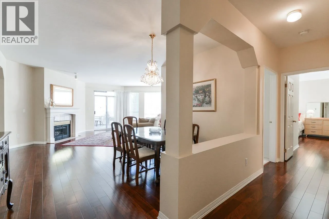 Rare South West Corner Garden Suite at Windgate Royale!Discover this beautifully maintained 3 bdrs, 2 baths residence offering 1,750 sq. ft. of luxurious ONE-LEVEL living. Thoughtfully designed, this exceptional home features spacious living and dining areas, a large kitchen, and comfortably sized bedrooms - each with direct access to an expansive 540 sq. ft. PRIVATE PATIO overlooking a peaceful inner courtyard with mature landscaping.Enjoy warm neutral tones, gleaming hardwood floors, a cozy gas fireplace, in-suite laundry and storage, plus 2 parking stalls and a locker! Exceptionally quiet, private, and truly one-of-a-kind - the only suite of its kind in the building! Perfectly located just steps from Garden City Mall, schools, parks, and transit. (id:27476)