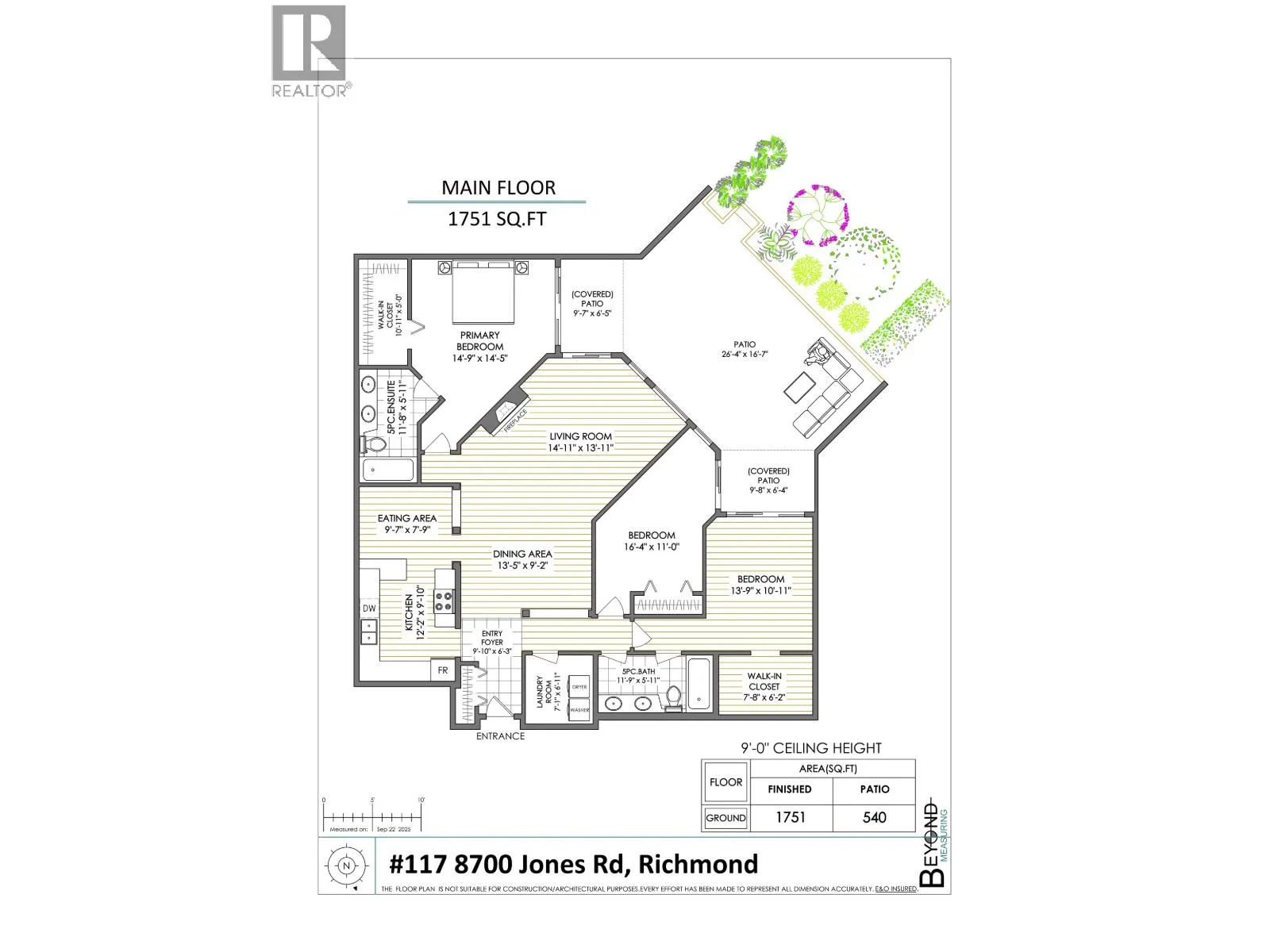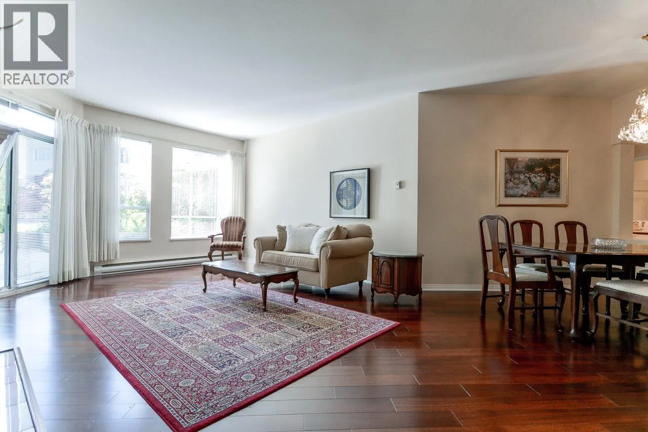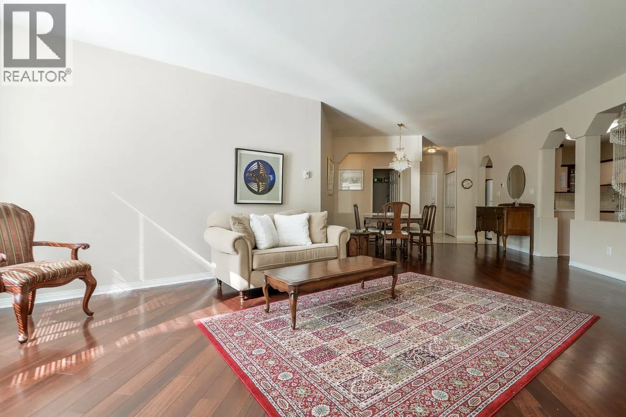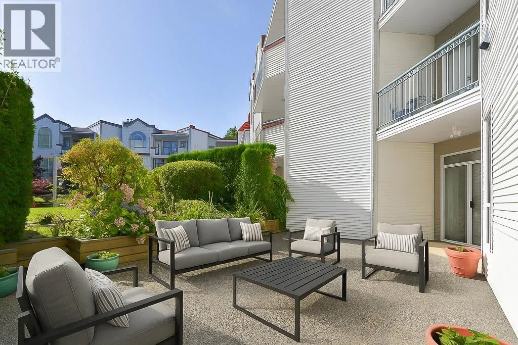 Rare South West Corner Garden Suite at Windgate Royale!Discover this beautifully maintained 3 bdrs, 2 baths residence offering 1,750 sq. ft. of luxurious ONE-LEVEL living. Thoughtfully designed, this exceptional home features spacious living and dining areas, a large kitchen, and comfortably sized bedrooms - each with direct access to an expansive 540 sq. ft. PRIVATE PATIO overlooking a peaceful inner courtyard with mature landscaping.Enjoy warm neutral tones, gleaming hardwood floors, a cozy gas fireplace, in-suite laundry and storage, plus 2 parking stalls and a locker! Exceptionally quiet, private, and truly one-of-a-kind - the only suite of its kind in the building! Perfectly located just steps from Garden City Mall, schools, parks, and transit. (id:27476)