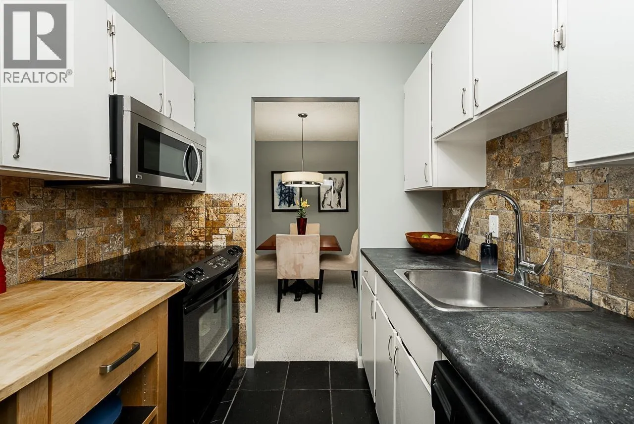 Concrete building at Masters Green. This updated 2 bed, 1 bath condo offers a private treed outlook and is conveniently located near the elevator. Enjoy an updated kitchen and bathroom as well as numerous updates throughout. Building amenities include an outdoor pool and clubhouse. This unit includes 1 parking spot with additional stalls available for rent, plus 1 storage locker. Experience easy access to greenspaces, elementary and high schools, as well as nearby grocery stores and shopping options. A perfect opportunity to live in a well-maintained and desirable community. (id:27476)