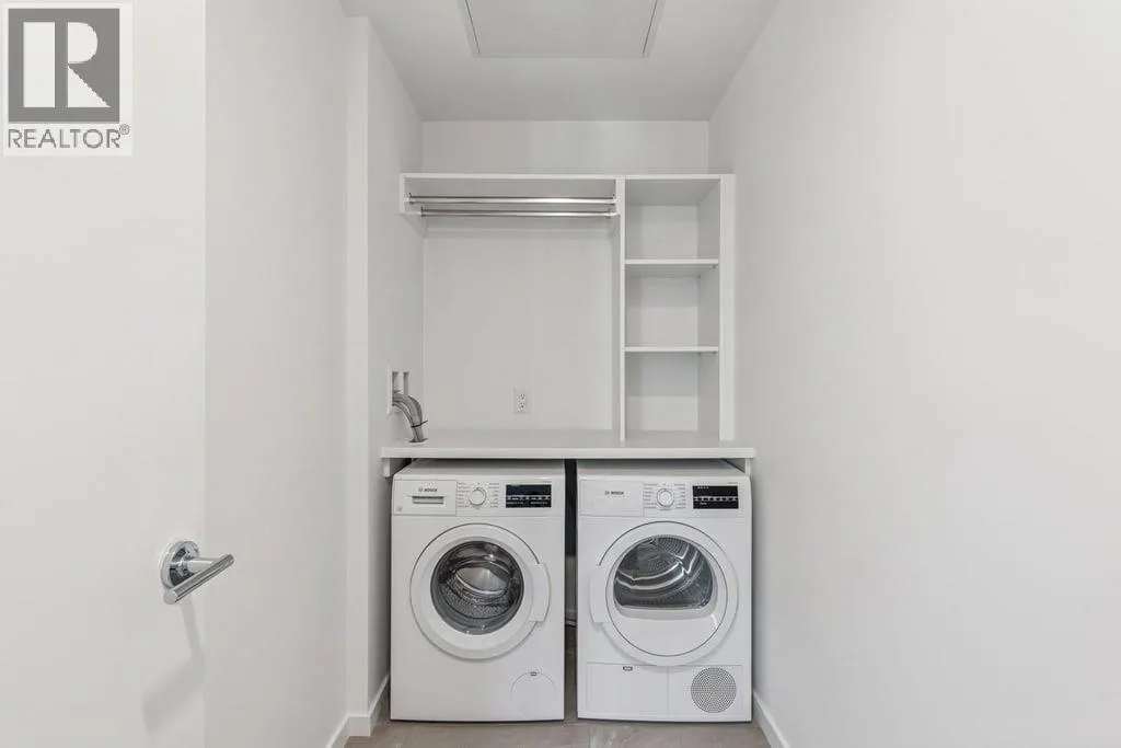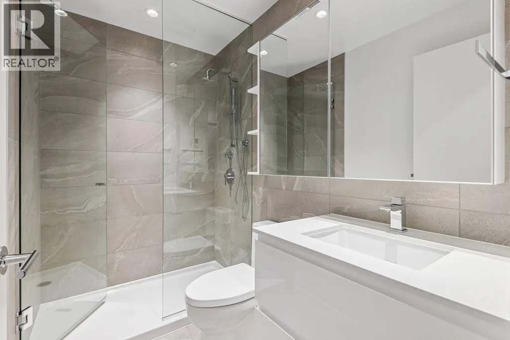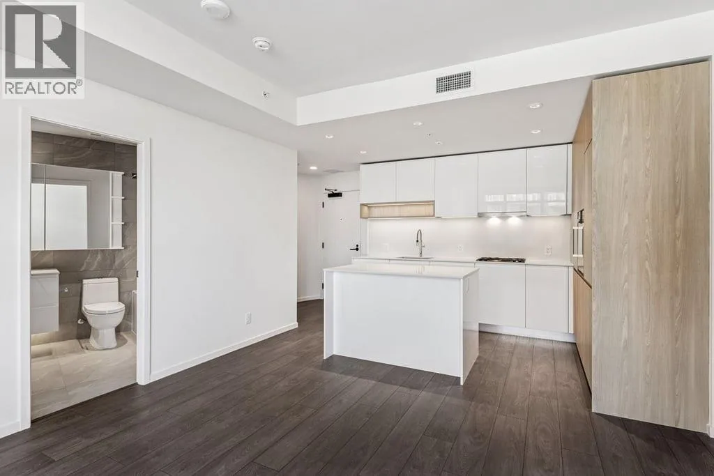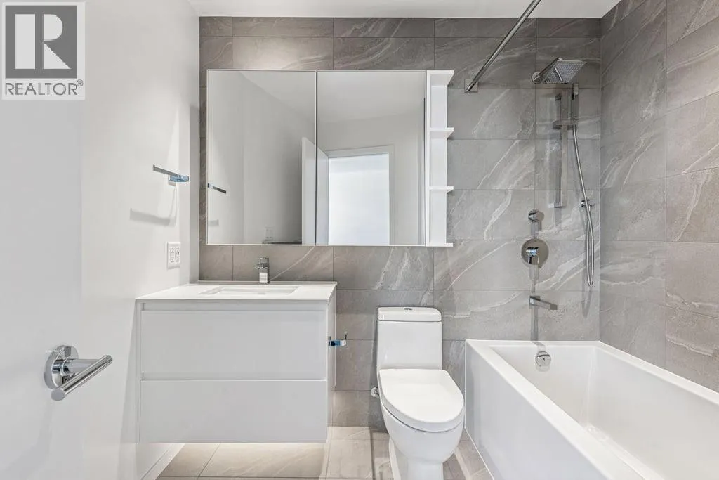 This brand-new 832sf condo offers 2 bedrooms, 2 bathrooms, laminate floors, and 9' ceilings throughout. The open living area features two large windows and access to a covered balcony. A full-size gourmet kitchen includes two-toned cabinets with side pantry, a large island with breakfast bar, pot lights, accent shelving, and stainless steel appliances including a gas cooktop. The primary bedroom overlooks the balcony and has a walk-through closet leading to a 3-piece ensuite with a frameless glass walk-in shower, tiled backsplash, and extended mirrored cabinet. The second bedroom sits on the opposite side of the living area. The 4-piece main bath has a soaker tub, tiled backsplash, and floating vanity. Extras include in-suite laundry with organizers, EV-ready parking, and heat pump system. (id:27476)