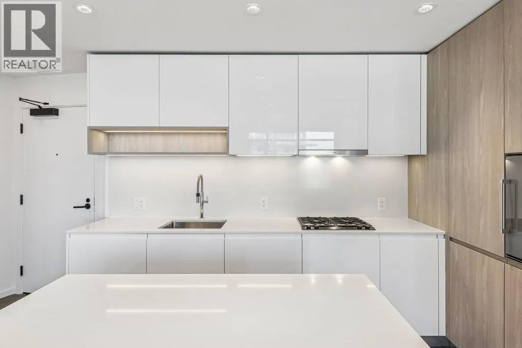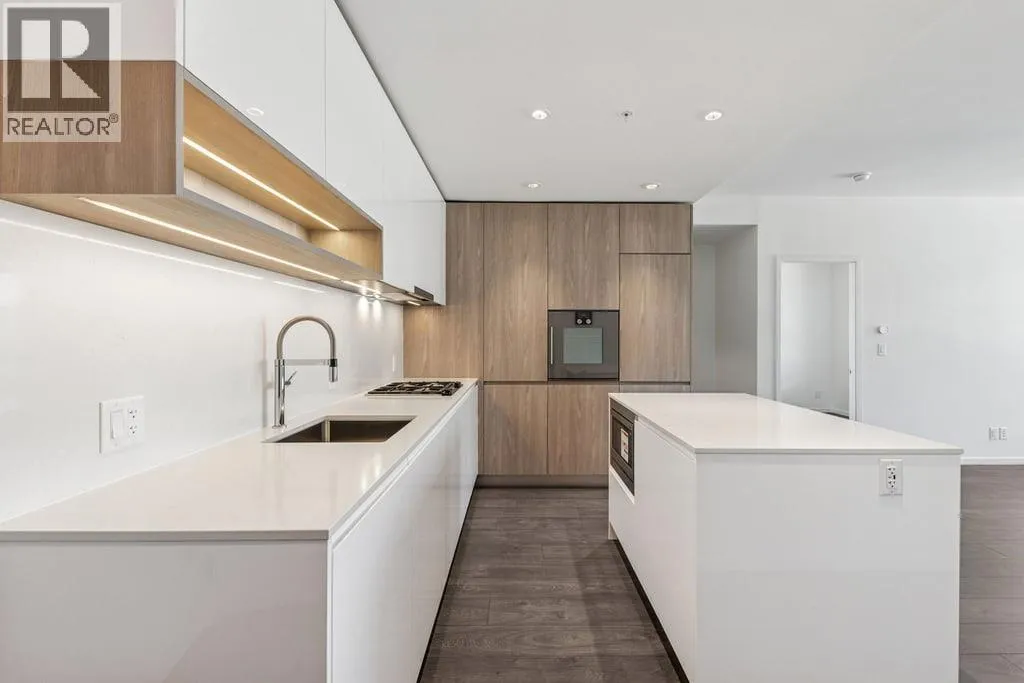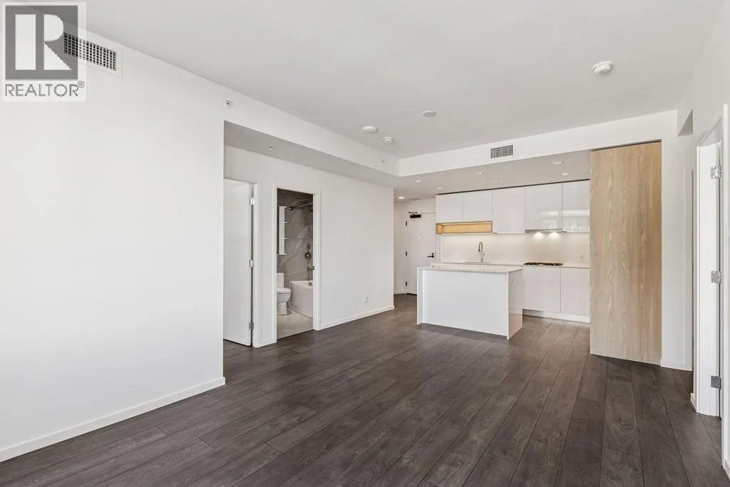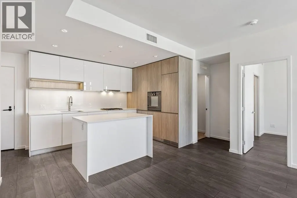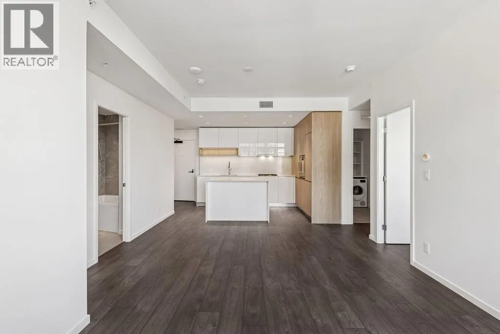 This brand-new 832sf condo offers 2 bedrooms, 2 bathrooms, laminate floors, and 9' ceilings throughout. The open living area features two large windows and access to a covered balcony. A full-size gourmet kitchen includes two-toned cabinets with side pantry, a large island with breakfast bar, pot lights, accent shelving, and stainless steel appliances including a gas cooktop. The primary bedroom overlooks the balcony and has a walk-through closet leading to a 3-piece ensuite with a frameless glass walk-in shower, tiled backsplash, and extended mirrored cabinet. The second bedroom sits on the opposite side of the living area. The 4-piece main bath has a soaker tub, tiled backsplash, and floating vanity. Extras include in-suite laundry with organizers, EV-ready parking, and heat pump system. (id:27476)