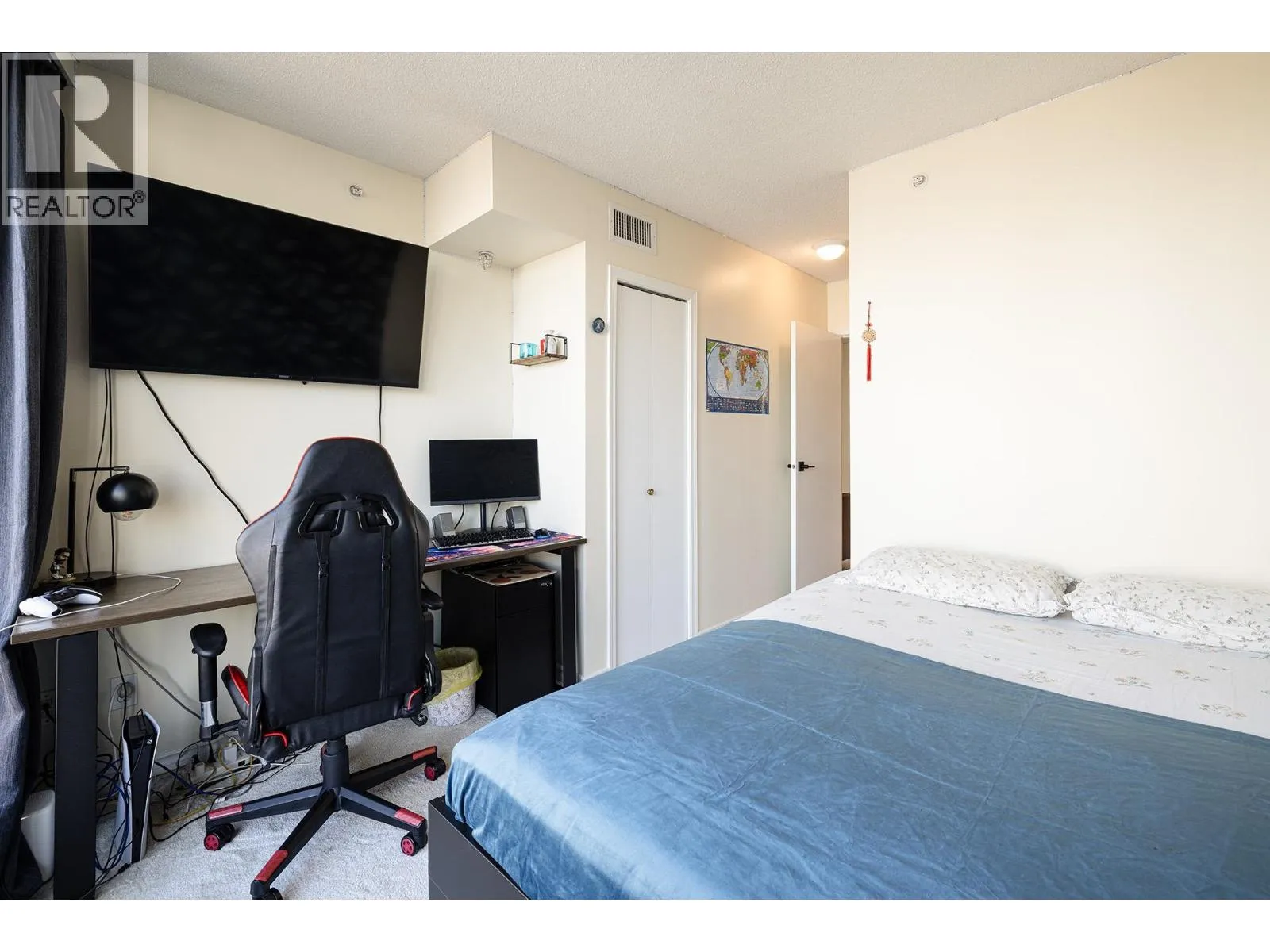 Investor and 1st time home buyer alert! Hardly found 2 bed 2 bath CONCRETE apartment unit offers AIR-CONDITIONING with FULL RENOVATION! The unit was completed renovated in 2024, brand new carpet throughout adds warmth to the cozy home, brand new full size laundry and stainless appliances with extended warranty, brand new kitchen and A/C unit, radiant heat in bathroom, new painting! Located in the city center of Richmond. N+E corner unit offers natural light all day long. 1 parking and 1 locker are included. Monthly strata fee including access to Executive Airport Hotel amenities with gym, hot tub, indoor swimming pool. Few minutes walk to Richmond Centre, skytrain, T&T, Oval, grocery and public transit. Nothing to do but move in! Call to make your private appointment! (id:27476)