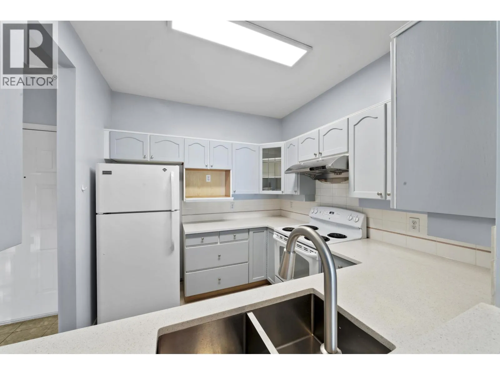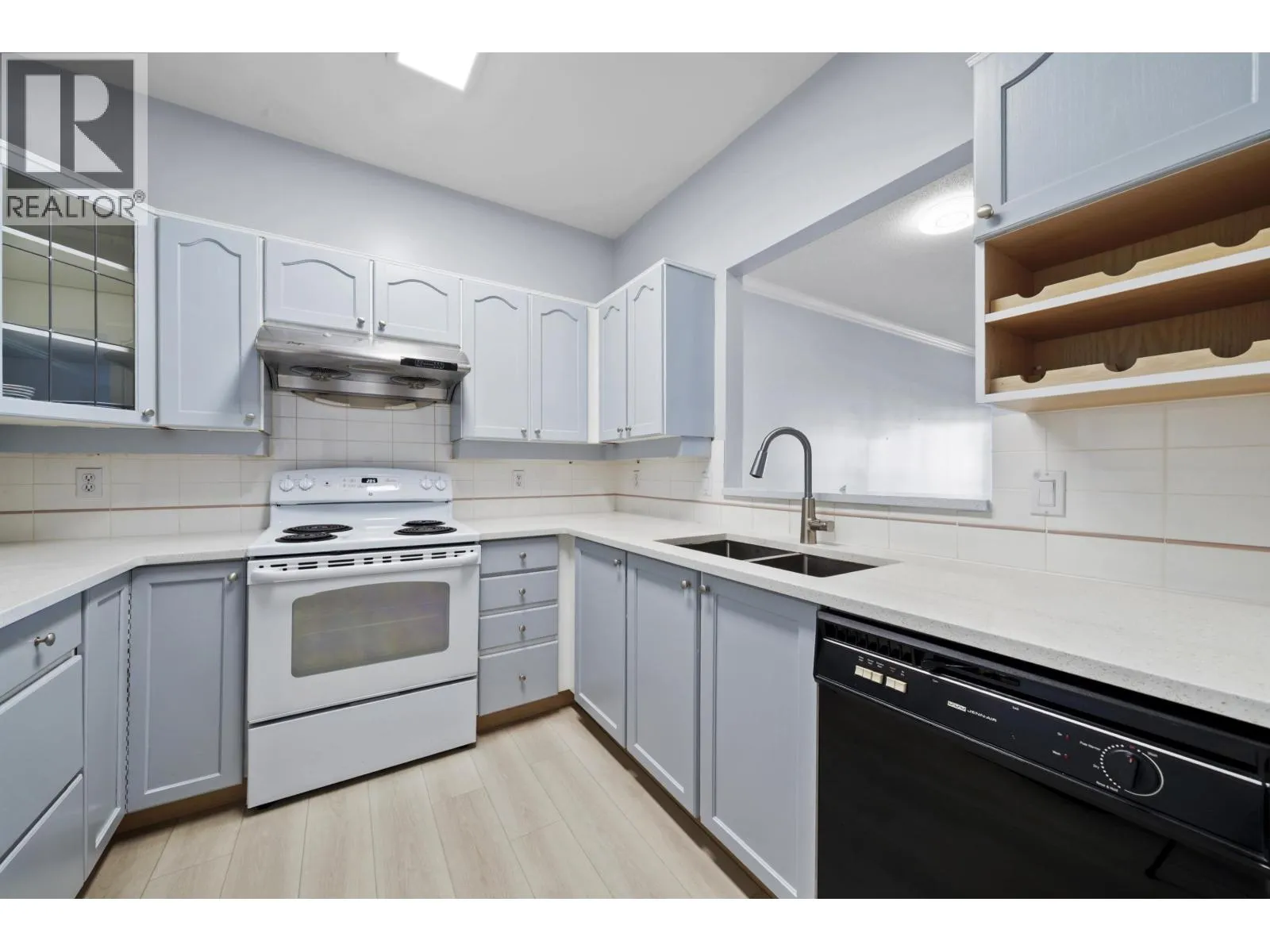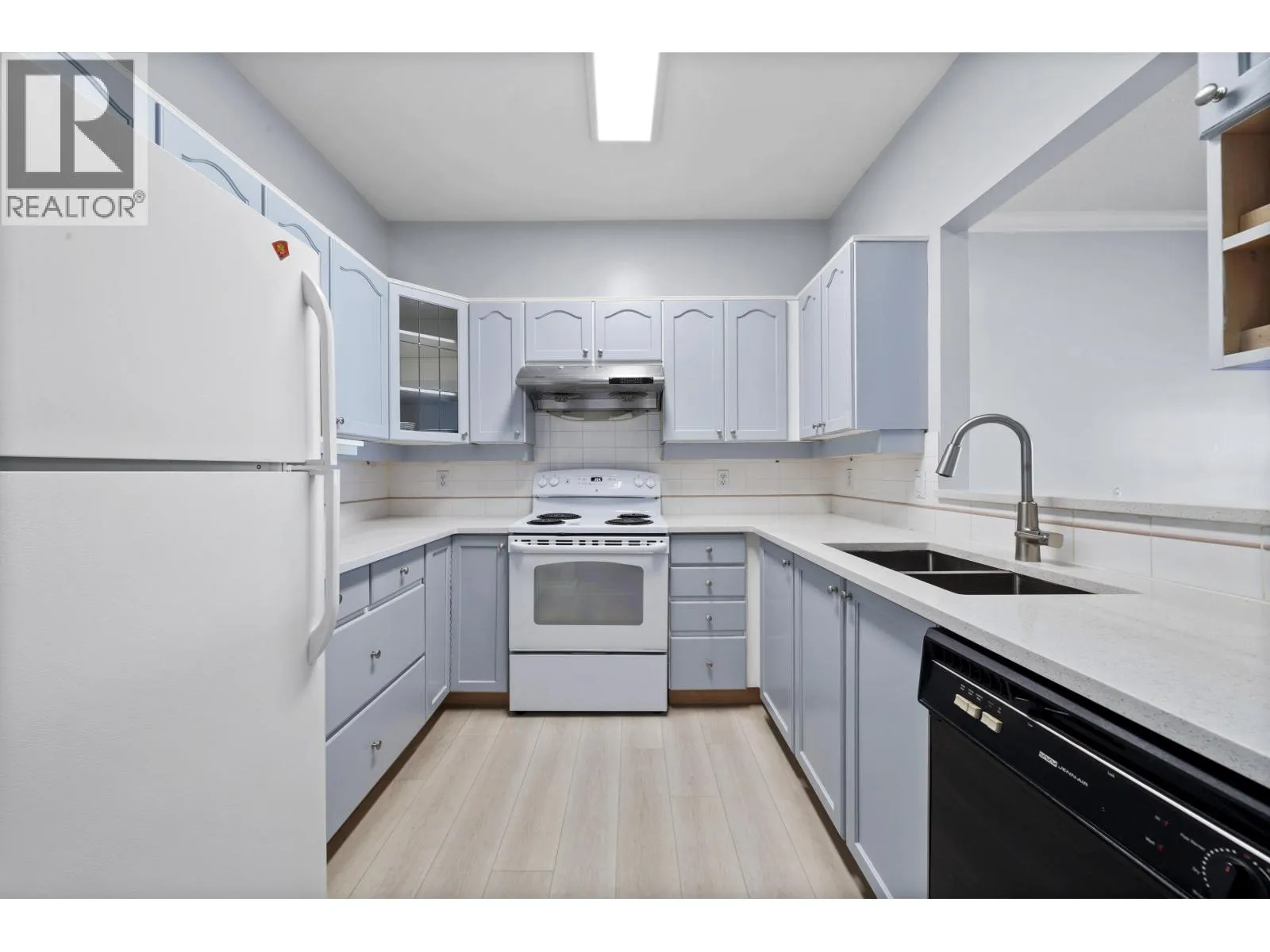 Bright and clean 1 bedroom North exposure unit in sought after "Queen's Gate". One of the largest floor plans at 750 sq. ft., this suite will accommodate house sized furniture and comes with a Huge kitchen area with loads of cupboards and counter space, High ceilings and a cozy gas fireplace. This is a rain screened building! One parking stall and one storage locker. Age restrictions - one resident must be 55+, 1 cat or dog ok. Close to shopping, transit and all amenities. (id:27476)