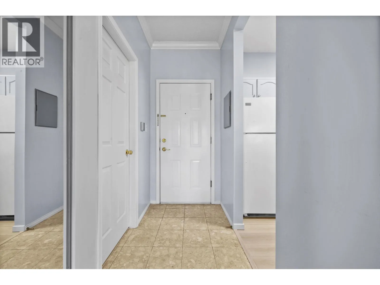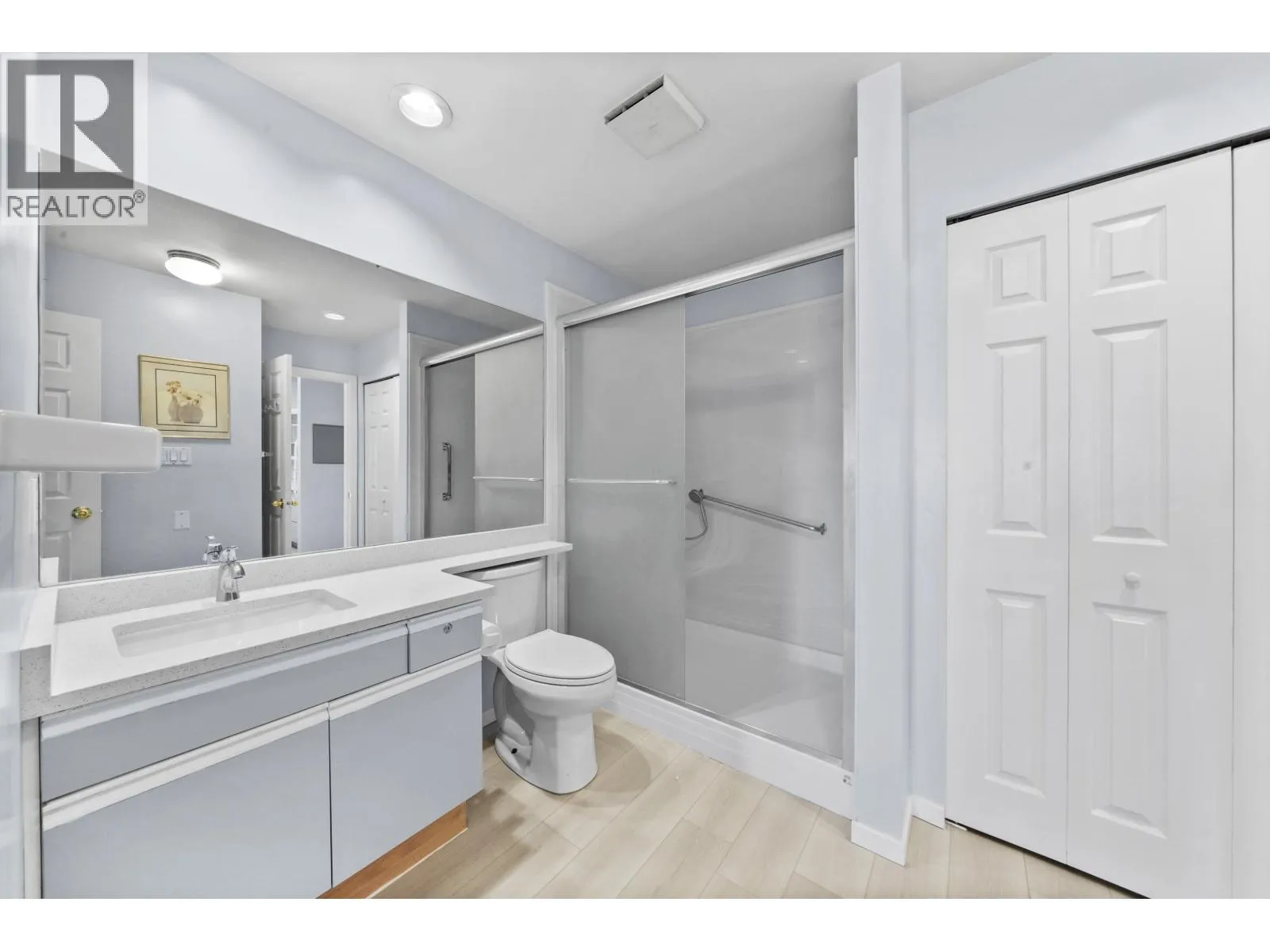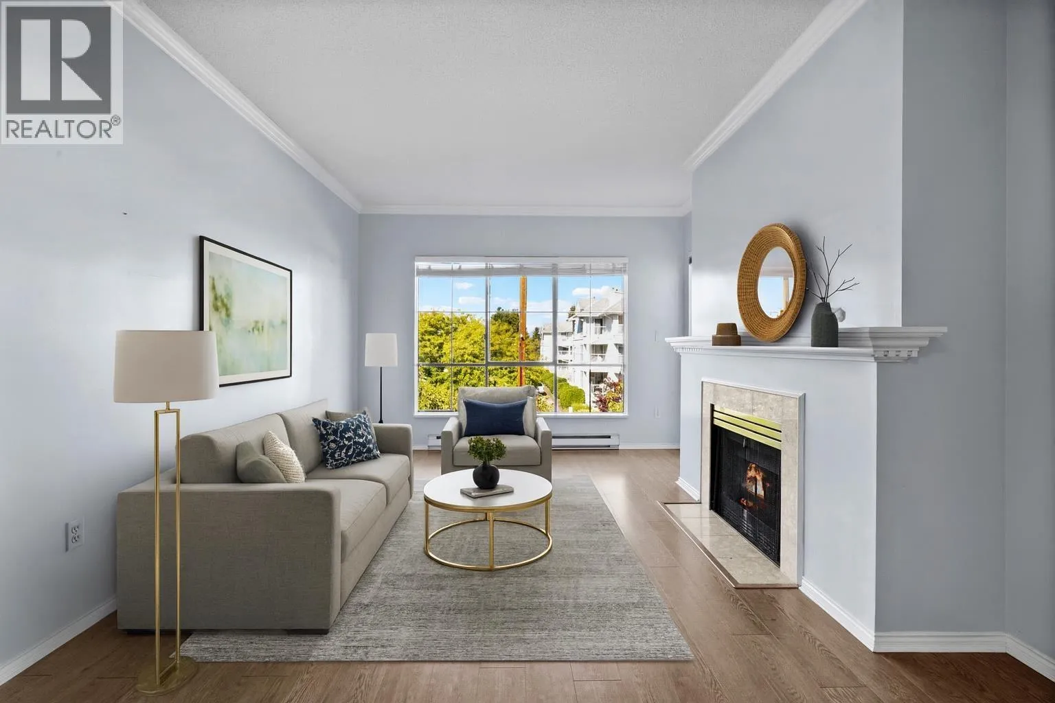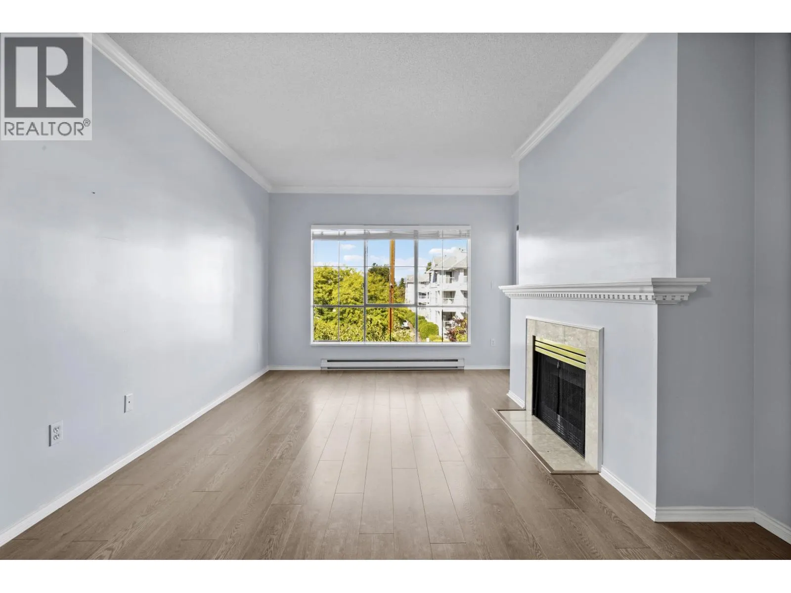 Bright and clean 1 bedroom North exposure unit in sought after "Queen's Gate". One of the largest floor plans at 750 sq. ft., this suite will accommodate house sized furniture and comes with a Huge kitchen area with loads of cupboards and counter space, High ceilings and a cozy gas fireplace. This is a rain screened building! One parking stall and one storage locker. Age restrictions - one resident must be 55+, 1 cat or dog ok. Close to shopping, transit and all amenities. (id:27476)
