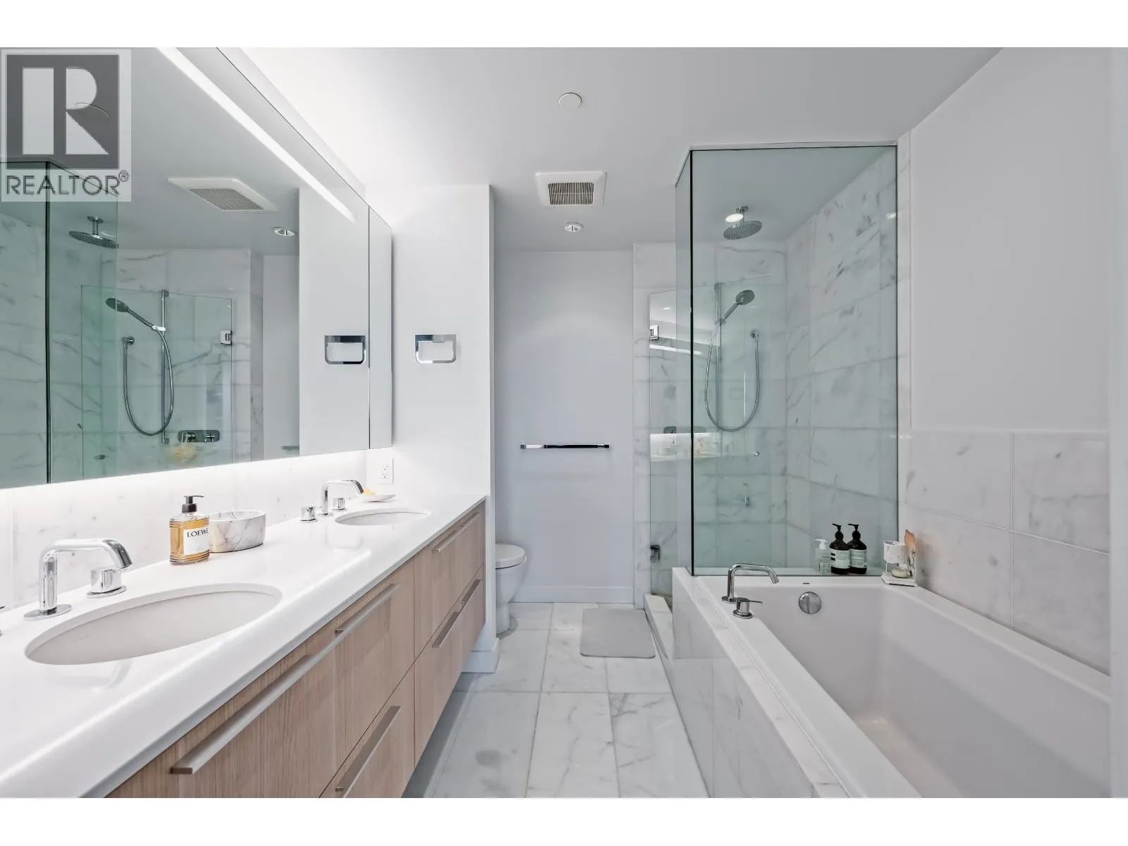 Welcome to River Green, Richmond´s premier waterfront community near the Olympic Oval. This NW-facing unit offers 1,040 sq. ft. of interior space + 250 sq. ft. patio with water and greenery views-and total privacy with no residential buildings outside the windows. Features include 9'3" ceilings, engineered hardwood in bedrooms, NuHeat flooring, A/C, panoramic windows, smart home system with dimmable lighting, and elegant wallpaper in the living room. A perfect retreat for those seeking privacy, comfort, and luxury in one of Richmond´s most desirable locations. Open House Saturday (Oct 11), 3:00 to 5:00 pm. Please book your time slot to view. (id:27476)
