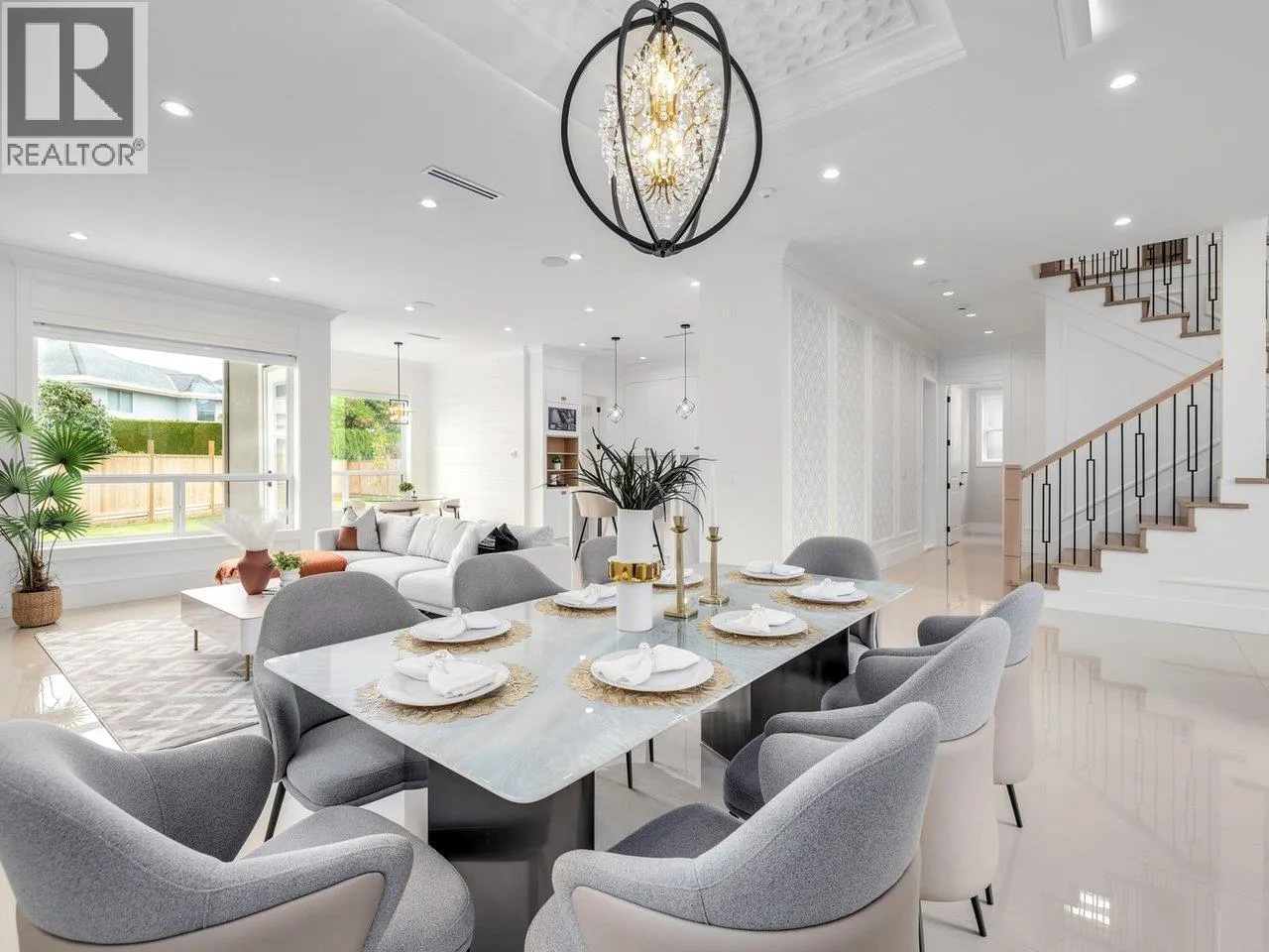 Quality built new home located in popular Granville area. Boasts 3,876 SF of spacious and luxury living plus double car garage. Situated in a quiet and private cul-de-sac setting.. High ceilings in Foyer and Living room. Designer kitchen with wok kitchen and a large eating area overlooking the patio. Private work from home office. Complete A/C, HRV and radiant heat. Upstairs with 4 luxurious and spacious bedrooms with private ensuites and walk in closets. Primary bedroom with 2 walk in closets. Centrally located with walking distance to shopping, transit, McKay and Burnett, Thompson Community Centre, local parks and rec. Home automation with Control 4 system. Legal 1 bdrm suite for revenue helper or extended family use. Excellent location, area of high end homes. Close to all amenities. Priced for quick action. View anytime. (id:27476)