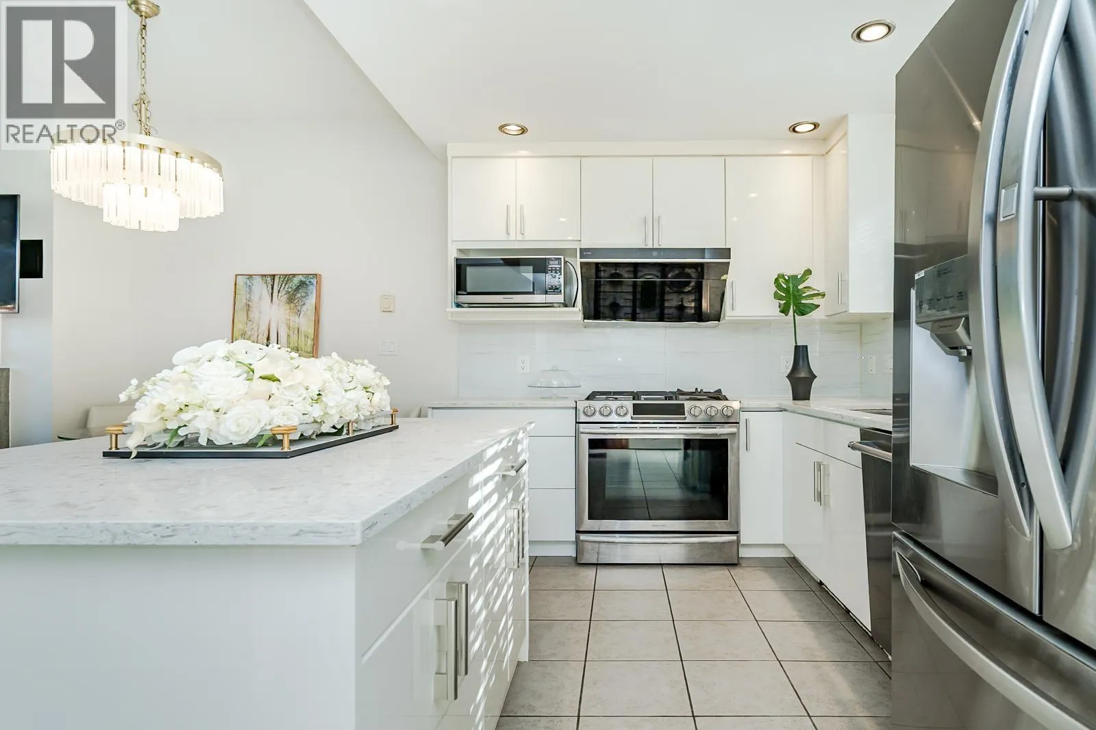 Quiet North/South facing upper 2 level concrete townhomes in Hamptons Park. Enjoy your resort lifestyle with 300s.f. front and back private terrace garden patio, steps to indoor swimming pool, hot tub, steam and sauna room, gym & recreation room. New laminated h/w flooring in living room, new paints, newer kitchen with s/s appliances. Functional layout with 9 ft. ceilings in living room , 2 spacious bedrooms + flex room (can be a den or 3rd bedroom), 2-1/2 baths, easy access to the secured parking. Great location close to Parks, tennis court, schools, restaurants, shops and transit etc. Open house Nov 15 Sat 3-5 p.m. (id:27476)