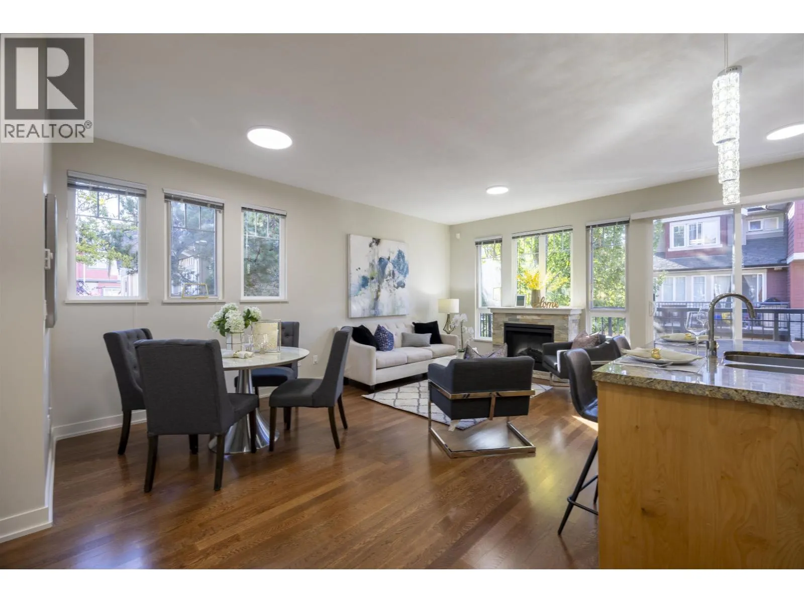 Modern Corner Townhouse in "Brandywine Lane", developed by award-winning Cressey, in Richmond´s sought-after McLennan North. This bright 4-bedroom end unit features three-side sun exposure and abundant natural light. The functional layout includes one bedroom and full bath on the lower level, the primary suite on the main floor, and two bedrooms upstairs, ideal for families or multi-generational living. Features include high-efficiency furnace, hardwood floors, granite countertops, stainless steel appliances, gas BBQ hook-up, private fenced yard, balcony, and side-by-side double garage with full-size driveway for extra parking. Quiet inside location close to transit, Garden City Park, and within walking distance to Anderson Elementary and MacNeill Secondary. Open House: Nov 15 (Sat) 2-4 PM (id:27476)