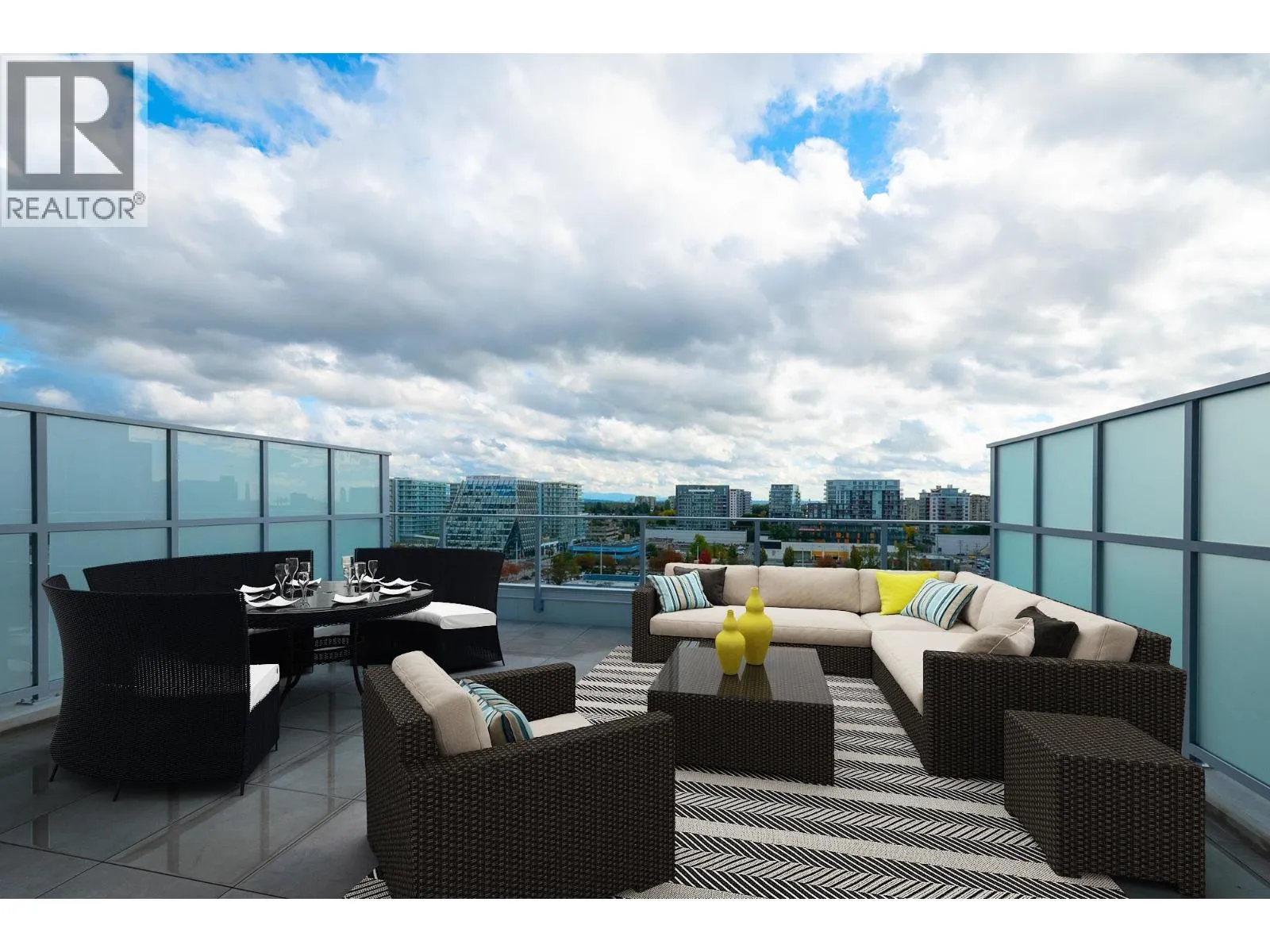 Experience elevated urban living on the 10th floor at RC at CF Richmond Centre - Tower D Neighbourhood One, featuring a unique 449 sq.ft. patio that seamlessly extends your living space for outdoor dining and entertaining. This bright 2-bed + den, 2-bath residence showcases refined modern design with sleek cabinetry, engineered stone counters, and a premium Bosch & Gaggenau appliance package. Enjoy world-class amenities including sky gardens, fitness and wellness lounges, co-working and media rooms, and bookable guest suites for visiting family and friends. With 24-hour concierge, direct access to Richmond Centre shopping, and steps to the Canada Line and Minoru Park, this home embodies sophistication and everyday convenience. (id:27476)