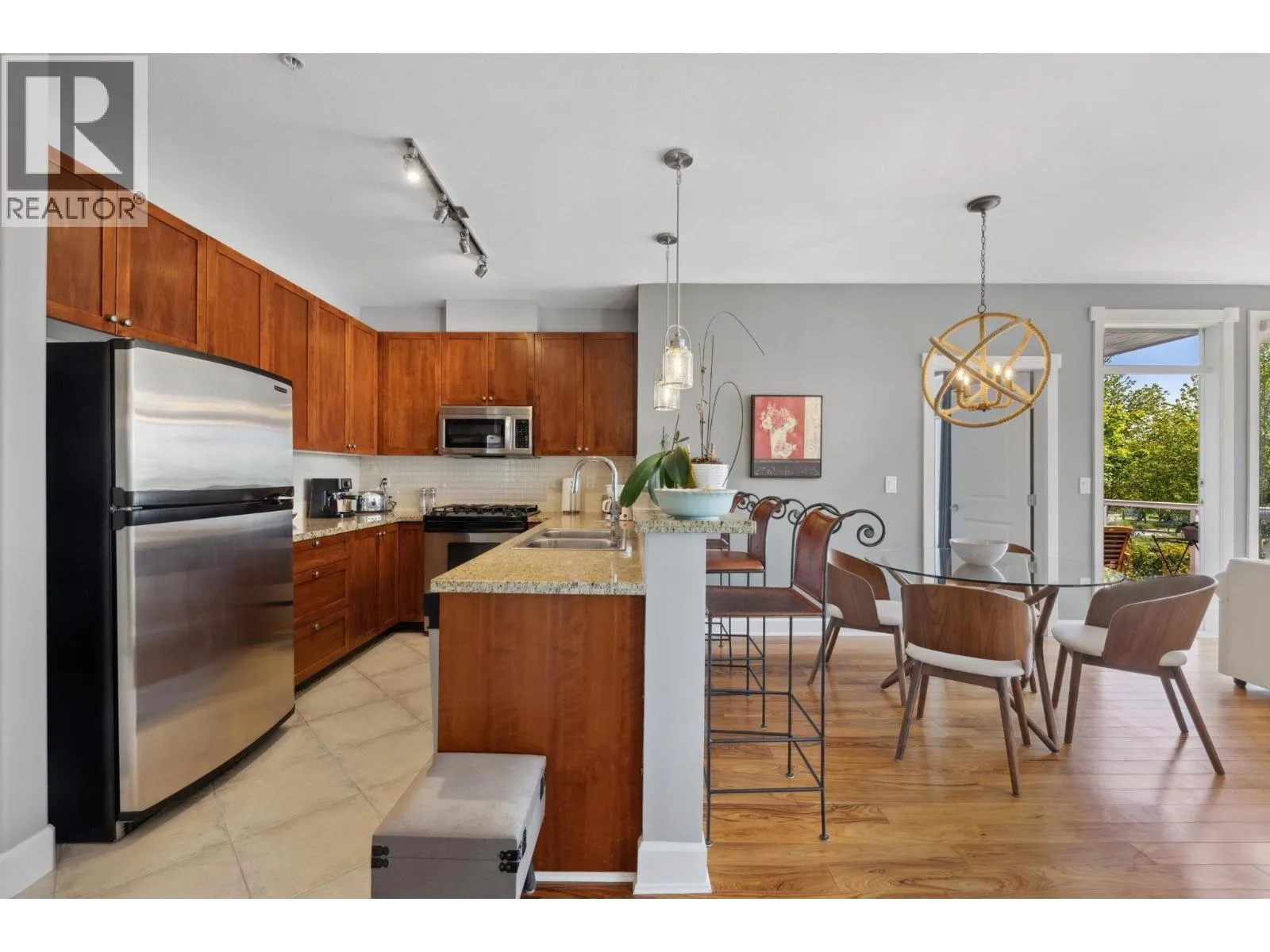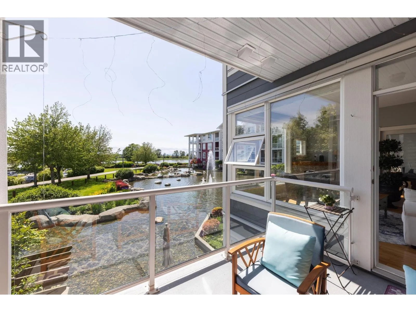 Welcome to Copper Sky, a coastal retreat nestled in beautiful Steveston. Offering modern elegance & comfort. This stunning 2 Bed, 2 Bath + Den condo spans over 1,000 sqft of thoughtfully designed space, featuring high ceilings & large windows that flood the home with natural light. The open-concept gourmet kitchen boasts SS appliances & granite countertops perfect for hosting family & friends. Relax in the spacious living area with a cozy fireplace & direct access to your private balcony, ideal for enjoying serene views of the waterfront. Retreat to the master bedroom with a walk-in closet & an ensuite bath. Enjoy access to amenities such as a fitness center & a rec room. Located in a coveted neighbourhood, you're just steps away from the scenic boardwalk, shops & highly rated restaurants. (id:27476)