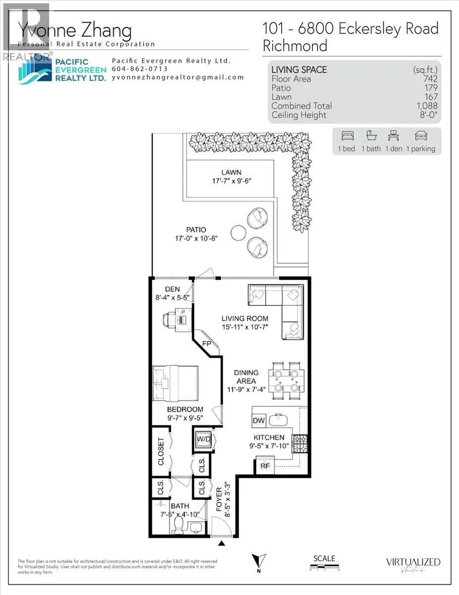 Saffron is centrally located within walking distance to every urban amenity including major shopping centres, restaurants, the Canada Line, excellent schools and community centres. This South facing 1 bedroom suite was proudly developed by Ledingham McAllister. This home features an open concept floor plan, a stunning gourmet kitchen with granite countertops, tile backsplash & stainless steel appliances. The spa-inspired bathroom with full shower & soaker tub promise to relax & restore after a busy day. It is a very bright and well maintained home with a south facing fenced beautiful big back yard for your use only. (id:27476)