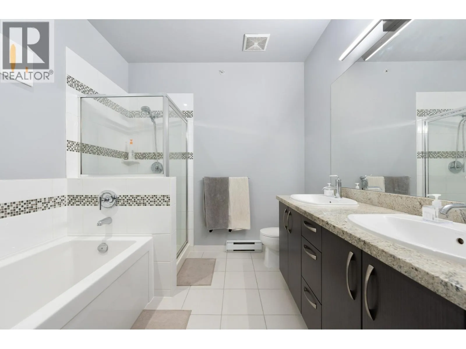 One of the LOWEST price per sqft in the entire neighborhood, Top-floor 2-bedroom, 2-bath condo with TWO parking stalls, soaring 10.5 ft ceilings, and a bright, spacious layout with bedrooms on opposite sides for added privacy. Features include a primary suite with walk-in closet and 5-piece ensuite, modern LED lighting with fan/light combos, roller shades, and blackout blinds. Conveniently located steps to Walmart, banks, restaurants, and just minutes to Richmond´s top shopping and community centers-this rare find won´t last! Open house November 15 Sat 2-4 (id:27476)