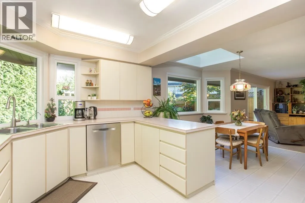 IMMACULATE, pristine, original-owner home with a fantastic 3000+ square ft floorplan featuring 4 bdrms up PLUS a huge flex room, 1 bedroom on the main floor & 3 full bathrooms. Over 6,400 square ft lot with a private, beautifully landscaped SOUTH backyard that rivals Van Dusen Gardens! Many main components of the home have been upgraded: roof (2010), windows (2011), boiler (2023) & h/w tank (2021). Sunny kitchen has picture windows overlooking the backyard, stainless Bosch dishwasher (2017), stove (2023), fridge & a skylight in the eating area bringing in tons of natural light. Lee Elementary & McNair High School Catchment. Backs onto the Shell Trail for walks & biking. Mudroom/laundry w/updated w/d leads to double garage. A special home you would be proud to own. (id:27476)