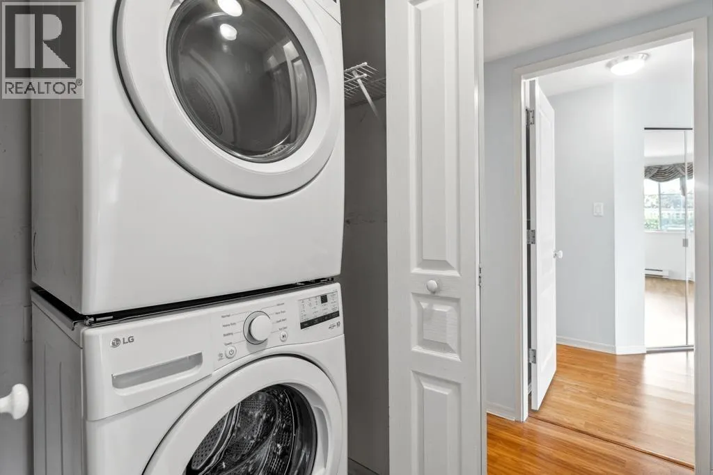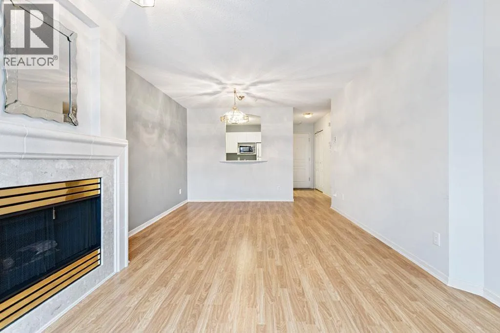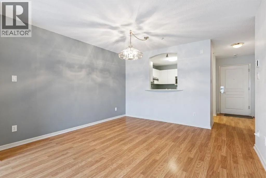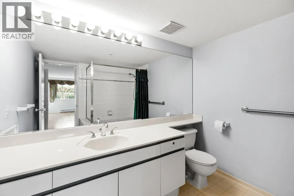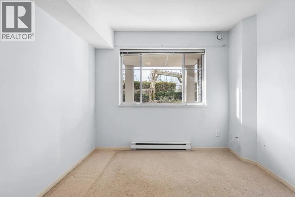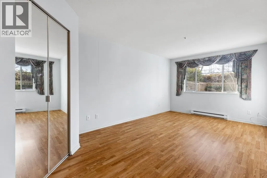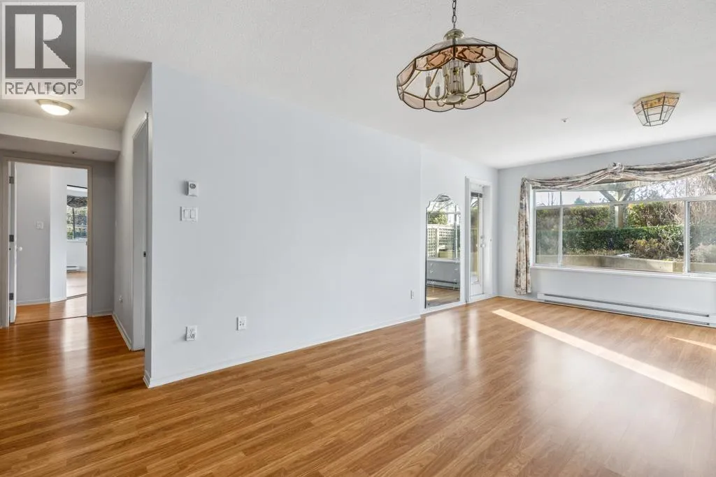 Laguna is a quiet, well-maintained gated community surrounded by mature trees and shrubs. This spacious 977sf garden-level unit offers 2 bedrooms and 2 bathrooms with laminate floors in most areas and a massive 465sf paved patio bordered by planters. The rectangular living room features a gas fireplace, ceiling light, and a large window facing the patio. The dining area has a classy chandelier, while the kitchen offers three rows of white cabinets and a pass-through window. The primary bedroom fits a king-size bed, overlooks the patio, and includes a walk-in closet with mirrored doors plus a 4-piece ensuite. The second bedroom also overlooks the patio, with another 4-piece bathroom. Rent includes one parking stall and a hanging locker. (id:27476)