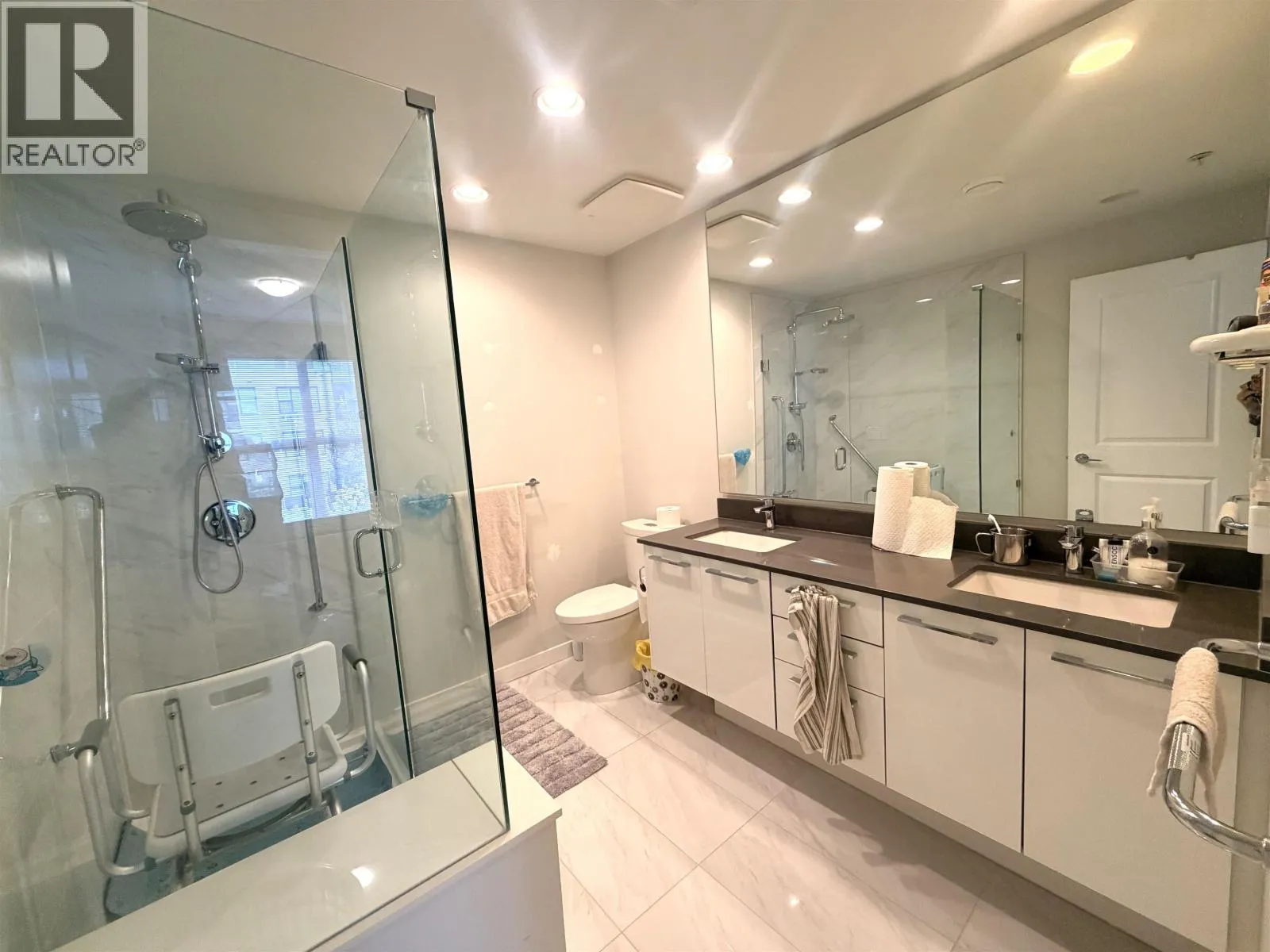 "Trafalgar Square I" built by famous developer, Polygon. 849 sq. ft., 2 bedrooms, 2 bathrooms, 1 balcony. 2 parking(1 EV parking) & 1 locker. This unit has modern gourmet kitchen with high-end appliances. Owner just upgrade two bedrooms carpet to laminated flooring. Building amenities includes yoga room, gym, billiard room, meeting room, children's play area. Easy access to Walmart, restaurants, shops and more. Finished area taken from BC Assessment, in suite area measured by listing agent. Asking price below B.C. Assessment $798,000. All measurements are approximate, buyer to verify if deem important. (id:27476)