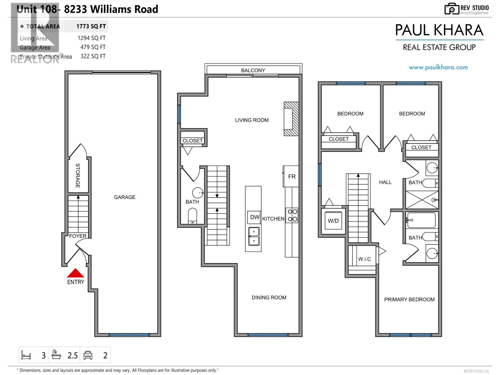 Modern 3-bedroom, 3-bath townhome with high-end finishes, crown moldings, abundant natural light, and open layout. Gourmet kitchen with SS appliances, quartz counters, extra length work island with 2 electrical outlets, and spacious dining area. Living room features built-in entertainment cabinetry, underlit shelving, and modern electric fireplace. Comfort with A/C, HRV, and heat pump. Good size 2 car tandem garage with EV outlet and well set back front landscaped yard with 8' x 8' patio. Prime central location near schools and South Arm Community Centre with tennis, pickleball, pool, and athletic fields. (id:27476)