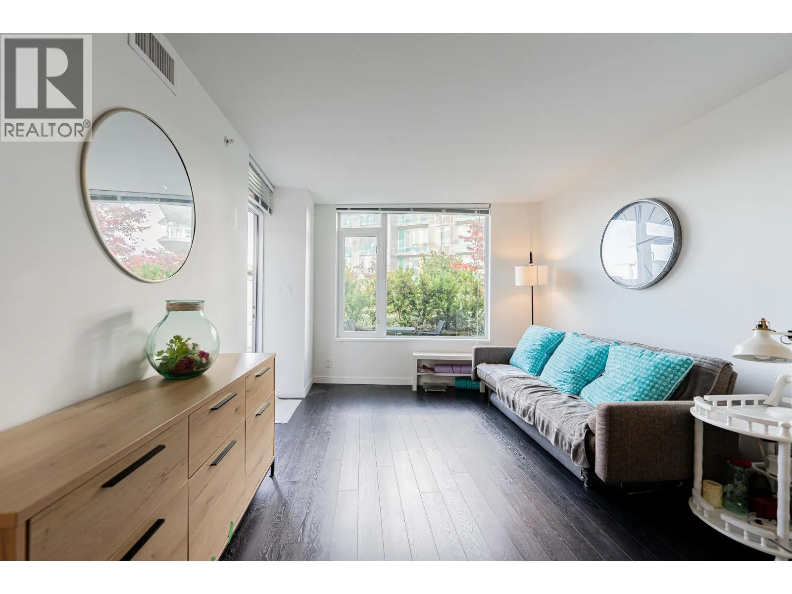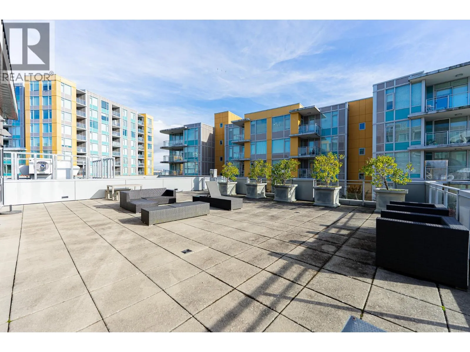 This Air Conditioned, well maintained, South-facing 1 Bedroom & 1 bath concrete home located on the quite inner side of the building. Directly walk-out to the stunning view Rooftop courtyard. It features 567 SF spacious living, open gourmet kitchen, quartz countertops, stainless steel appliances, gas cooktop, laminate floors, in-suite laundry, large walk-in closet and comes with 1 parking and 1 locker. The complex offers excellent amenities including concierge service, an indoor swimming pool, hot tub, gym, recreation centre, dance/yoga studio. Convenient location, steps to Lansdowne Mall/Canada Line Lansdowne Station, Olympic Oval Village, various famous restaurants and other services. An Excellent Choice! (id:27476)