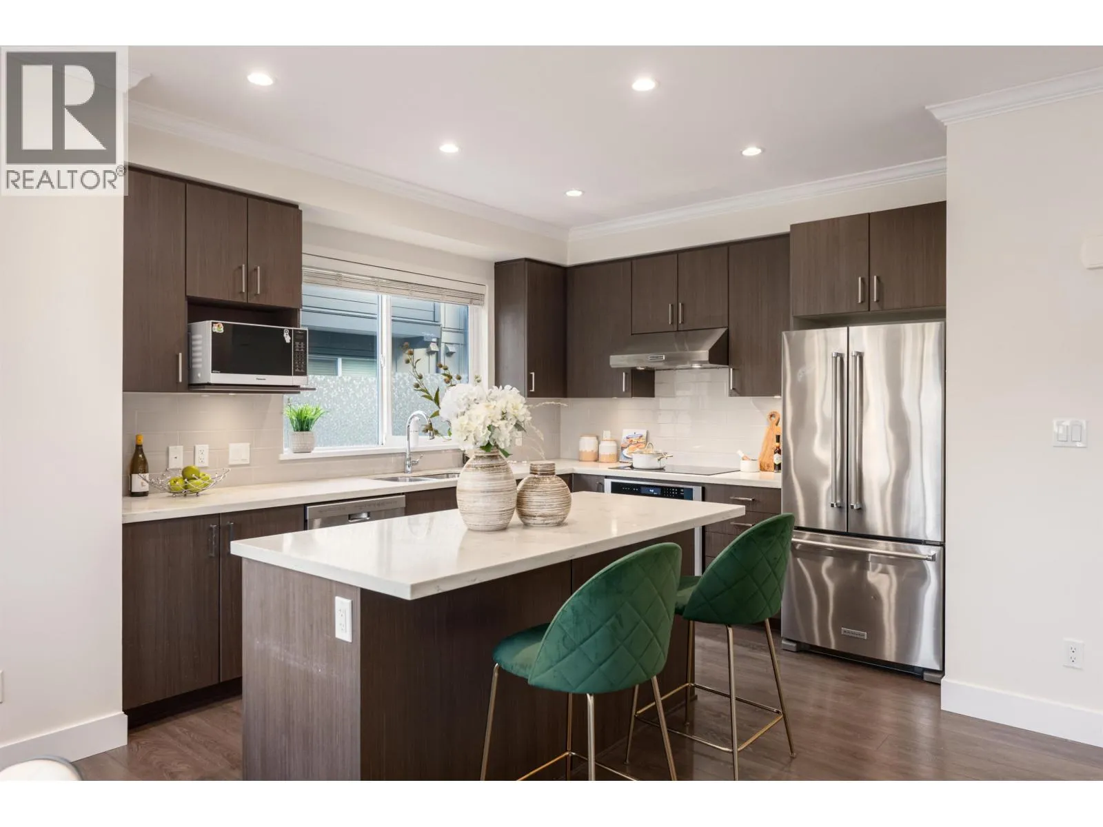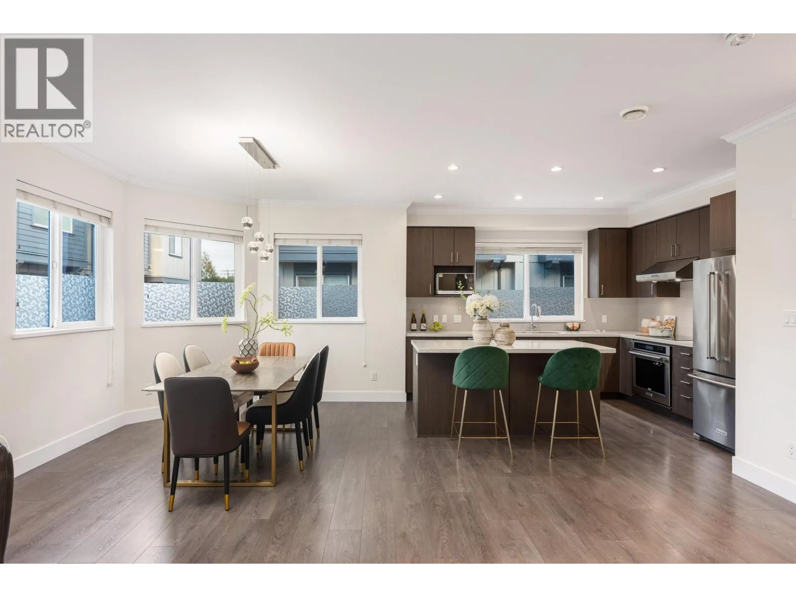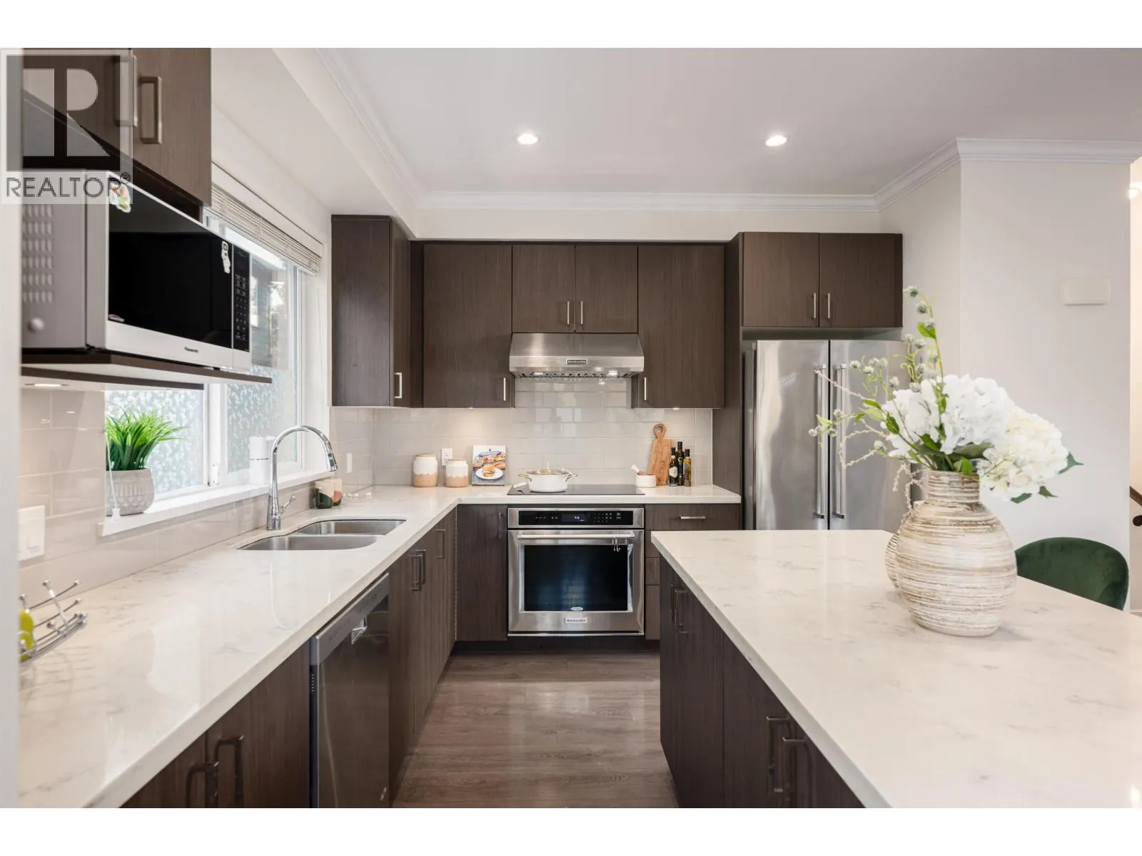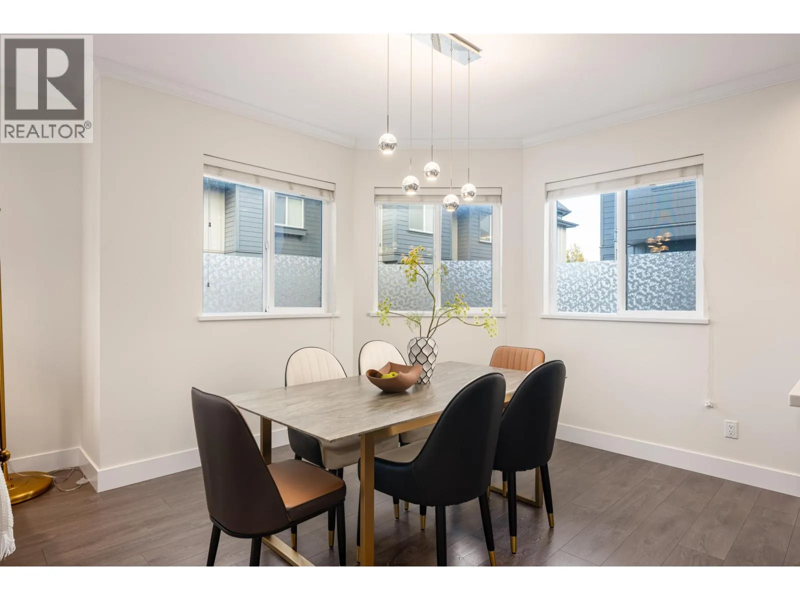 Welcome to Mapleville, a collection of 12 private townhouse in the centre of Richmond. This charming corner unit offers 3 bedroom, 2.5 bathroom plus den, 1,747 sqft interior living space,double garage, and fully equipped air conditioning (individual remote controller) and HRV. The main floor features an open-concept layout connecting the living, dining, and kitchen areas - complete with high quality appliances and modern finishes. The upper floor includes a spacious primary bedroom with its own private balcony, and other 2 additional bedrooms. Recent updated include new paint wall,and laminate flooring on all three levels. Steps from schools, parks, shops and daily essentials. School catchment: General Currie Elementary, Palmer Secondary. Open house: Nov 22/23 from 2-4 pm. (id:27476)