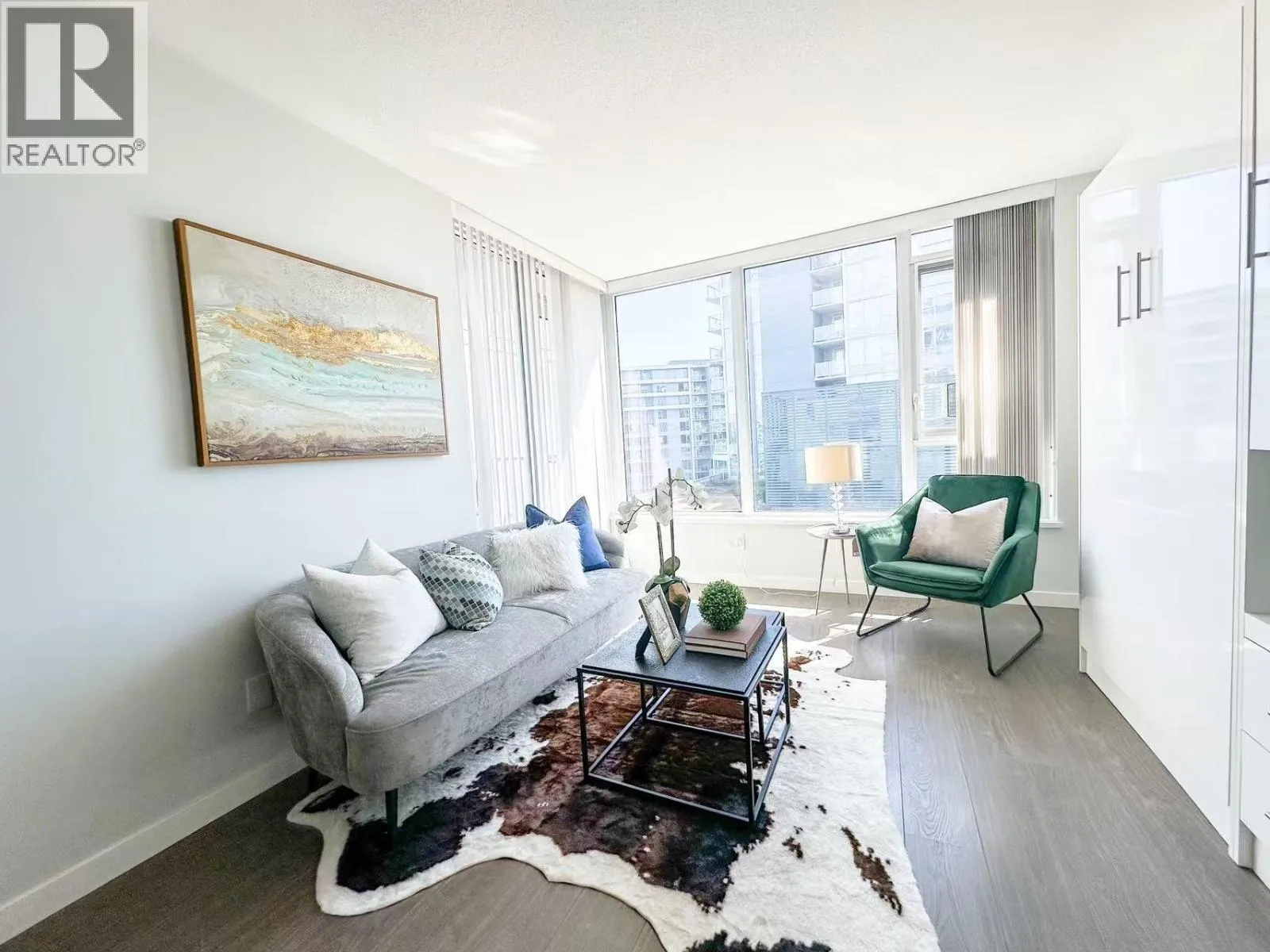 Welcome to Avanti by Polygon! This bright and spacious south-east facing 1-bedroom concrete apartment with ultimate convenience. Located on a quiet street across from a park, just steps away from Aberdeen Centre, Continental Shopping, Yaohan Centre, Union Square, and the new Canada Line station. Enjoy a wide range of resort-style amenities, including a swimming pool, hot tub, dance/yoga studio, lounge, and fitness center. Air cooling & heating system for year around comfort. Bosch brand gas cooktop, self-cleaning wall oven, energy efficient dishwasher, Panasonic microwave and integrated refrigerator completes this ultra-modern kitchen.Bonus: built-in muffin two beds!,1 Parking + 1 Locker included Public EV Charger .Open House 1-4pm Sun , Nov 2 (id:27476)