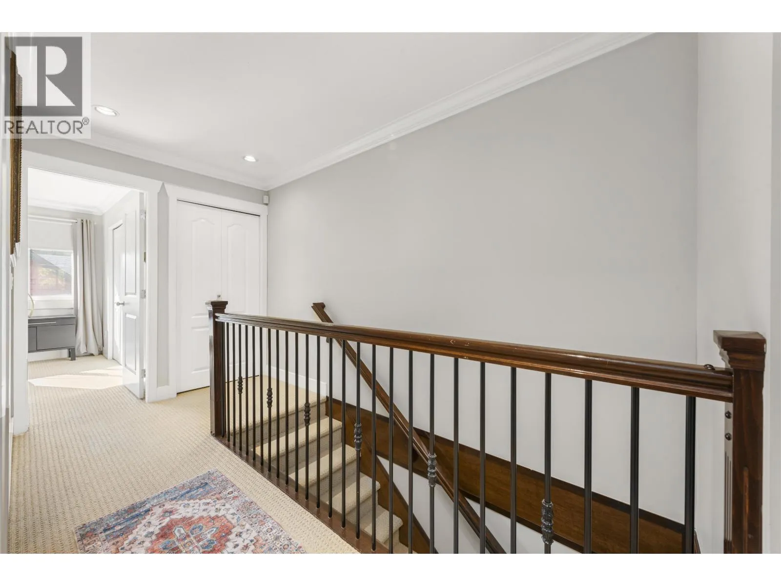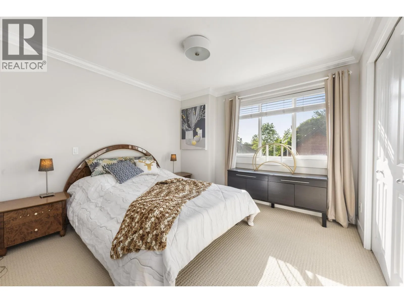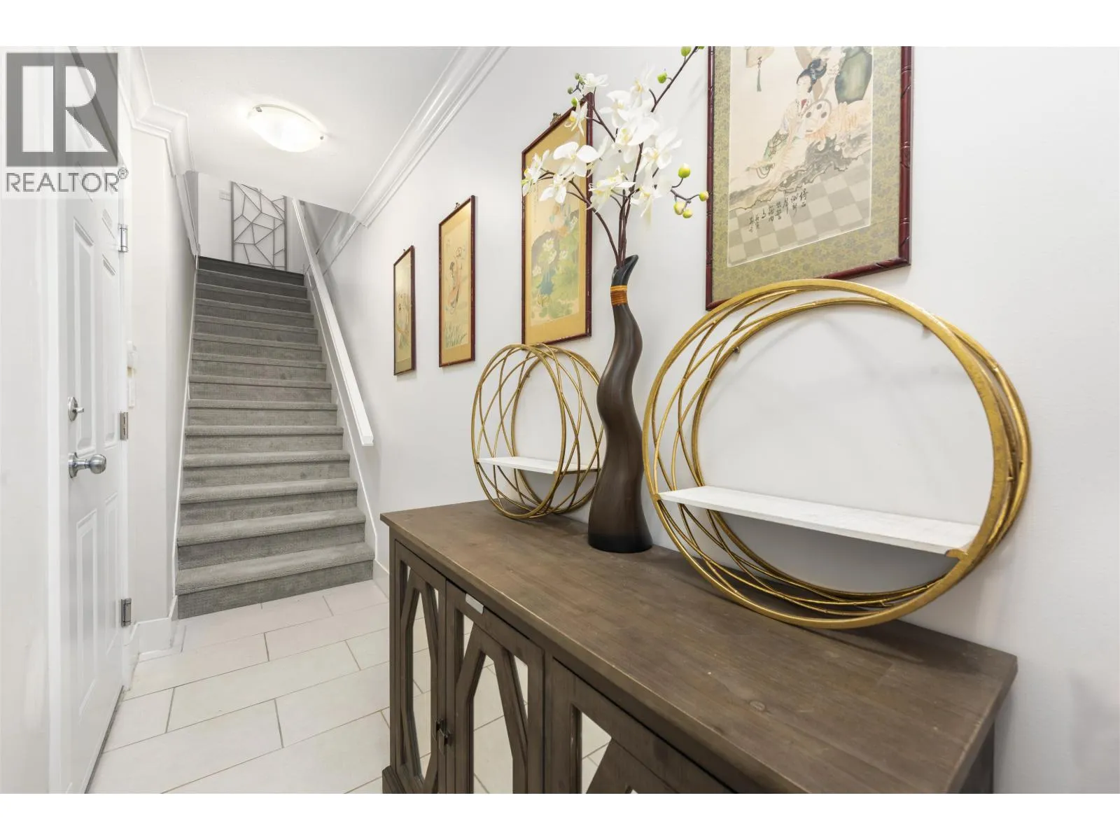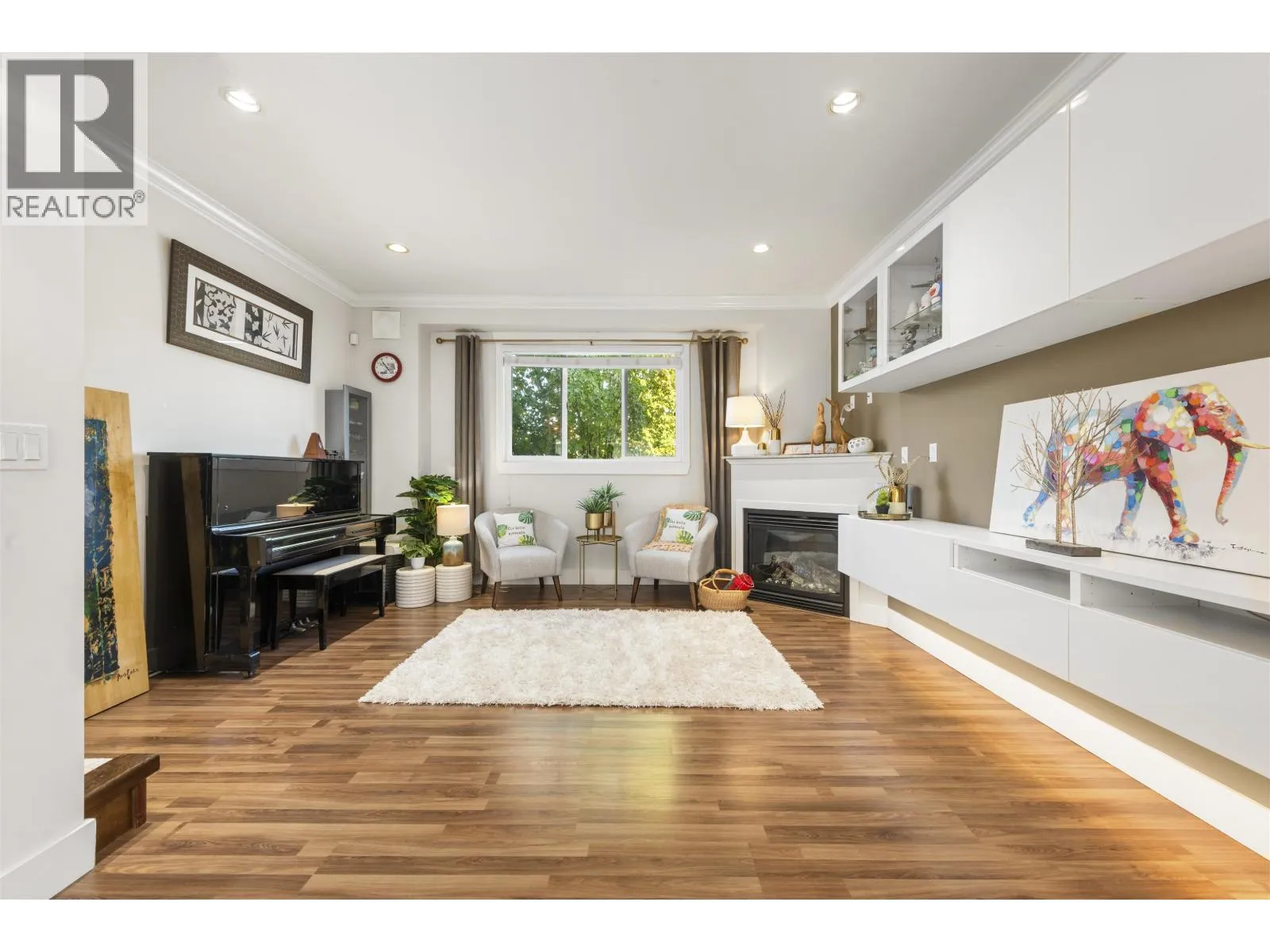 Welcome to Jasmine Court, a well-kept three-level townhouse offering a practical layout with 3 bedrooms, 2.5 baths, an extra workshop and a tandem garage with extensive custom and tasteful cabinetry. Features include 9' ceilings on the main level, radiant hot water heating, gas fireplace, an updated kitchen with granite countertops and stainless steel appliances, crown moulding, a built-in vacuum, and security system. The home is in excellent condition and designed with plenty of smart storage throughout. Conveniently located near McNeill Secondary, Anderson Elementary, Garden City Park, shopping, and transit, this residence enjoys a central yet quiet setting with easy access to everyday amenities. (2 Pets allowed). (id:27476)