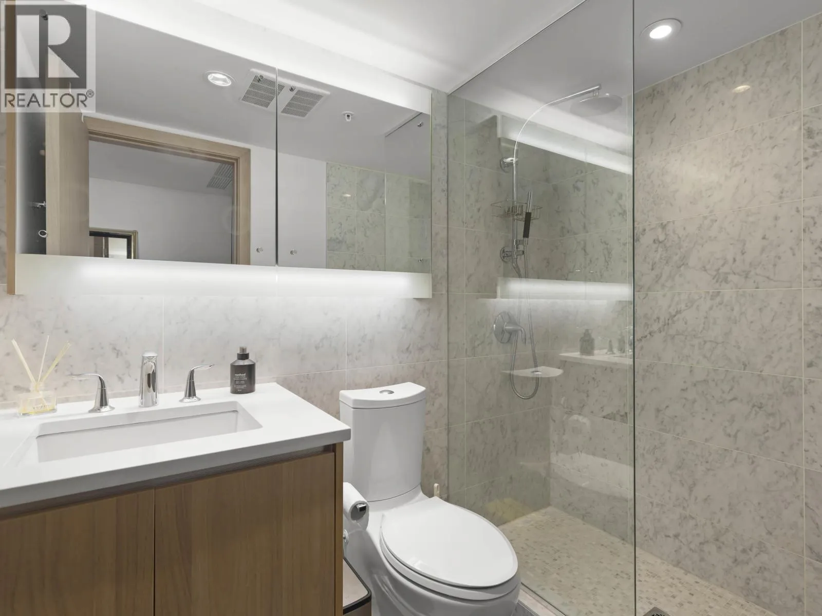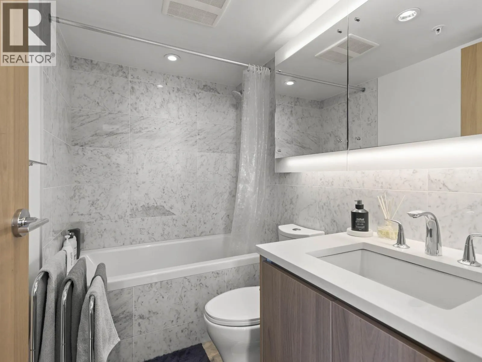 Built by Concord Pacific, this CORNER Southwest home offers an abundance of natural light with almost 180 degree city views! This 838 SF 2 bedroom + Den and 2 bathroom home features air conditioning, an open floor plan, engineered laminate flooring throughout main living areas, marble tile floors in baths/kitchen, gas cooktop, large format porcelain tile backsplash, engineered quartz counter top, built in S/S appliance package, and large balcony perfect for year around BBQ'ing. The BUILDING & AMENITIES: Built by reputable Concord Pacific, the world class amenities include access to the Diamond Club which includes an indoor pool, Whirlpool, sauna, bowling, full gym, Yoga room, golf simulator, library, basketball, badminton, private theatre, grand ballroom, and dining room. (id:27476)