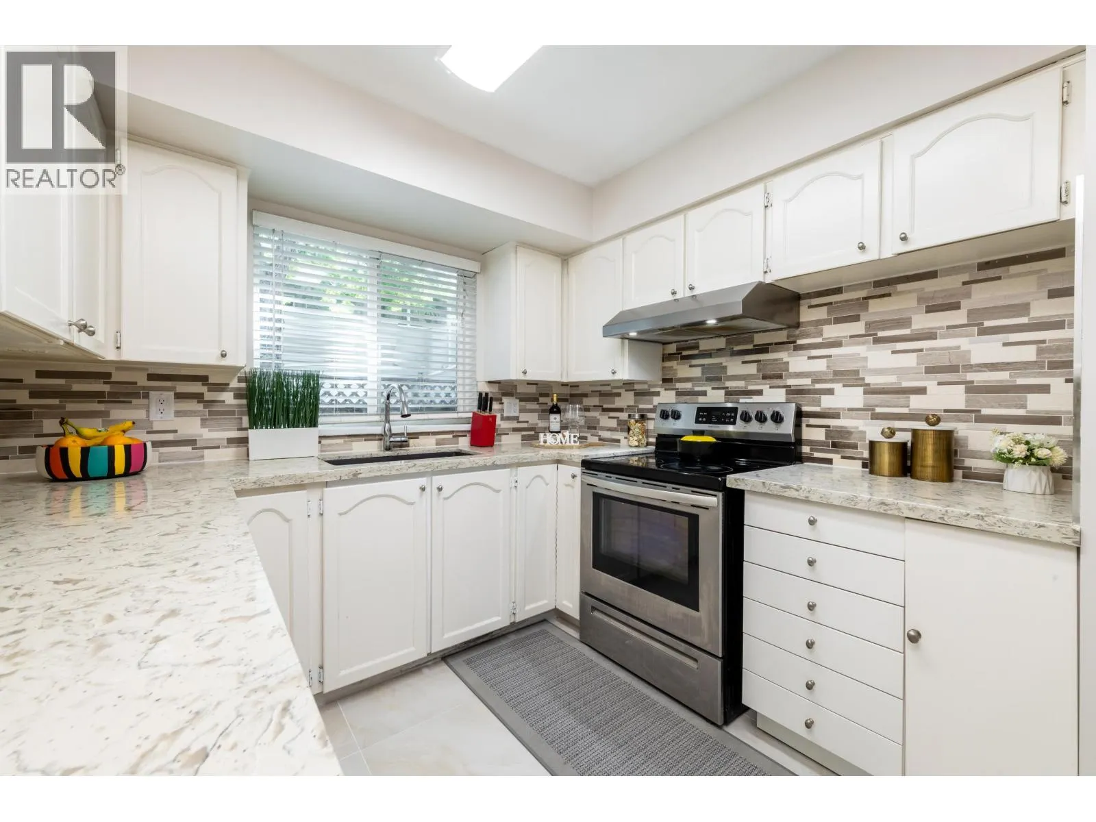 Welcome to this rarely available two level large townhouse in the heart of Richmond. Sitting in the southeast corner of this well maintained complex, this unit has been extensively updated over the years including quartz countertop, all washroom cabinetry and vanities, all lighting fixtures; fresh paint, brand new tile flooring throughout the kitchen and the washrooms, brand new treated garage floor; new dishwasher, stove , washer & dryer etc. Best floor plan: kitchen, dining, living and flex/office room on the main, massive master bedroom with walk-in closet and two large bedrooms on the second floor. Tons of natural lights throughout the day thanks to the southeast-facing. Central location, minutes to Ferris Elementary and Richmond High, community centre, skytrain, and shopping mall. (id:27476)