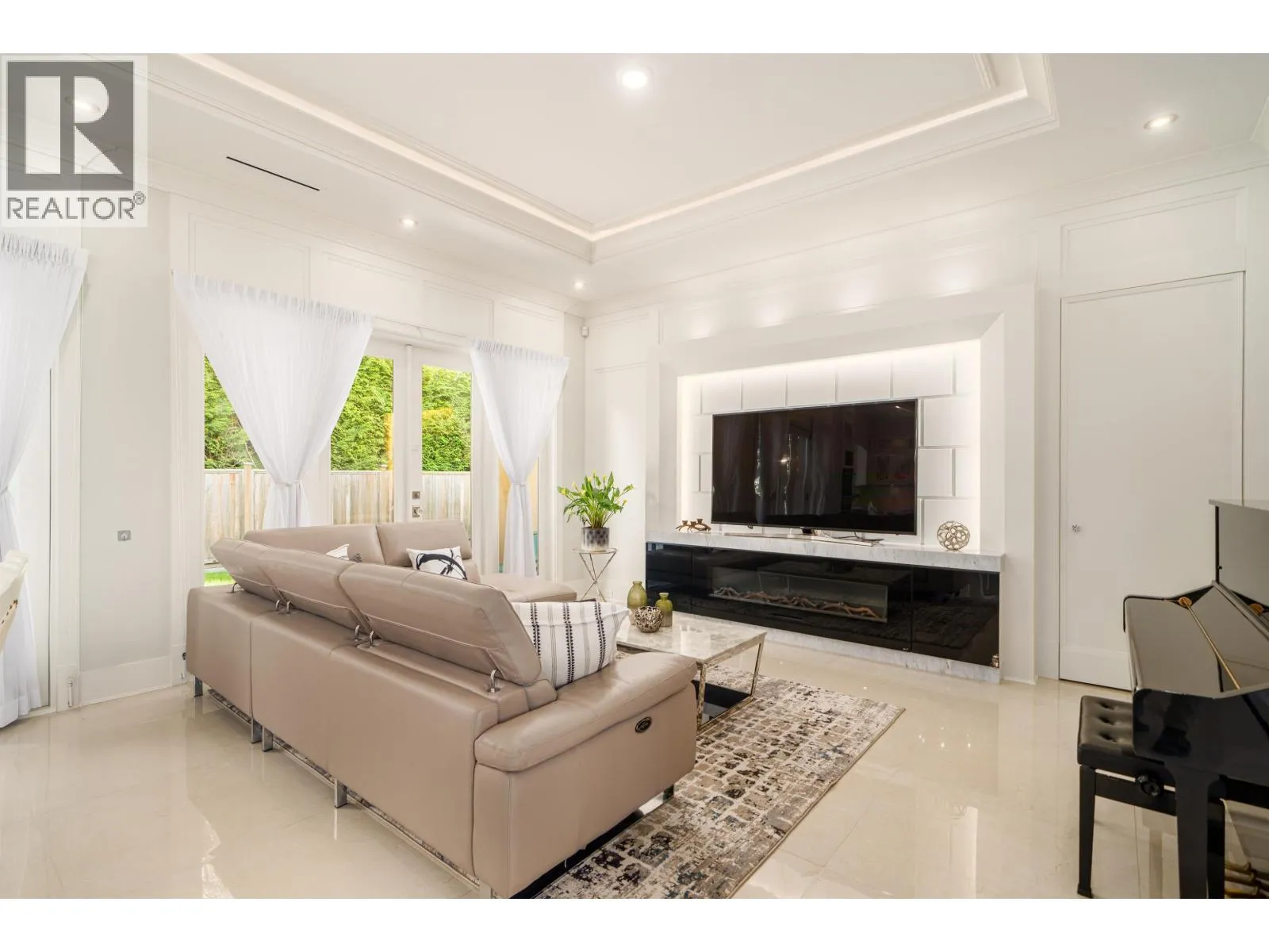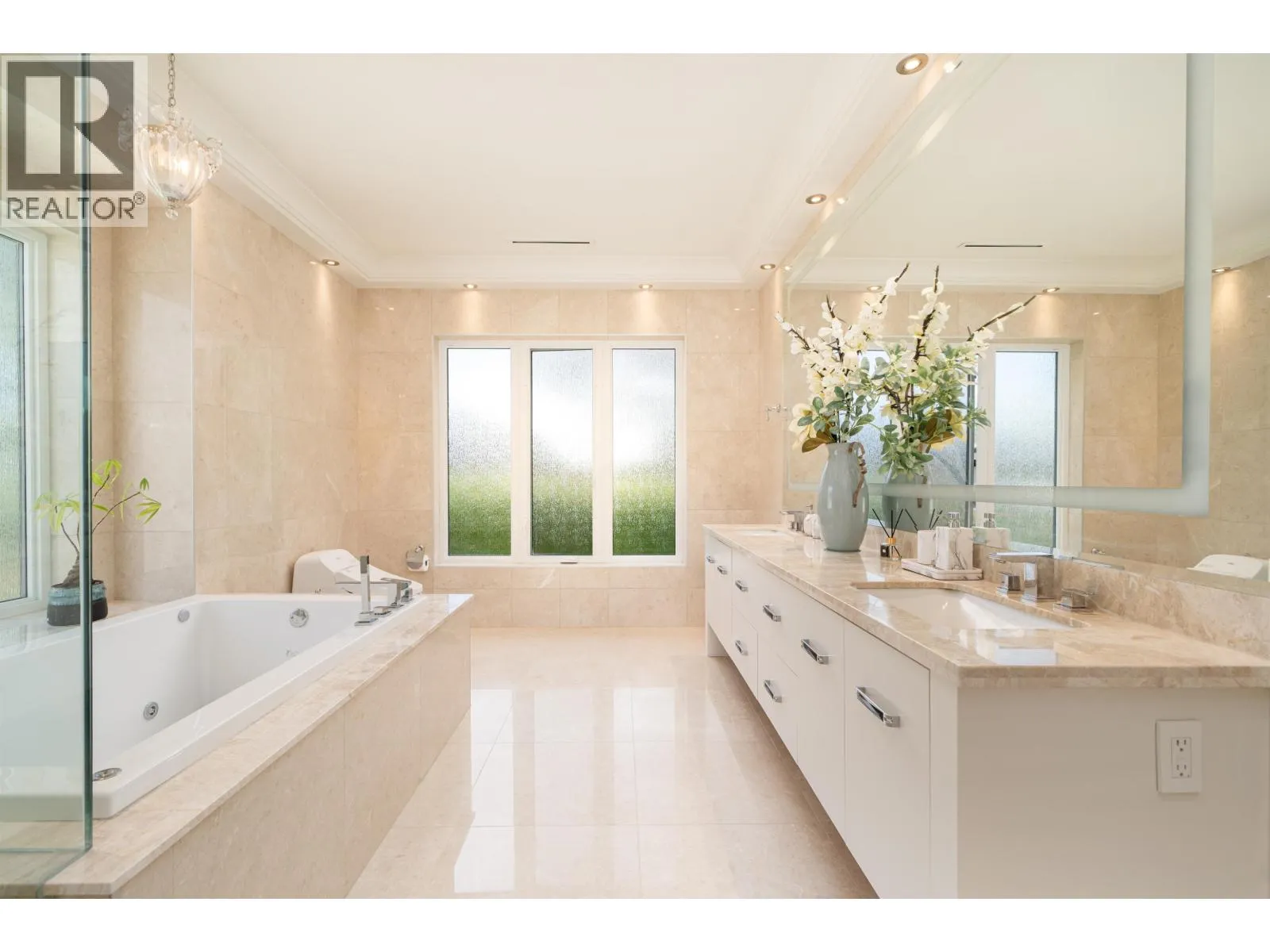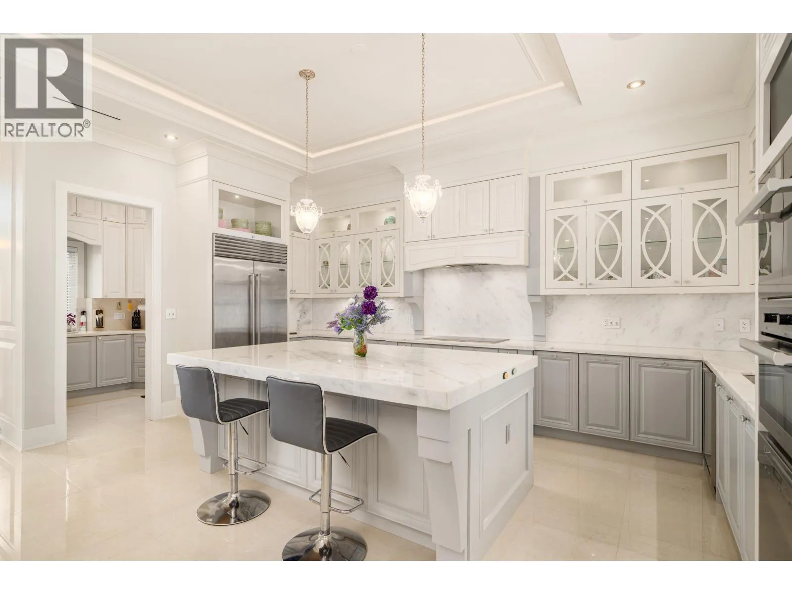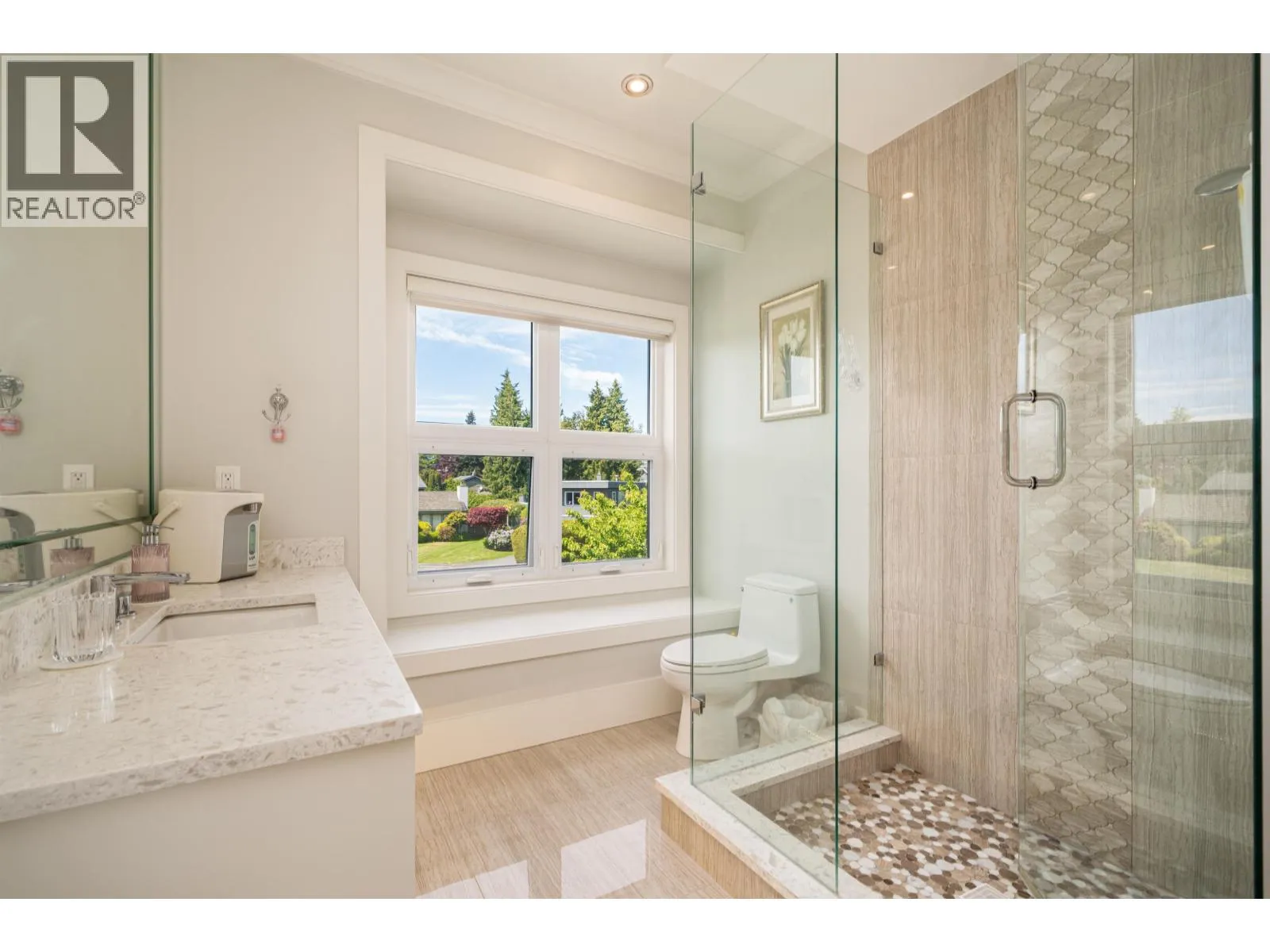 Better than new! Stunning custom home in prestigious Broadmoor. Open-concept design with soaring ceilings in elegant living/dining areas, feature walls, and Schonbek lighting. Gourmet kitchen with premium cabinets, marble counters, and top-tier Sub-Zero & Wolf appliances. Upscale plumbing fixtures, including smart Toto toilet. Main floor media room with ensuite doubles as guest room. Upstairs offers two spacious master suites plus two cozy bedrooms. Huge private deck-perfect for gatherings. Durable diamond-shaped asphalt shingle roof. Smart home system adds comfort and security. Meticulously built for discerning buyers. Walk to top schools, parks, transit, shops, and more. School catchments: Maple Lane Elementary & Steveston-London Secondary. (id:27476)