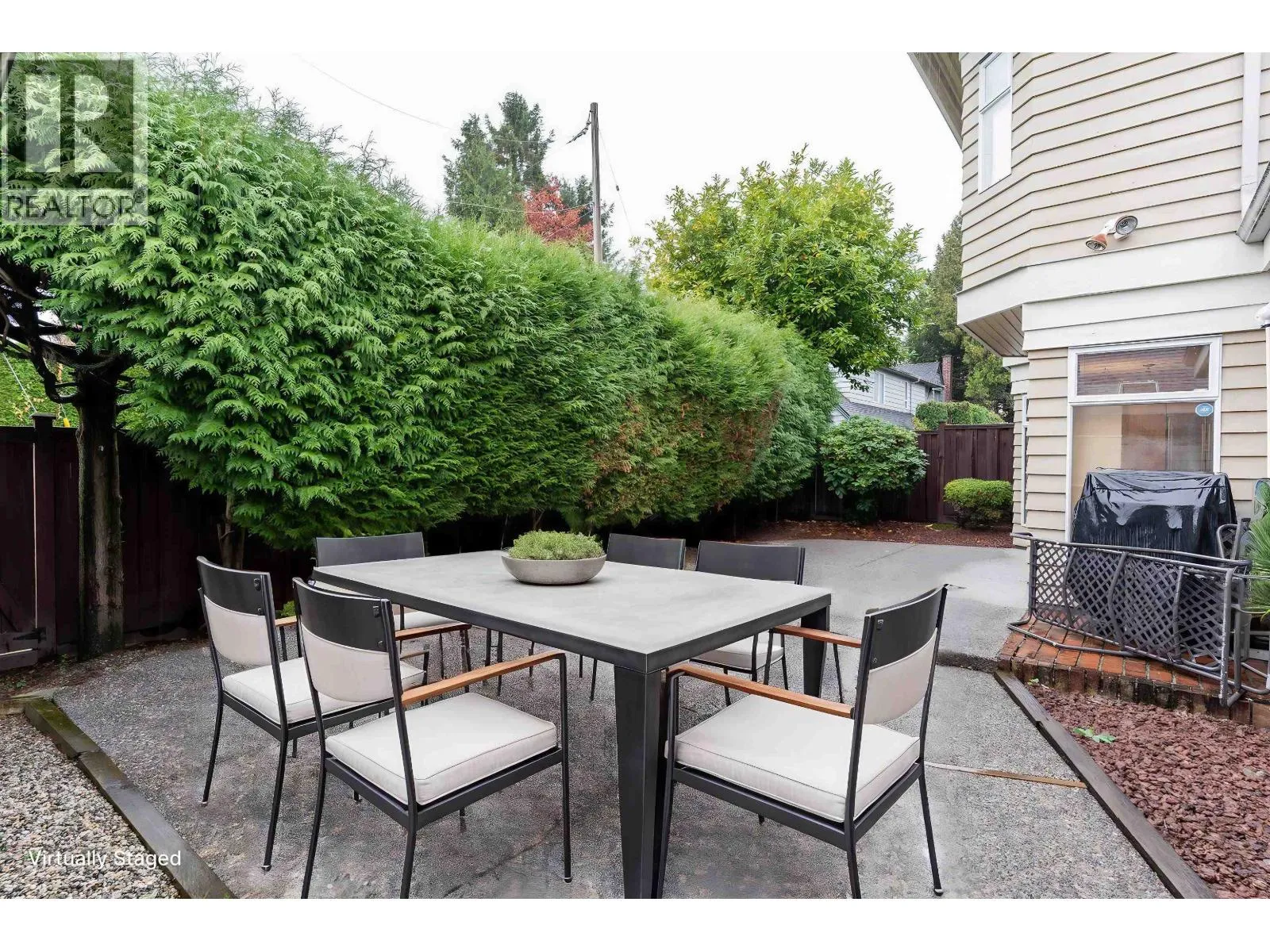 A rare find - DUPLEX style two level townhome in the Broadmoor area-Sunnymede Estate a well managed 12 unit complex! Situated inside the complex with a western exposure - the inside features open concept living/dining areas, double sided fireplace, California shutters, updated kitchen (s/steel appliances+warming drawer), adjacent family room and eating area has picture windows overlooking private landscaped yard, access via sliding door. Upper floor primary bedroom with updated ensuite, luxurious seamless glass shower w/6 shower heads, plus extra storage space. A/C split system, Navien on demand hot water. Double car garage is oversize 451 sq.ft.- room for a workshop area or bikes. Steps to shopping, schools and transit! Self managed with low main fees! Main fees: $348/mth (id:27476)